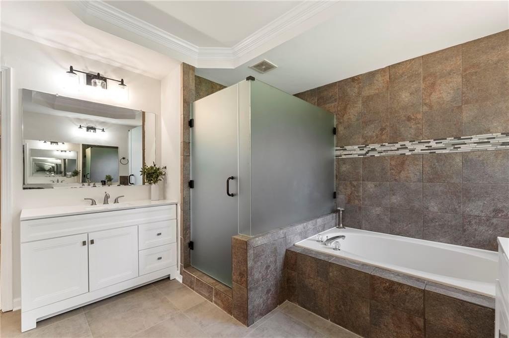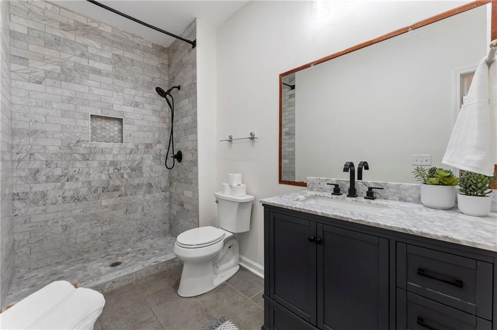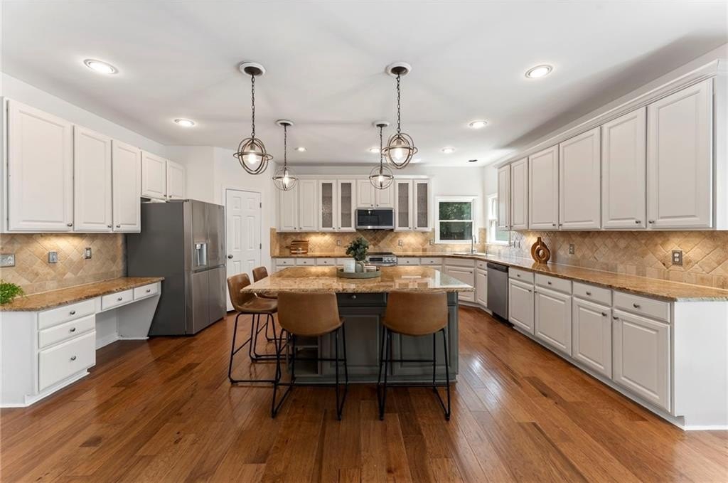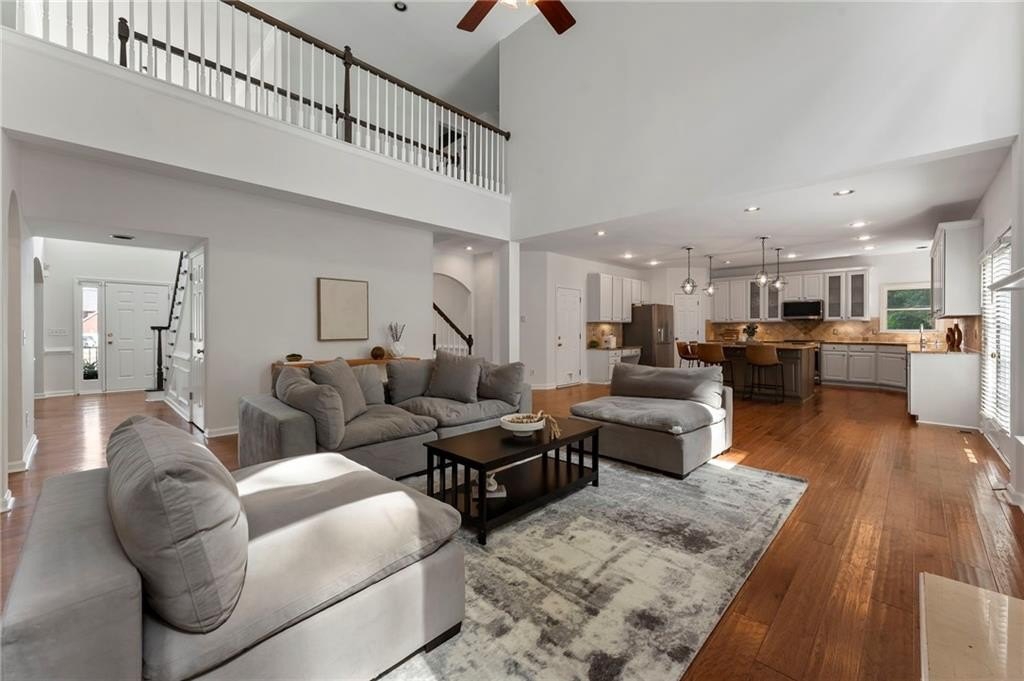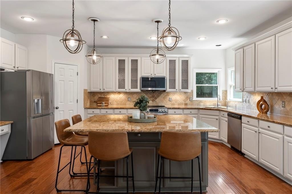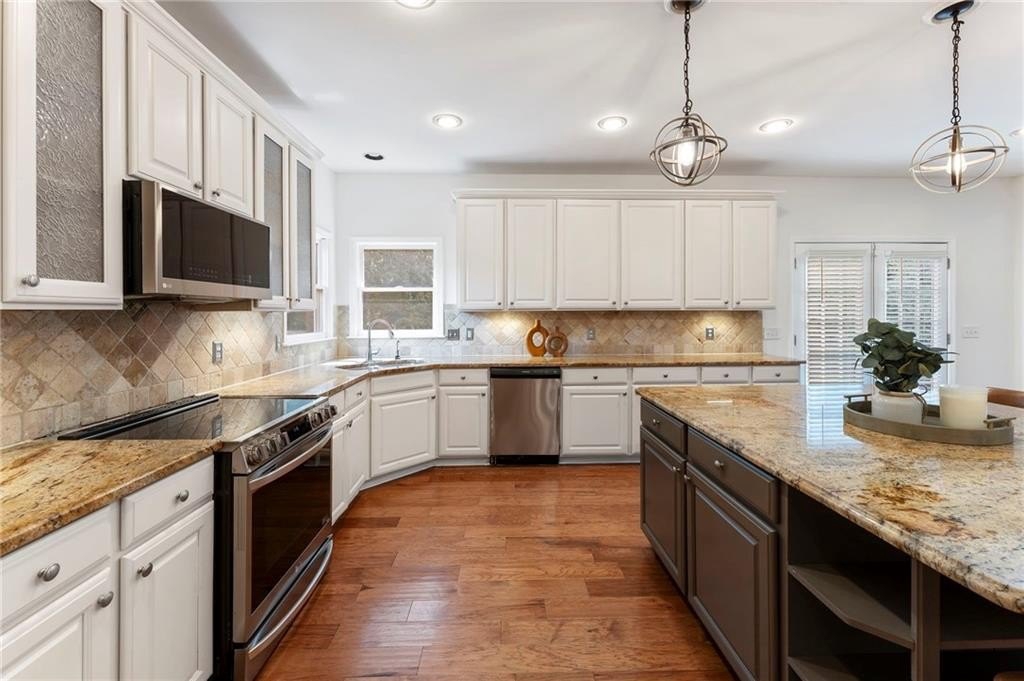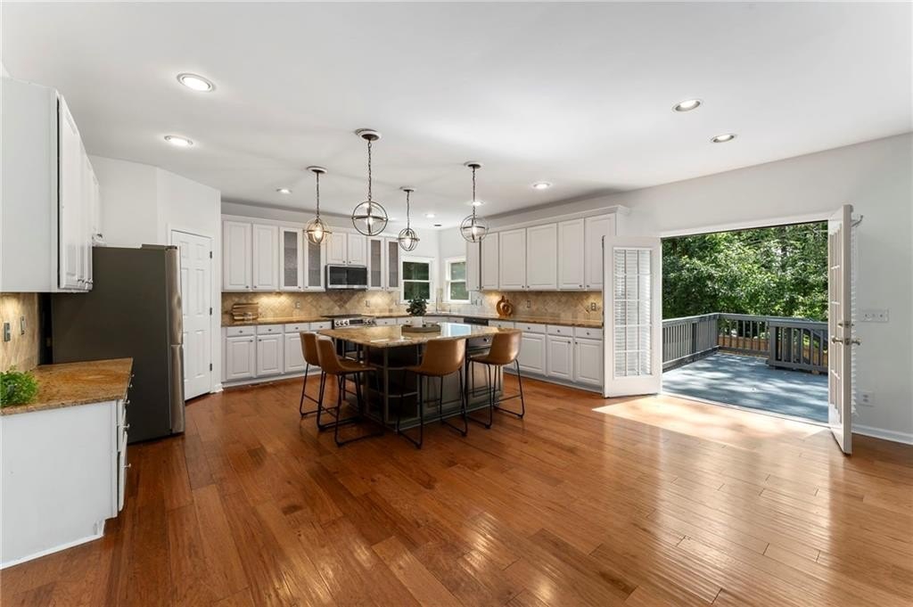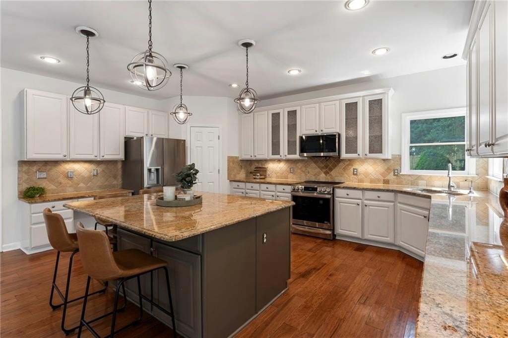 FANTASTIC home for a large family or multigenerational living!! Loads of space and open flowing floor plan. A grand two-story foyer welcomes you upon entry. The spacious kitchen offers granite counter tops, stainless steel appliances, more than enough cabinet space and a huge island to gather around. The sun drenched two-story family room features a wall of windows that overlook the private wooded backyard. The main level bedroom could be a 2nd master bedroom with a fully renovated bath and walk-in closet. Rounding out the main level are a formal sitting room/office, a formal dining room with bay window and a double staircase allowing for easy access to the upper level. Upstairs you will find large secondary bedrooms, 2 additional baths and an enormous master bedroom with plenty of space for a sitting room or office area. The newly updated master bath features double vanities, tub, separate shower and his and her closets. The fully finished terrace level allows for endless opportunities - game room, additional bedroom, theatre room, gym, etc. Beautiful private, fenced backyard could potentially accommodate a pool. Fantastic location in a cul-de-sac, close to KSU, I-575, shopping and dining. NEW ROOF 2021, NEW HOT WATER HEATER 2023, NEW HVAC 2023, NEW GARAGE DOORS 2025, FRESHLY PAINTED INSIDE. Amazing opportunity at an affordable price!!!!