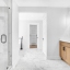 The primary suite is a true retreat with a spa-style bathroom, heated floors, a steam shower with bench, a soaking tub, and a custom closet system behind. The secondary bedrooms include ample storage, barn yard doors, and LED lighting.