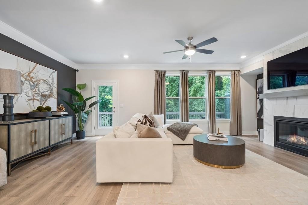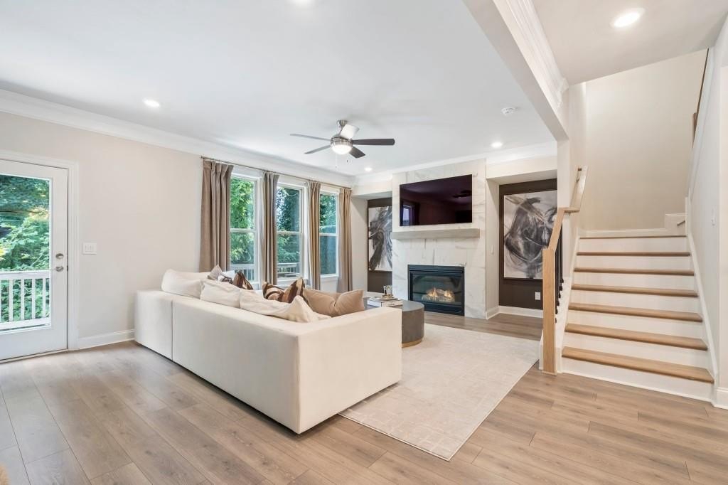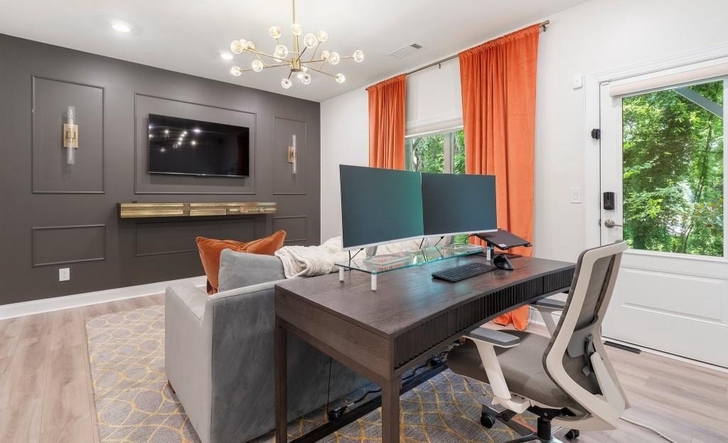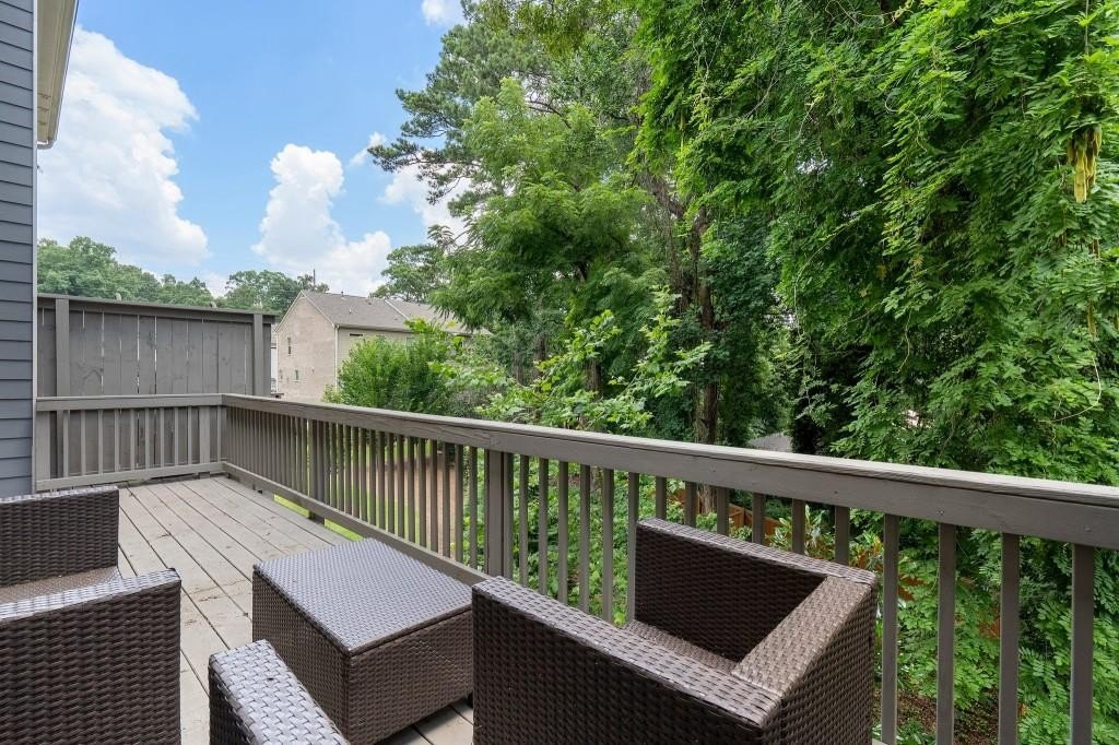 Absolute perfection tucked away on quiet, tree-lined, street in secure, and gated community of Clairebrooke in highly desirable Chamblee! This stunning, furnished optional, townhome is one of the few larger floorplans in the community with tons of designer upgrades. When you walk in, this one feels different than your average townhome with tons of natural light, a bright and fresh feel and the tasteful design touches throughout knock your socks off immediately. Huge kitchen with stainless applainces, quartz countertops, and custom cabinetry, hardware, and lighting opens to stunning breakfast area open to a sophisticated yet comfortable family room. Fireside living opens to a private balcony overlooking the trees and greenspace perfect for a pet or just having coffee with nature surrounding you. Spacious primary suite upstairs with double vanity and huge shower with seating and walk in closet. Laundry room in hallway, and two secondary bedrooms with full bath upstairs. Media room or fourth bedroom on terrace level with millwork and designer lighting with full bath and open to green space. Two car garage outfitted with tesla charger perfect for meeting all of your needs. The location is prime with its close proximity to charming downtown Chamblee, Blackburn Park, and the new Dresden Park, shopping, restaurants, and more! This pristine community has a dog run and fire pit gathering area made for making great memories with neighbors, family, and friends! NO rental restrictions.