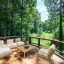 The well-appointed kitchen boasts solid stone countertops, glass-front cabinetry, and updated appliances, seamlessly flowing into the dining area and a sunroom wrapped in floor-to-ceiling windows. Step out onto the expansive deck to enjoy treetop views and tranquil outdoor living—perfect for entertaining or relaxing in nature’s beauty.