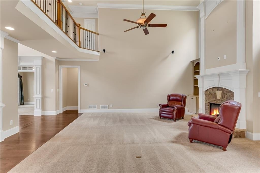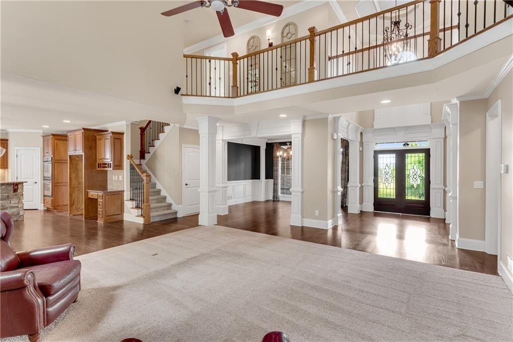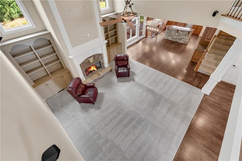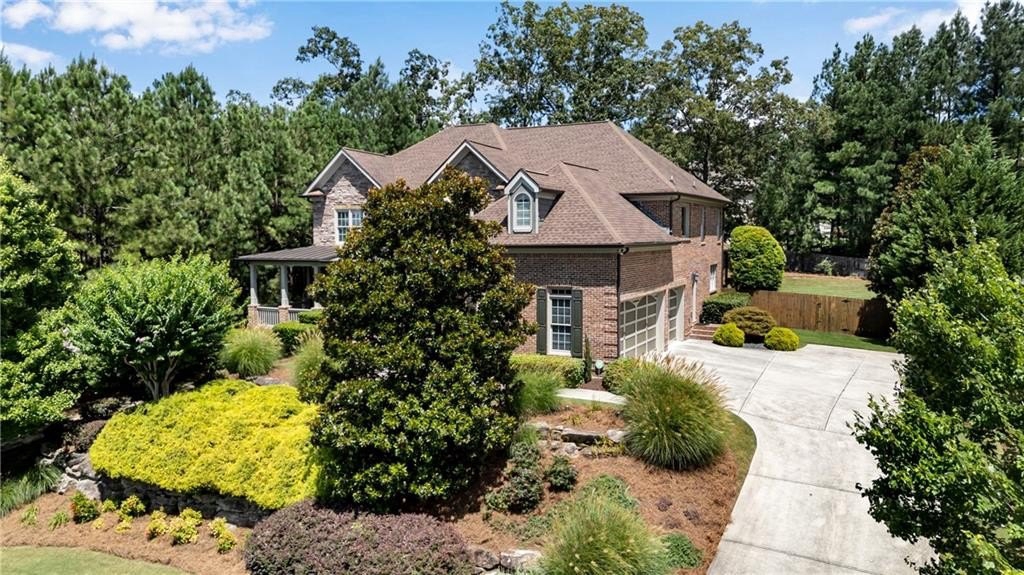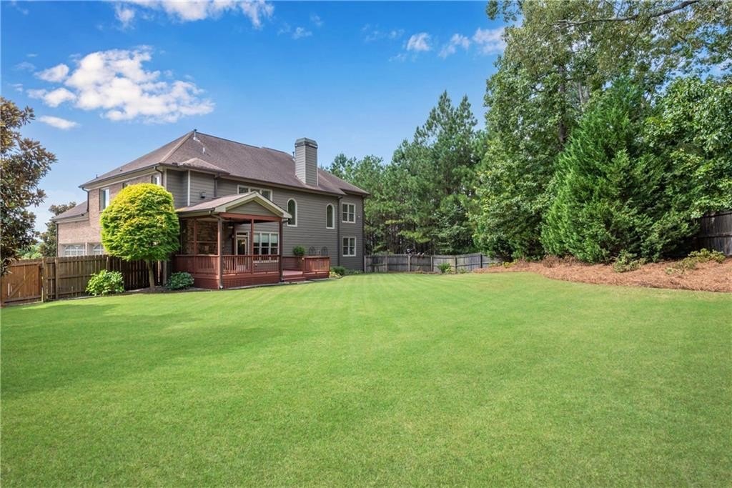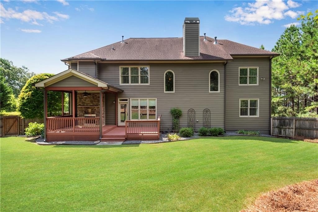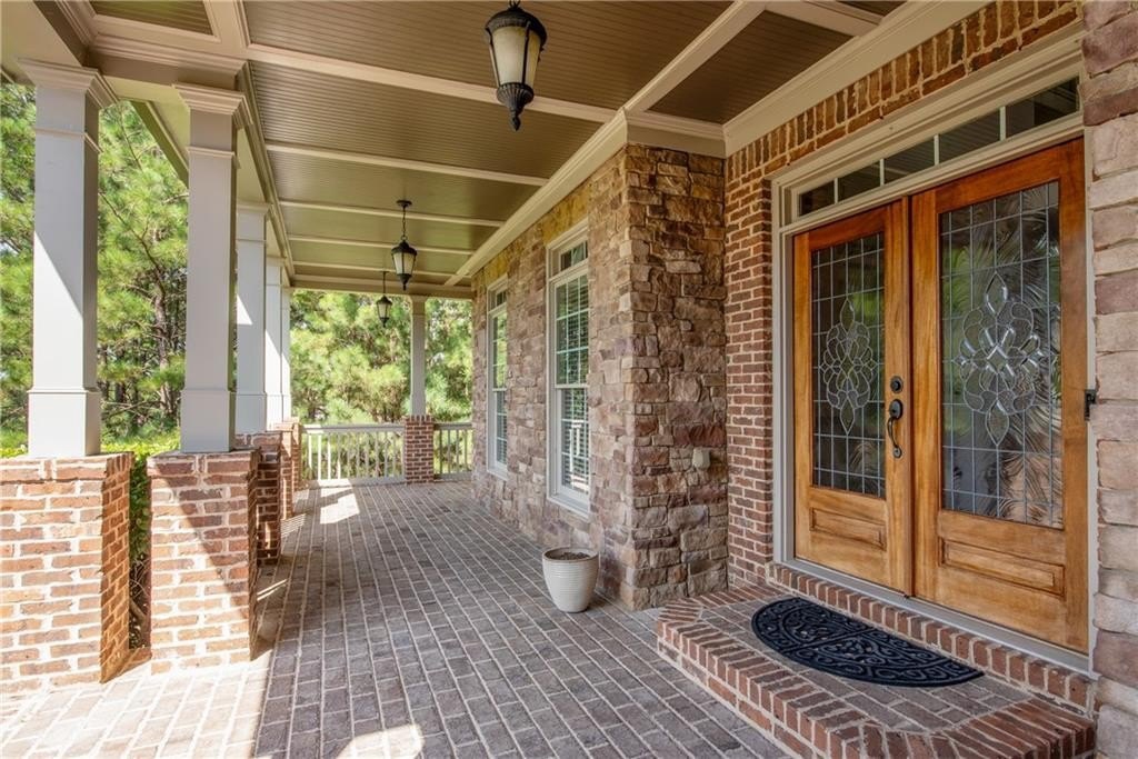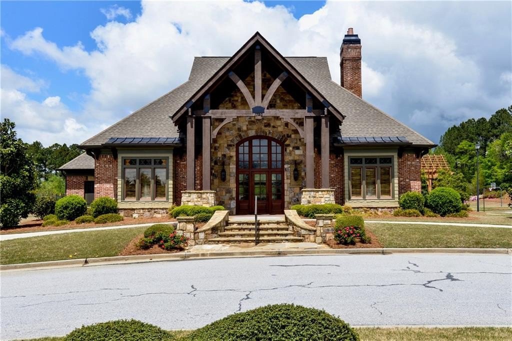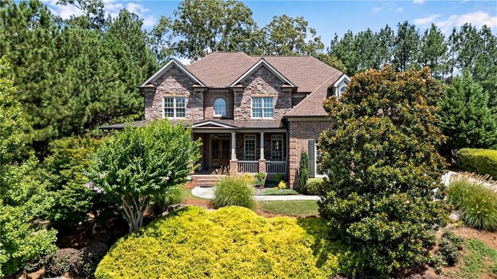 3-Sided Brick & Stone Executive home w/HUGE level fenced backyard! Built by one of the original Riversprings CUSTOM home builders from Vintage Communities Builder Group. True wrap around rocking chair front porch w/double doors to the dramatic two-story foyer featuring inlay design site-finished hardwood floors extending to the formal dining, kitchen and main level hallways. French doors to the main level study with intricate beadboard coffered ceiling. Formal dining w/extensive trim package and bump out for buffet or China cabinet. The soaring two-story great room features a stacked stone fireplace and built-in bookcases. Spacious island w/quality cabinets featuring a cabinet vent hood, walk-in pantry, gas cooking, below counter microwave and double ovens. Brick herringbone tile laundry/mud room w/cabinets, laundry sink and door to driveway. Hard to find main level guest bedroom plan that features a private full bath for bedroom + separate half bath for main living areas. You will feel like you are at the Four Seasons in this premium oversized primary suite featuring a tray ceiling, sitting room w/gas fireplace, spa bath w/jetted tub and separate double tile shower plus a massive custome closet! One upstairs bedroom w/private bath and other two share a jack & jill bath. Finished terrace level features a rec room, additional exercise room or office and a full tile bath. Several additional unfinished rooms for additional expansion. Relax outside on the covered porch w/stacked stone gas fireplace stepping down to the additional deck with plenty of room for dining area and grilling. Walk to the impressive amenity package including clubhouse, 4 tennis courts, soccer field, basketball, pool w/slide and playground! Great location w/easy access to HWY 316 and shopping at corner of 316 and HWY 316 featuring Target, Publix, HomeGoods, Belk, Michaels, Chick-Fil-A, Starbucks, LongHorn Steakhouse, AMC Theater and more!