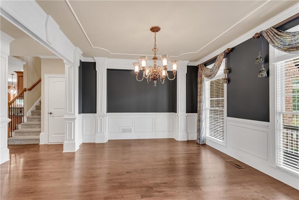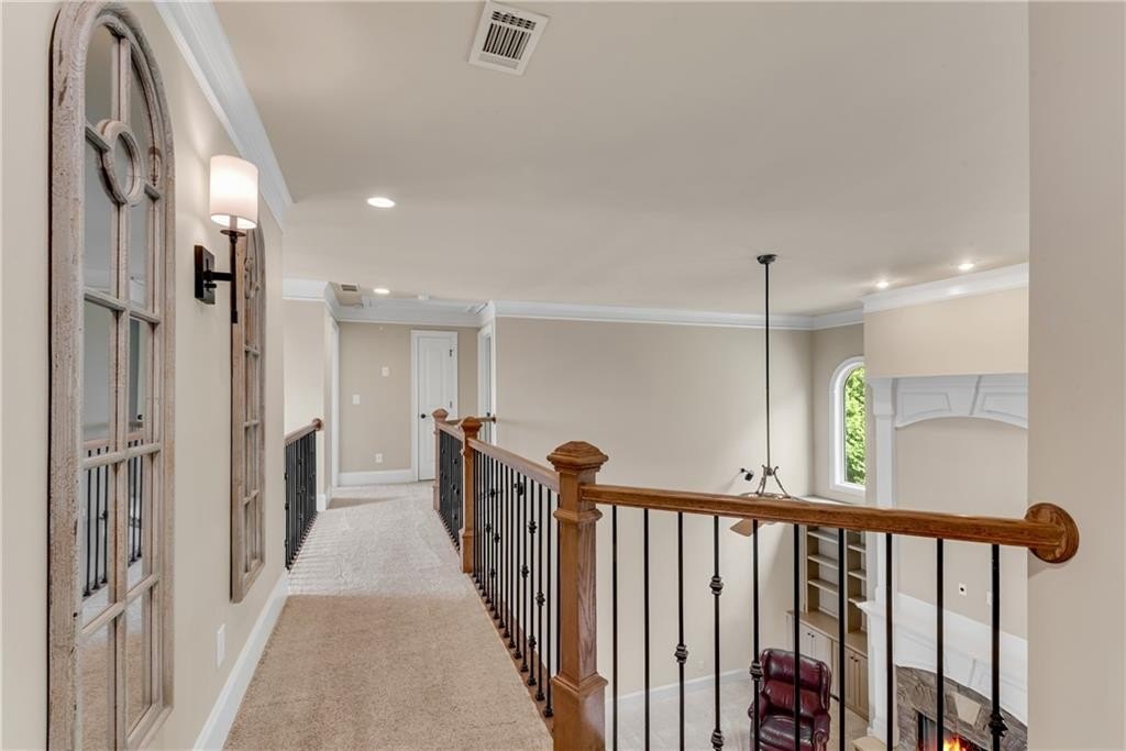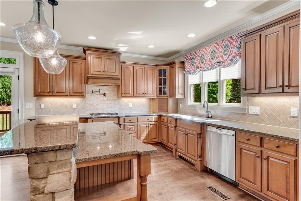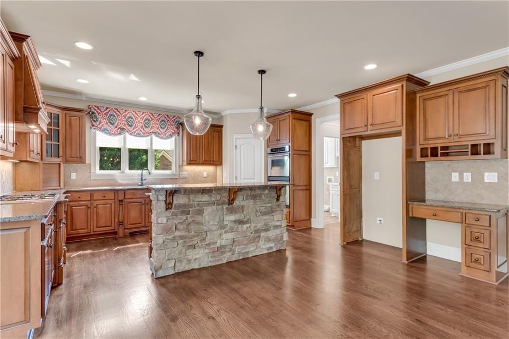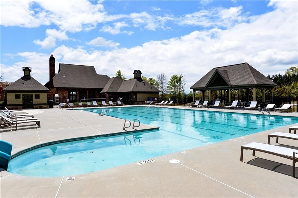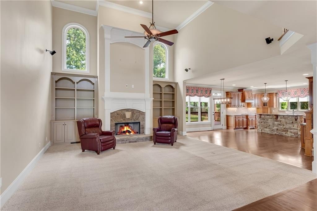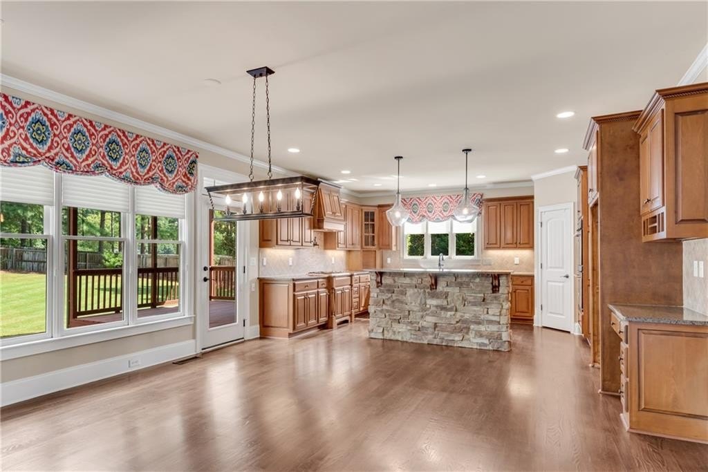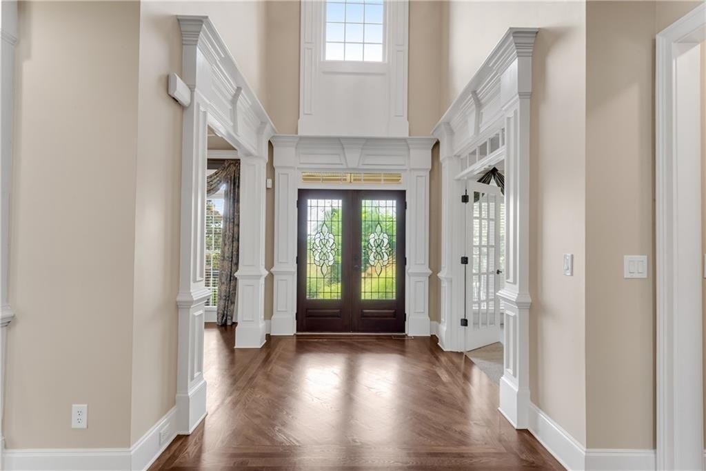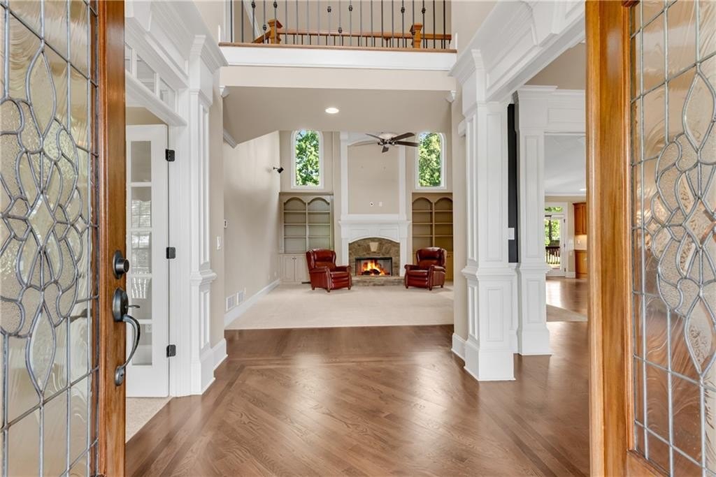3-Sided Brick & Stone Executive home w/HUGE level fenced backyard! Built by one of the original Riversprings CUSTOM home builders from Vintage Communities Builder Group. True wrap around rocking chair front porch w/double doors to the dramatic two-story foyer featuring inlay design site-finished hardwood floors extending to the formal dining, kitchen and main level hallways. French doors to the main level study with intricate beadboard coffered ceiling. Formal dining w/extensive trim package and bump out for buffet or China cabinet. The soaring two-story great room features a stacked stone fireplace and built-in bookcases. Spacious island w/quality cabinets featuring a cabinet vent hood, walk-in pantry, gas cooking, below counter microwave and double ovens. Brick herringbone tile laundry/mud room w/cabinets, laundry sink and door to driveway. Hard to find main level guest bedroom plan that features a private full bath for bedroom + separate half bath for main living areas. You will feel like you are at the Four Seasons in this premium oversized primary suite featuring a tray ceiling, sitting room w/gas fireplace, spa bath w/jetted tub and separate double tile shower plus a massive custome closet! One upstairs bedroom w/private bath and other two share a jack & jill bath. Finished terrace level features a rec room, additional exercise room or office and a full tile bath. Several additional unfinished rooms for additional expansion. Relax outside on the covered porch w/stacked stone gas fireplace stepping down to the additional deck with plenty of room for dining area and grilling. Walk to the impressive amenity package including clubhouse, 4 tennis courts, soccer field, basketball, pool w/slide and playground! Great location w/easy access to HWY 316 and shopping at corner of 316 and HWY 316 featuring Target, Publix, HomeGoods, Belk, Michaels, Chick-Fil-A, Starbucks, LongHorn Steakhouse, AMC Theater and more!