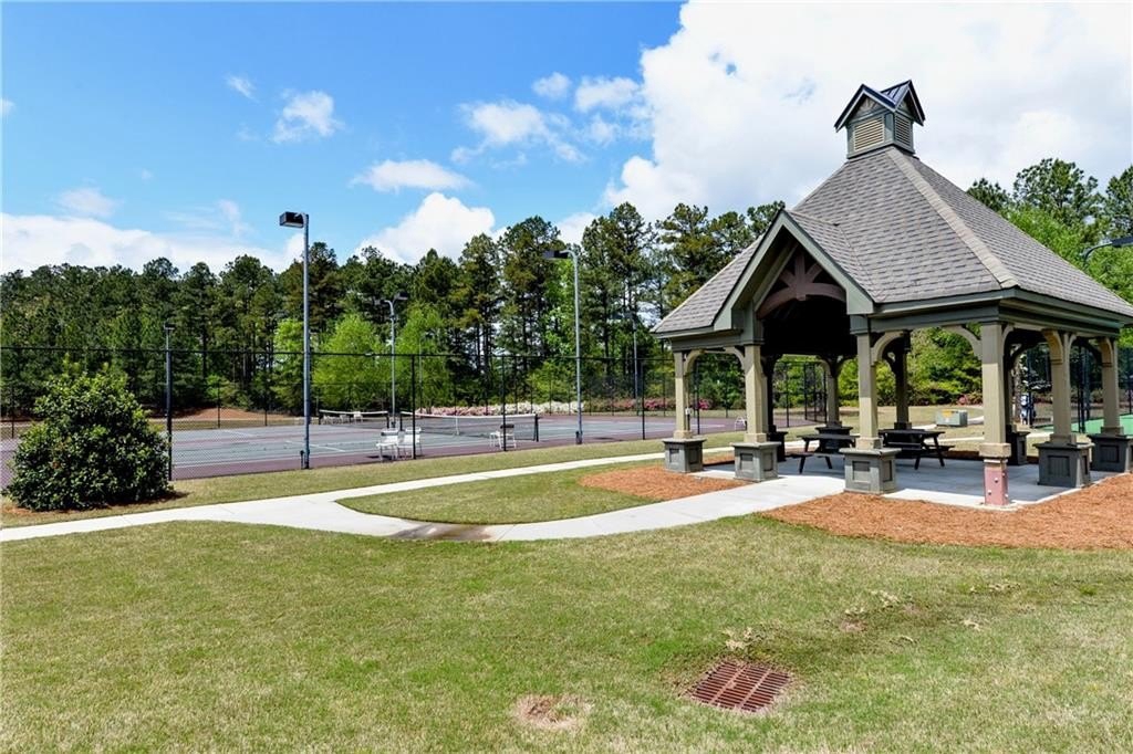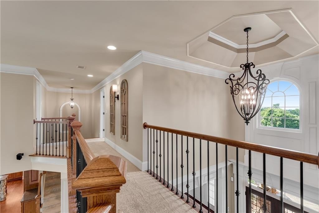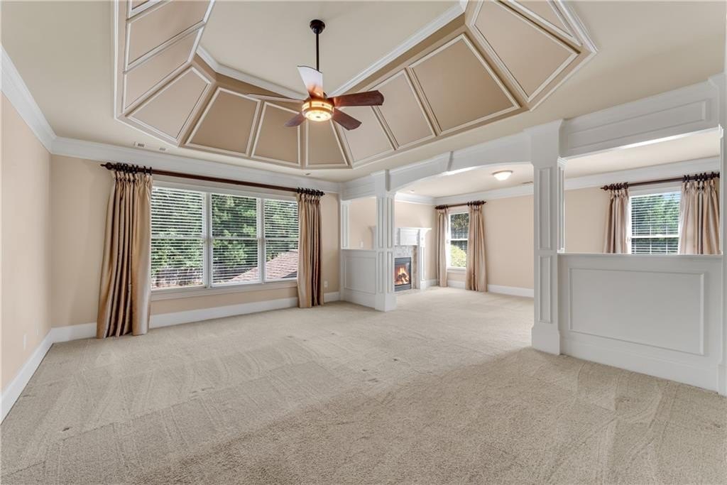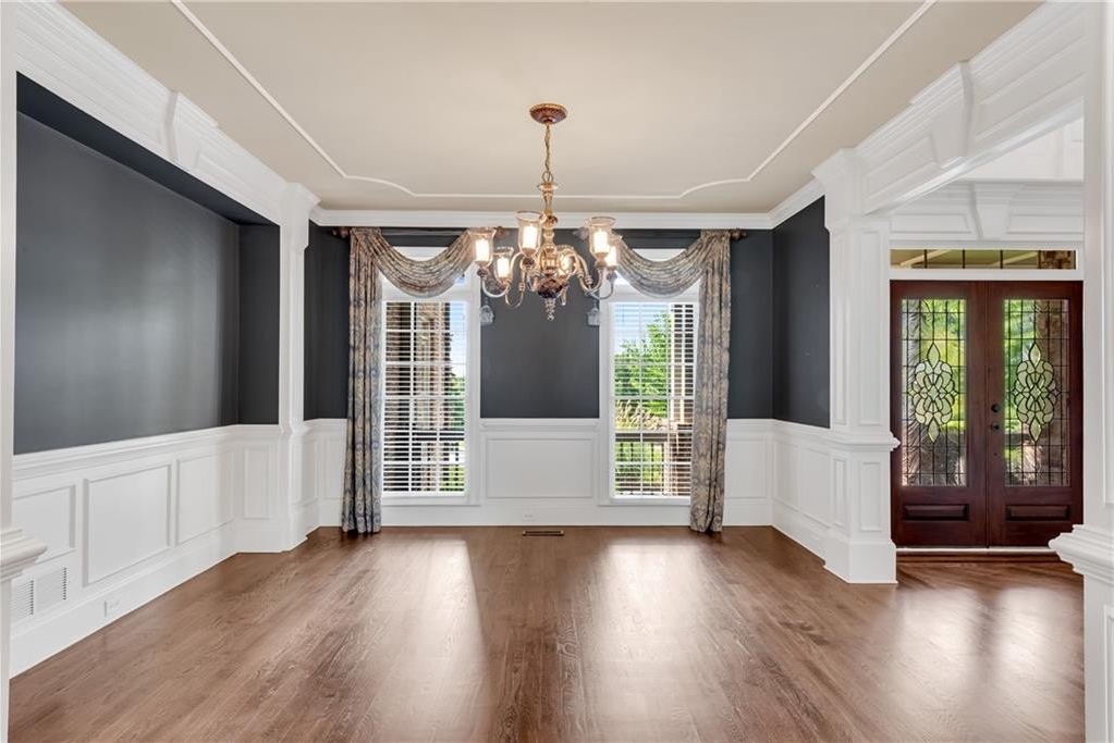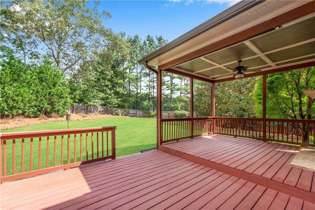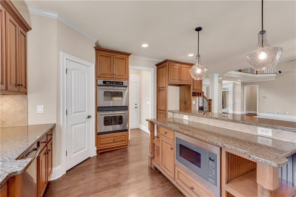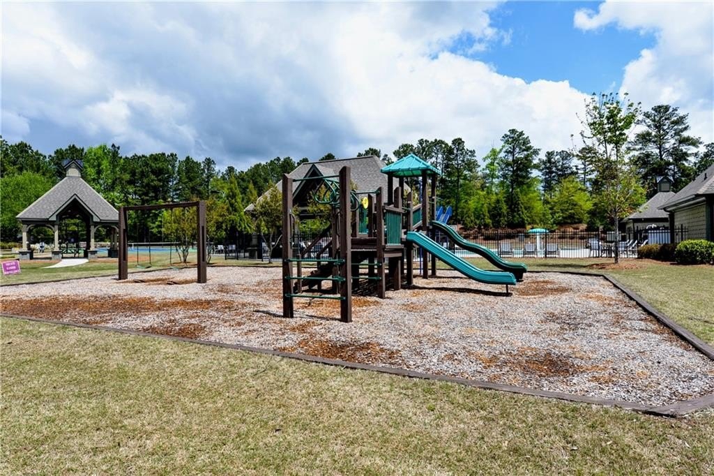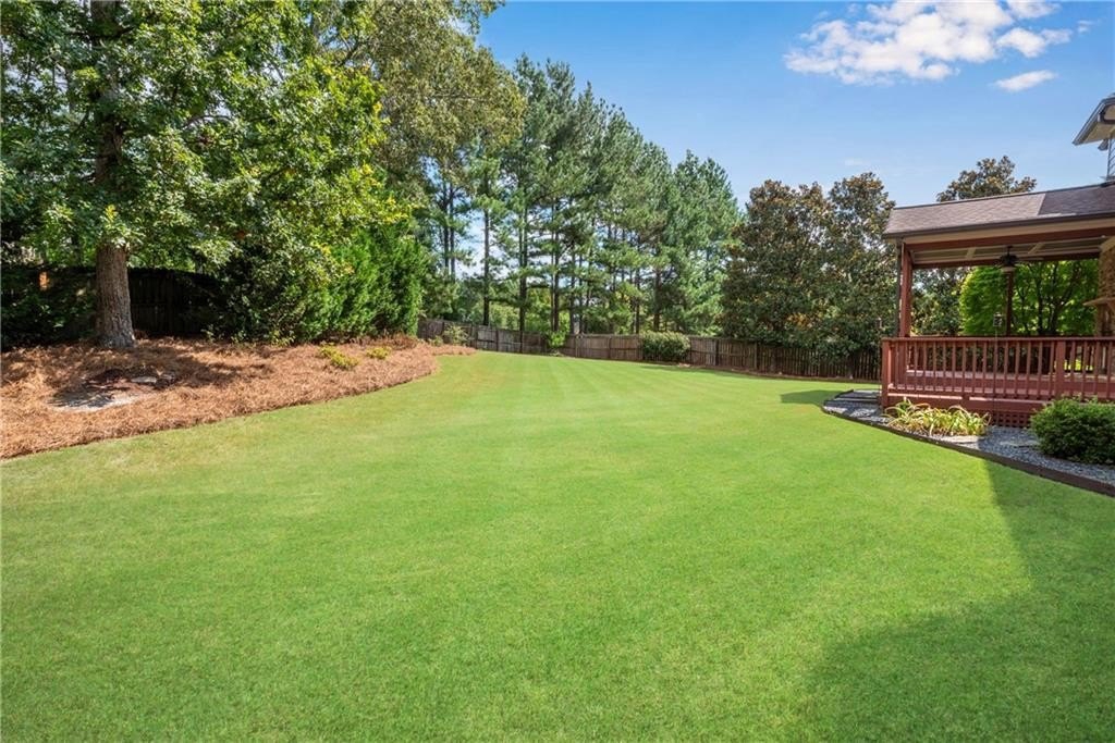 3-Sided Brick & Stone Executive home w/HUGE level fenced backyard! Built by one of the original Riversprings CUSTOM home builders from Vintage Communities Builder Group. True wrap around rocking chair front porch w/double doors to the dramatic two-story foyer featuring inlay design site-finished hardwood floors extending to the formal dining, kitchen and main level hallways. French doors to the main level study with intricate beadboard coffered ceiling. Formal dining w/extensive trim package and bump out for buffet or China cabinet. The soaring two-story great room features a stacked stone fireplace and built-in bookcases. Spacious island w/quality cabinets featuring a cabinet vent hood, walk-in pantry, gas cooking, below counter microwave and double ovens. Brick herringbone tile laundry/mud room w/cabinets, laundry sink and door to driveway. Hard to find main level guest bedroom plan that features a private full bath for bedroom + separate half bath for main living areas. You will feel like you are at the Four Seasons in this premium oversized primary suite featuring a tray ceiling, sitting room w/gas fireplace, spa bath w/jetted tub and separate double tile shower plus a massive custome closet! One upstairs bedroom w/private bath and other two share a jack & jill bath. Finished terrace level features a rec room, additional exercise room or office and a full tile bath. Several additional unfinished rooms for additional expansion. Relax outside on the covered porch w/stacked stone gas fireplace stepping down to the additional deck with plenty of room for dining area and grilling. Walk to the impressive amenity package including clubhouse, 4 tennis courts, soccer field, basketball, pool w/slide and playground! Great location w/easy access to HWY 316 and shopping at corner of 316 and HWY 316 featuring Target, Publix, HomeGoods, Belk, Michaels, Chick-Fil-A, Starbucks, LongHorn Steakhouse, AMC Theater and more!