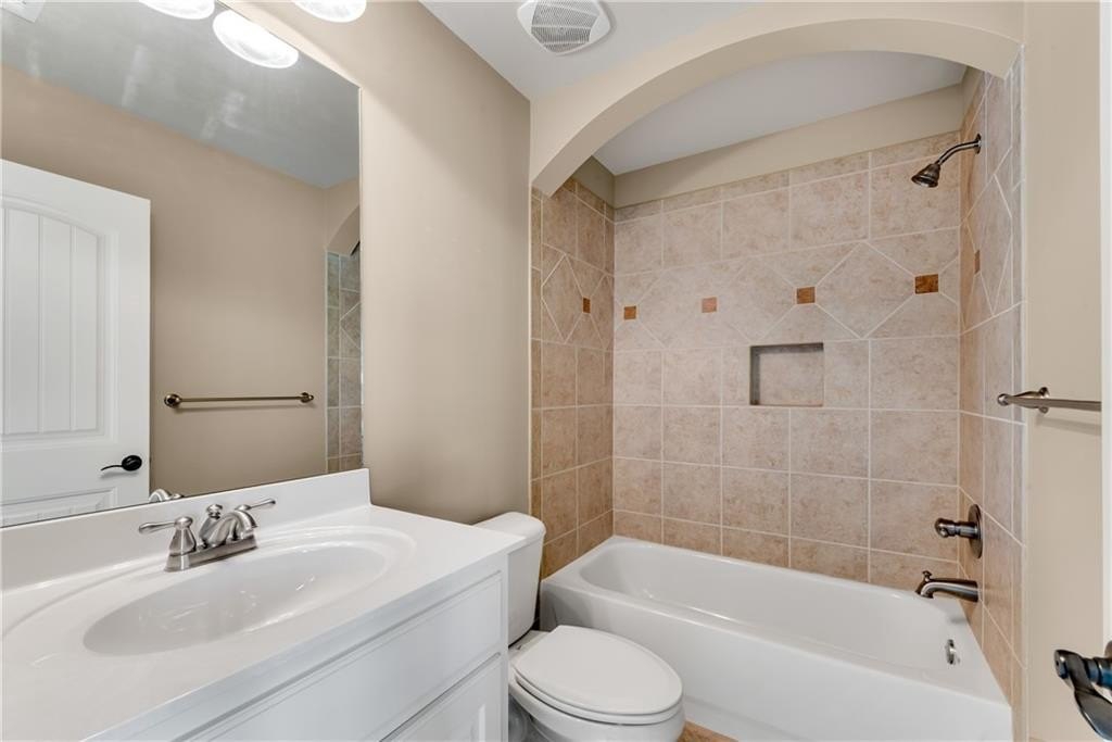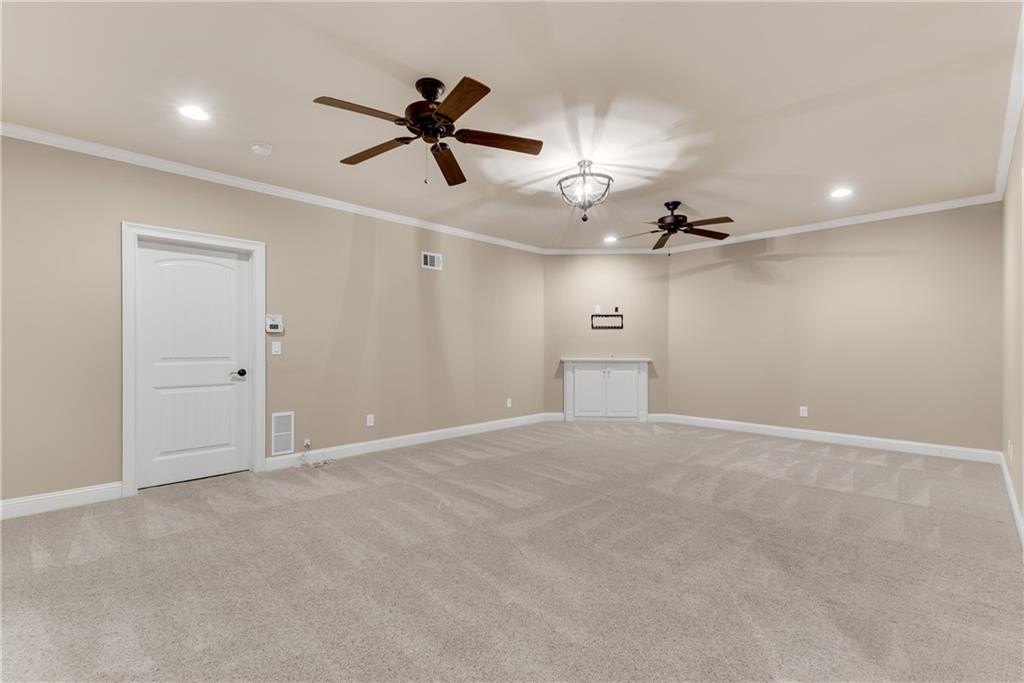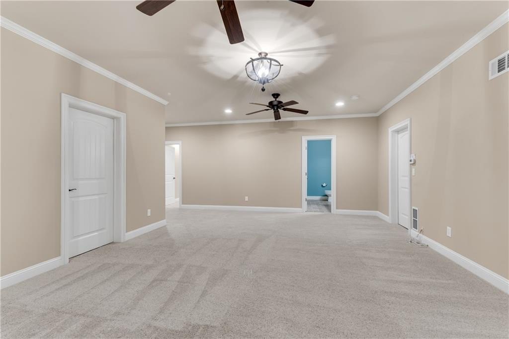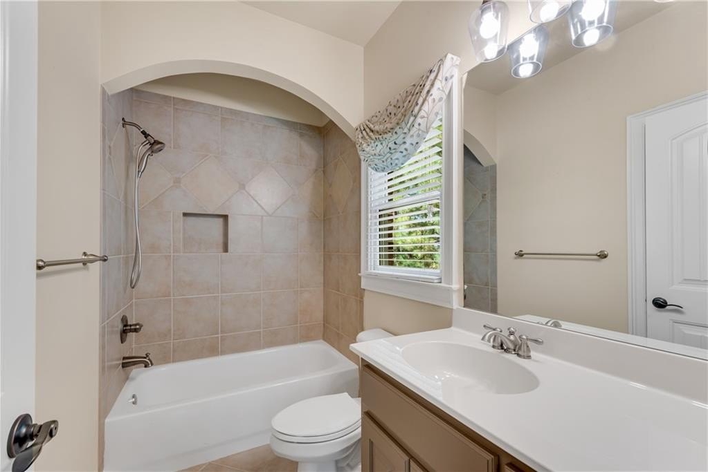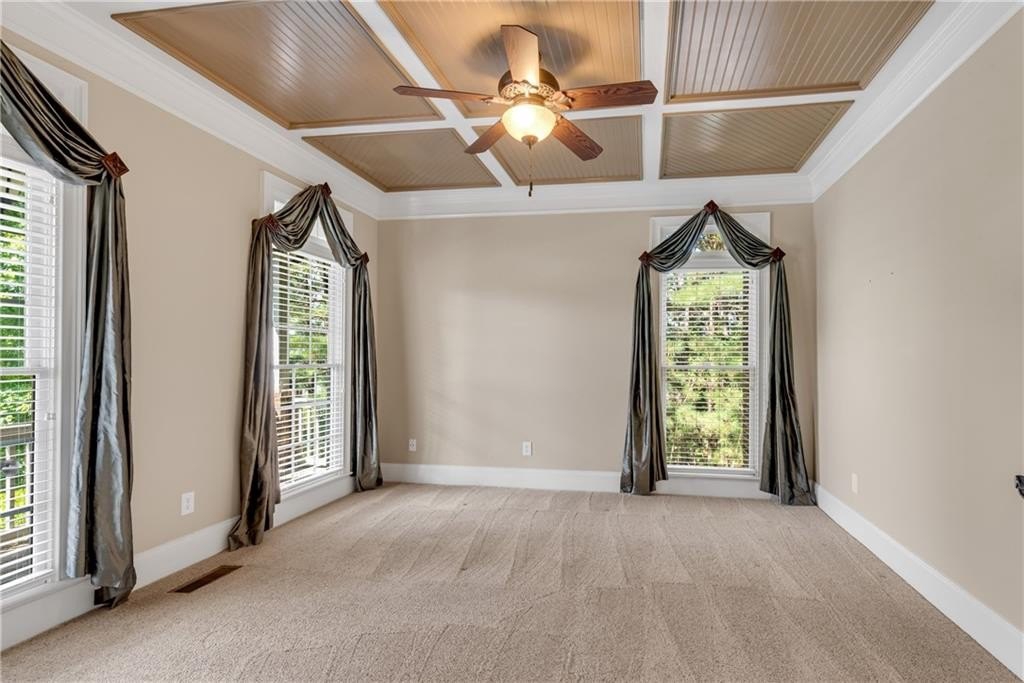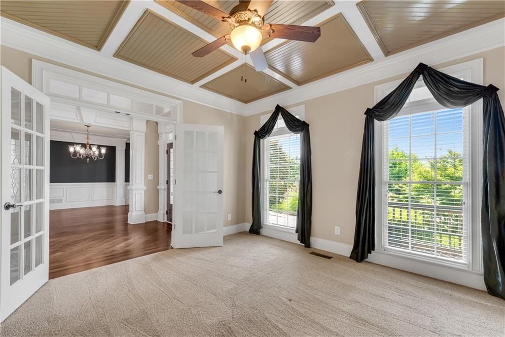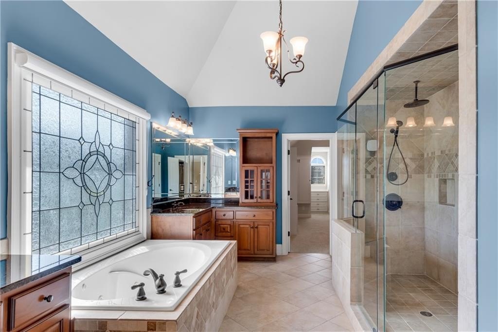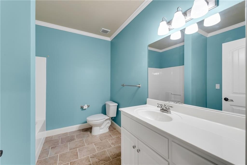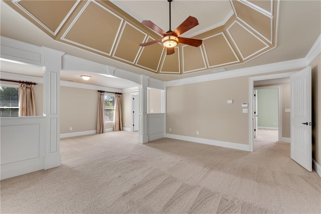 3-Sided Brick & Stone Executive home w/HUGE level fenced backyard! Built by one of the original Riversprings CUSTOM home builders from Vintage Communities Builder Group. True wrap around rocking chair front porch w/double doors to the dramatic two-story foyer featuring inlay design site-finished hardwood floors extending to the formal dining, kitchen and main level hallways. French doors to the main level study with intricate beadboard coffered ceiling. Formal dining w/extensive trim package and bump out for buffet or China cabinet. The soaring two-story great room features a stacked stone fireplace and built-in bookcases. Spacious island w/quality cabinets featuring a cabinet vent hood, walk-in pantry, gas cooking, below counter microwave and double ovens. Brick herringbone tile laundry/mud room w/cabinets, laundry sink and door to driveway. Hard to find main level guest bedroom plan that features a private full bath for bedroom + separate half bath for main living areas. You will feel like you are at the Four Seasons in this premium oversized primary suite featuring a tray ceiling, sitting room w/gas fireplace, spa bath w/jetted tub and separate double tile shower plus a massive custome closet! One upstairs bedroom w/private bath and other two share a jack & jill bath. Finished terrace level features a rec room, additional exercise room or office and a full tile bath. Several additional unfinished rooms for additional expansion. Relax outside on the covered porch w/stacked stone gas fireplace stepping down to the additional deck with plenty of room for dining area and grilling. Walk to the impressive amenity package including clubhouse, 4 tennis courts, soccer field, basketball, pool w/slide and playground! Great location w/easy access to HWY 316 and shopping at corner of 316 and HWY 316 featuring Target, Publix, HomeGoods, Belk, Michaels, Chick-Fil-A, Starbucks, LongHorn Steakhouse, AMC Theater and more!
