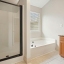 All bathrooms have matching granite countertops, tying the home’s finishes together in a clean, cohesive design.