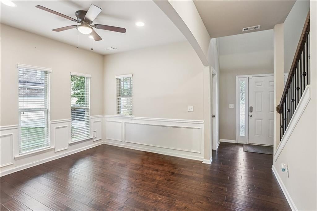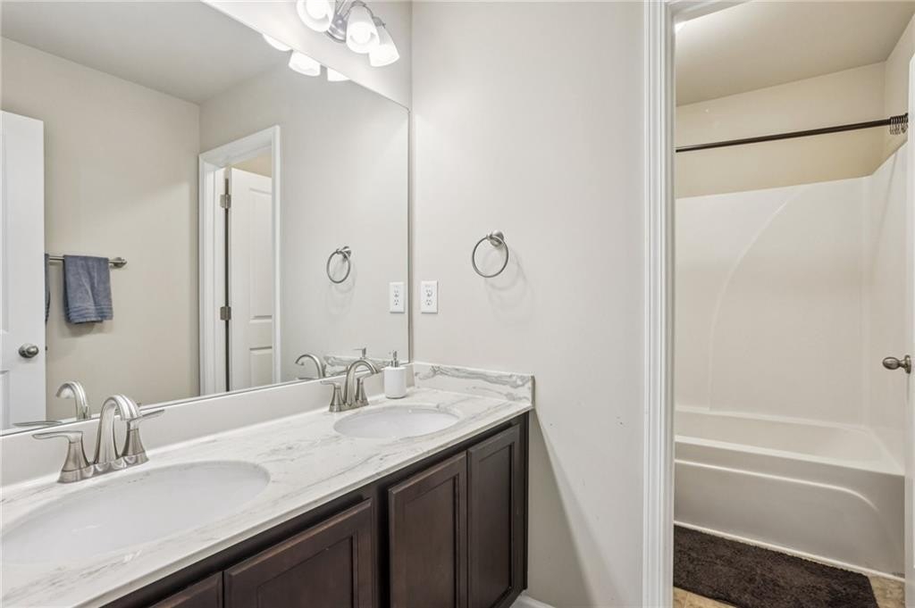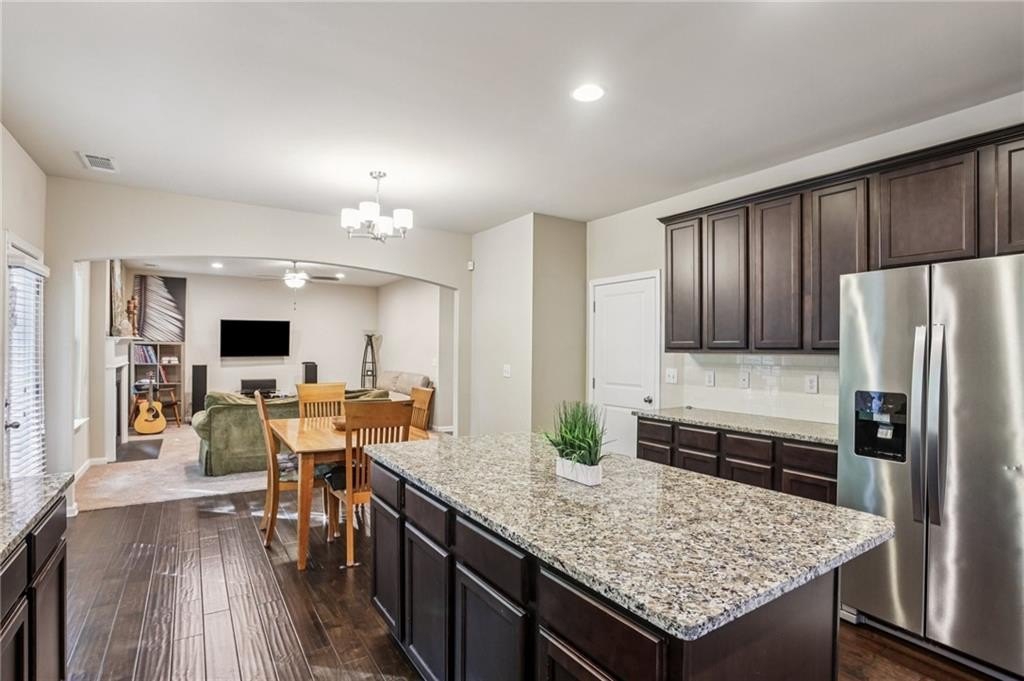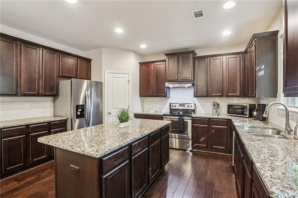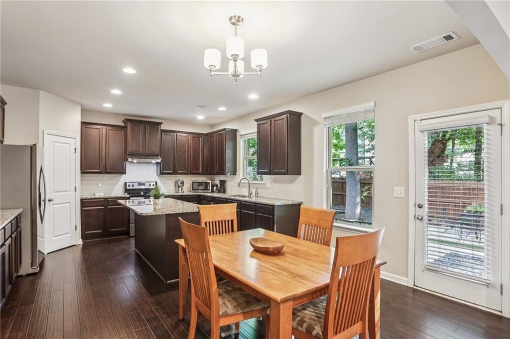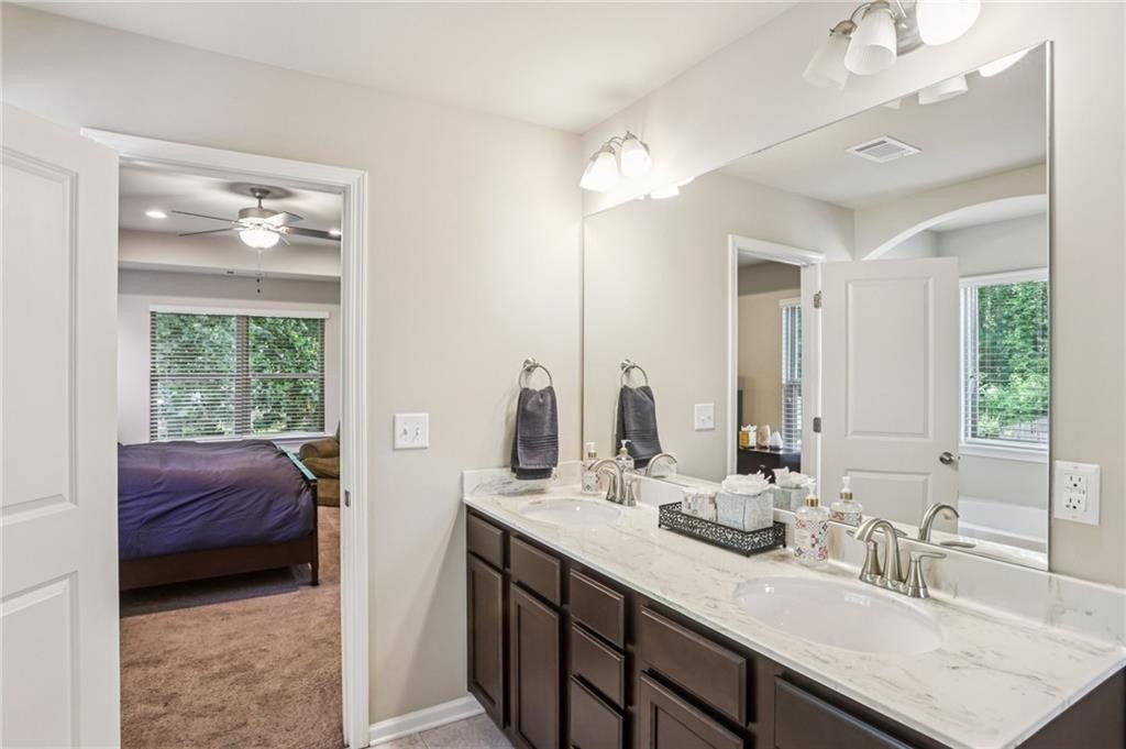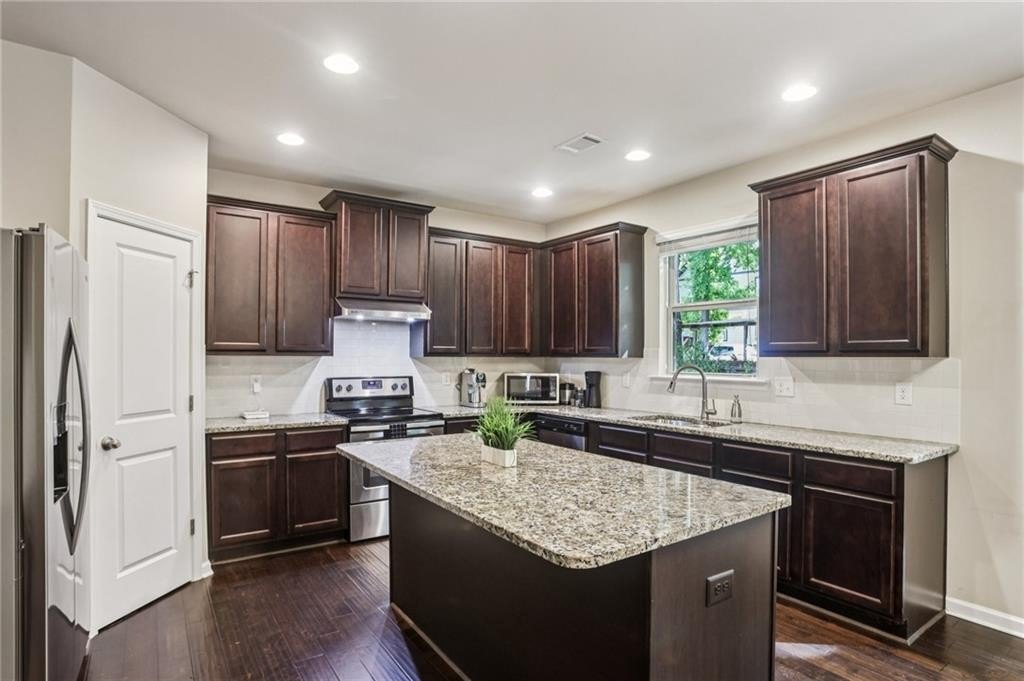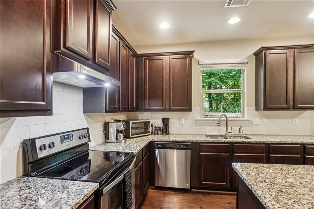 Absolutely perfect home in Powder Springs Village featuring 4 bedrooms 2.5 baths, on a cul-de-sac lot, fenced back yard. Gorgeous open concept kitchen with solid surface countertops, plenty of cabinet and pantry space. Kitchen has view to family room, and kitchen level garage. Separate DR, beautiful hardwood floors in kitchen and foyer. Primary bedroom upstairs, with double vanity, large tub, separate shower and fantastic walk-in closet. 3 spacious bedrooms also upstairs, with additional full bath. Laundry room located upstairs by all bedrooms for convivence. Level cul-de-sac lot, with large backyard, tons of deck and 2 different patios for outdoor seating and entertaining, as well as lots of room for a garden/ play space. Prime location, 6 miles to the Marietta Square, 1 mile to E/W Connector, 2 miles to Windy Hill. Shopping, restaurants, and schools all very nearby!