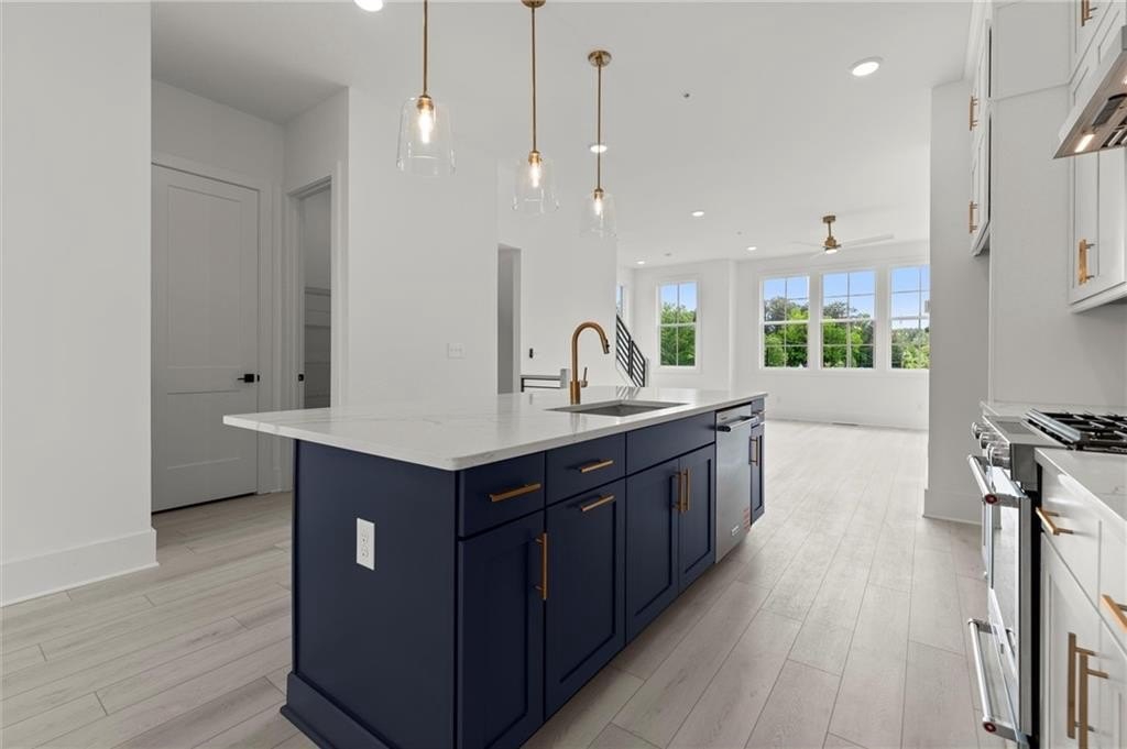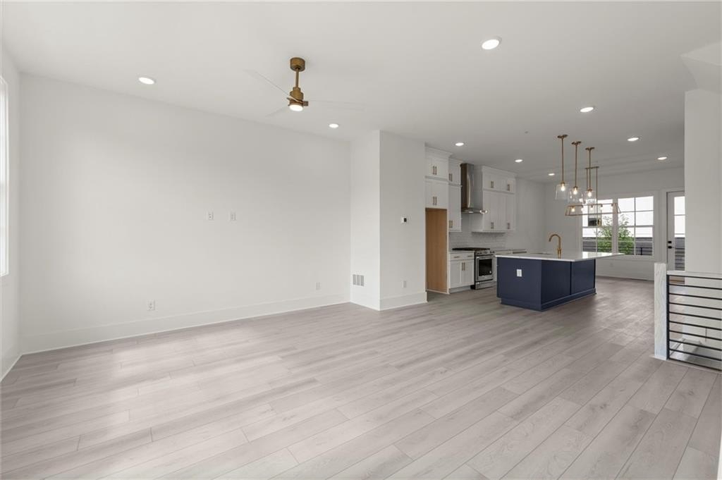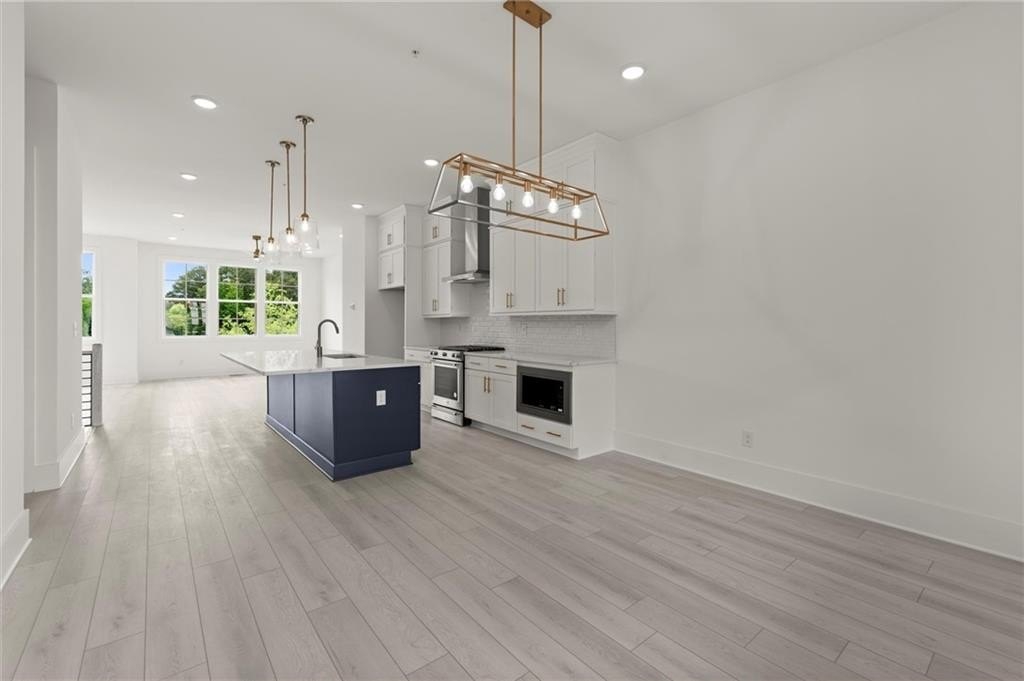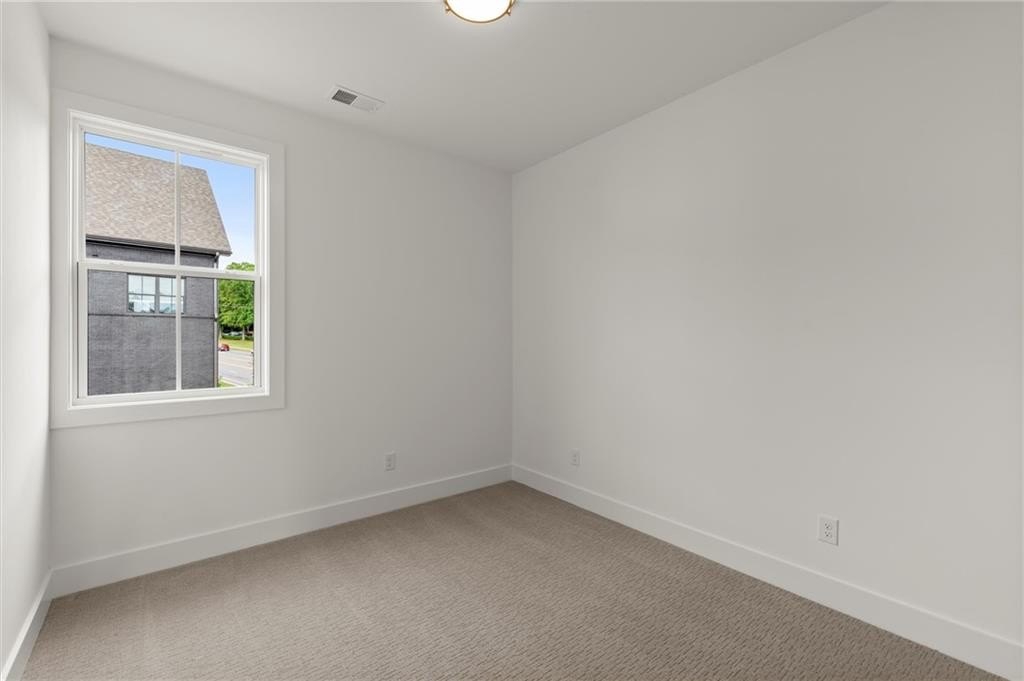 Introducing the Adeline (END-UNIT), a Contemporary style townhome boasting 2,160 square feet of luxurious living space. With 4 bedrooms, 3.5 bathrooms, and three stories of thoughtfully designed interiors, this home offers the perfect blend of modern style and comfort. As you enter the first floor, you'll find a spacious guest suite complete with its own private bathroom, ideal for visitors or a home office. The entryway also provides access to the attached two-car garage, ensuring convenience. Ascend to the second floor to experience the heart of the home, an open concept living area designed for both relaxation and entertainment. The expansive living room, featuring 10 ft ceilings and large windows, seamlessly flows into the dining area and gourmet kitchen. The kitchen is a chef's dream, boasting Kitchen Aid stainless steel appliances, quartz countertops, sleek cabinetry and a generous island. The third floor is dedicated to privacy and tranquility housing the primary suite and additional bedrooms. The luxurious Primary Suite features a walk-in closet and spa-like en-suite bathroom with a raised maple dual vanity and glass enclosed shower. Two additional well-appointed bedrooms share a stylish full bathroom, and a laundry room on this floor adds to the home's functionality. Located in The Gathering, a Vibrant new community, just minutes from downtown Alpharetta, Avalon and top-rated schools as well as prime access to the Alpha Loop. Enjoy our community amenities such as a Community Garden, Firepit and Dog Park. This home provides the ultimate in modern suburban living. Experience the perfect combination of style, comfort and convenience!! This home is an end unit and is MOVE-IN READY!! Photos are of actual unit. Agent is on-site Monday, Tuesday, Thursday, Friday & Saturday (10:00-5:00) and Wednesday and Sunday (1:00-5:00).