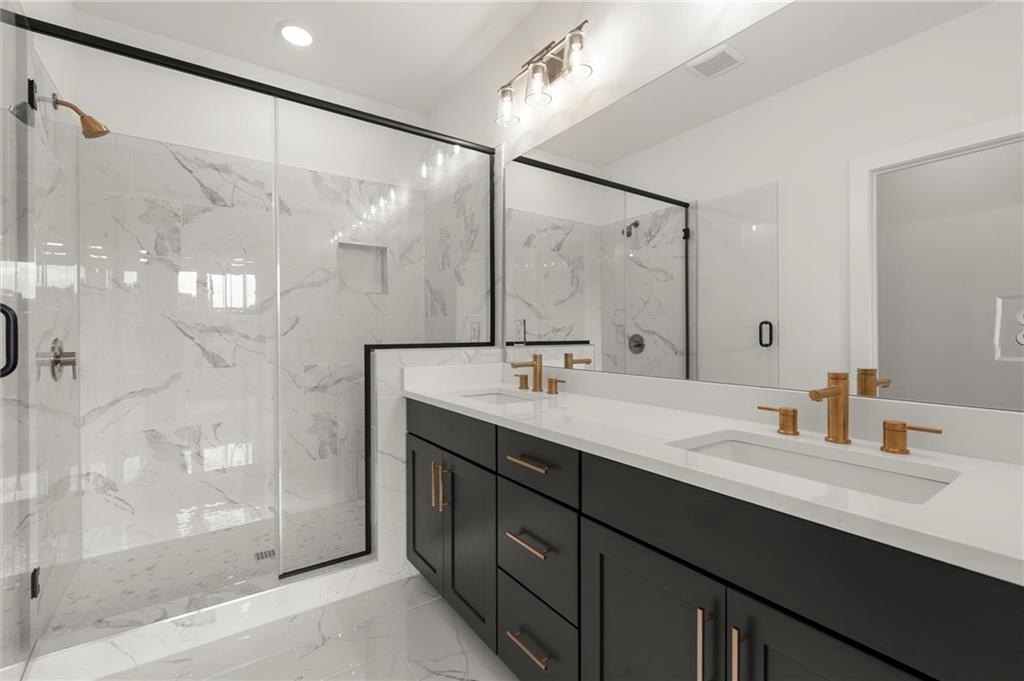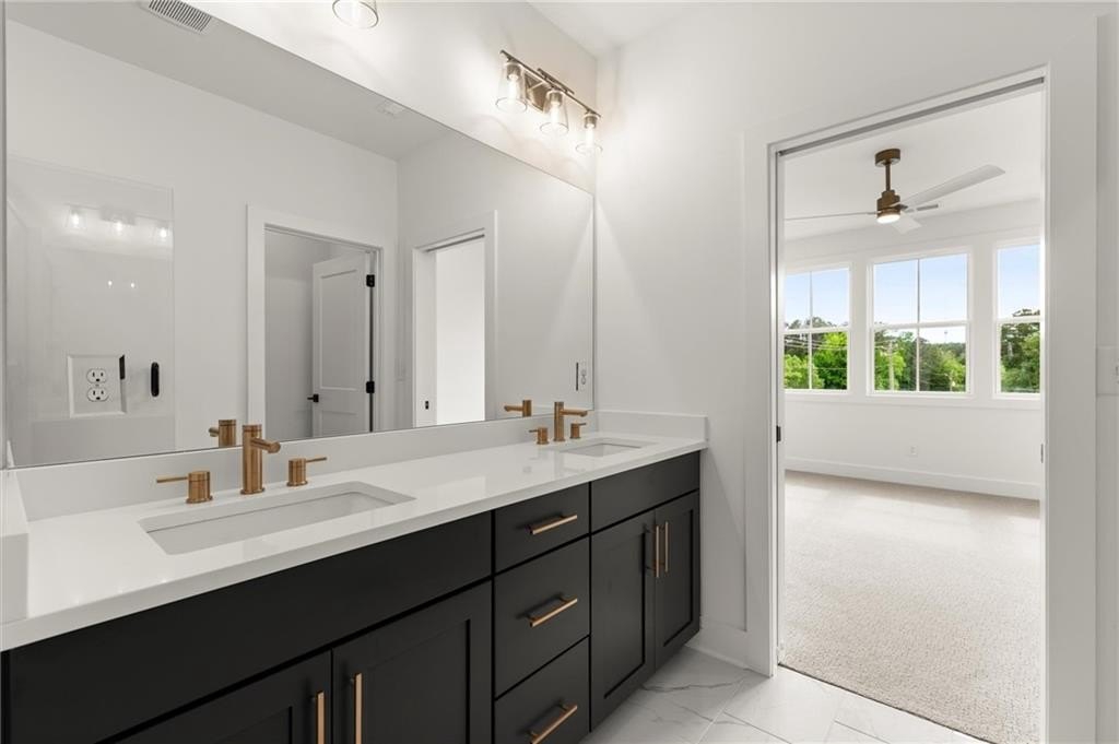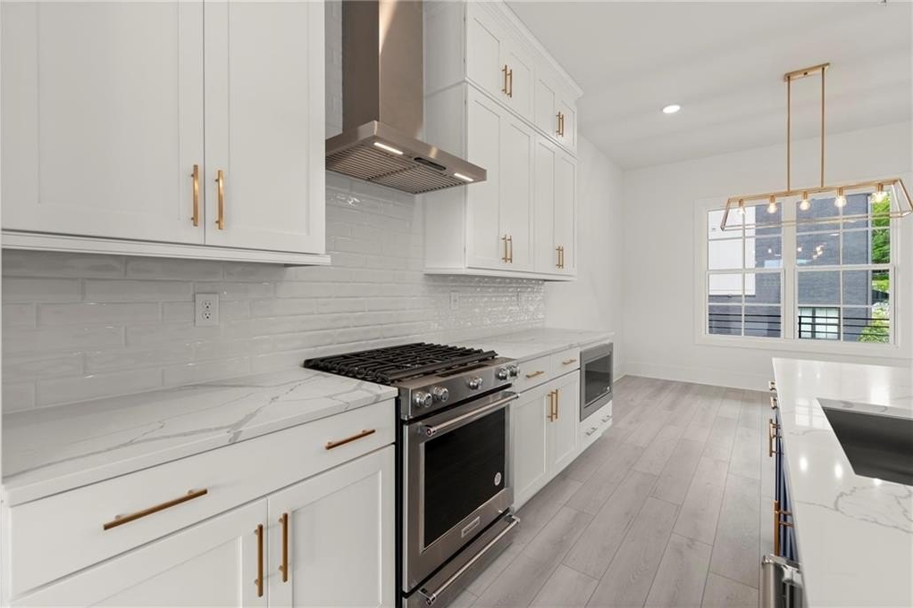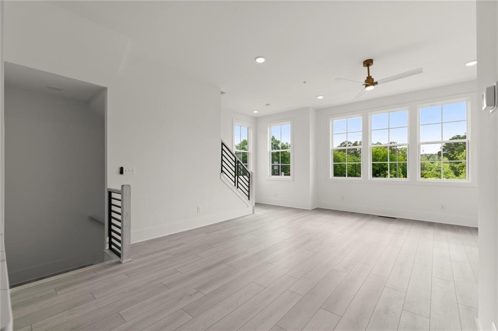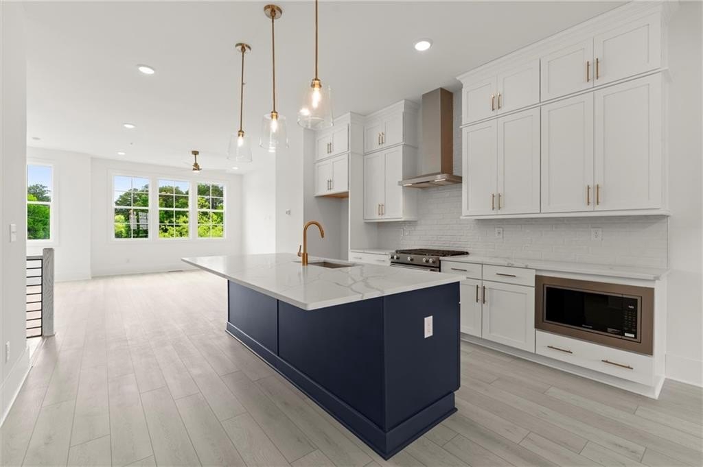 Introducing the Adeline (END-UNIT), a Contemporary style townhome boasting 2,160 square feet of luxurious living space. With 4 bedrooms, 3.5 bathrooms, and three stories of thoughtfully designed interiors, this home offers the perfect blend of modern style and comfort. As you enter the first floor, you'll find a spacious guest suite complete with its own private bathroom, ideal for visitors or a home office. The entryway also provides access to the attached two-car garage, ensuring convenience. Ascend to the second floor to experience the heart of the home, an open concept living area designed for both relaxation and entertainment. The expansive living room, featuring 10 ft ceilings and large windows, seamlessly flows into the dining area and gourmet kitchen. The kitchen is a chef's dream, boasting Kitchen Aid stainless steel appliances, quartz countertops, sleek cabinetry and a generous island. The third floor is dedicated to privacy and tranquility housing the primary suite and additional bedrooms. The luxurious Primary Suite features a walk-in closet and spa-like en-suite bathroom with a raised maple dual vanity and glass enclosed shower. Two additional well-appointed bedrooms share a stylish full bathroom, and a laundry room on this floor adds to the home's functionality. Located in The Gathering, a Vibrant new community, just minutes from downtown Alpharetta, Avalon and top-rated schools as well as prime access to the Alpha Loop. Enjoy our community amenities such as a Community Garden, Firepit and Dog Park. This home provides the ultimate in modern suburban living. Experience the perfect combination of style, comfort and convenience!! This home is an end unit and is MOVE-IN READY!! Photos are of actual unit. Agent is on-site Monday, Tuesday, Thursday, Friday & Saturday (10:00-5:00) and Wednesday and Sunday (1:00-5:00).