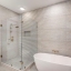 The chef’s kitchen is equipped with Miele appliances, custom wood cabinetry, and Taj Mahal Quartzite countertops and backsplash. Upstairs, the oversized primary suite offers a spa-inspired bath with soaking tub, large walk-in shower, and custom tilework. Two additional bedrooms feature updated en suite bathrooms with new vanities and fixtures.