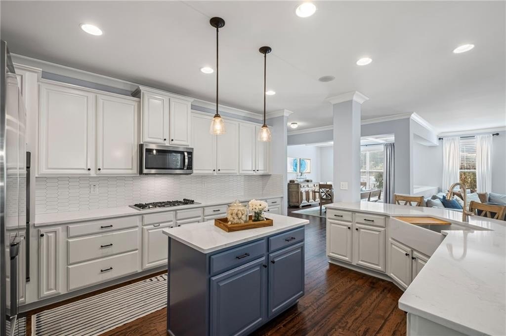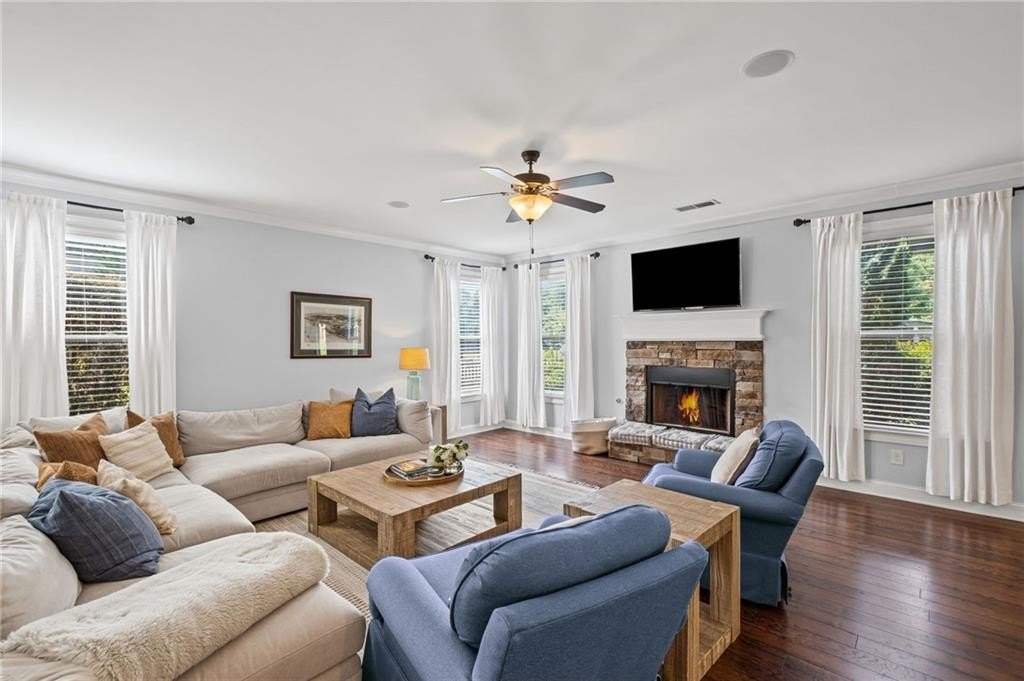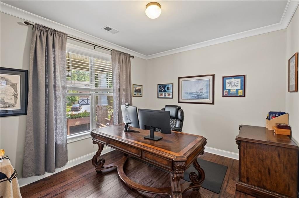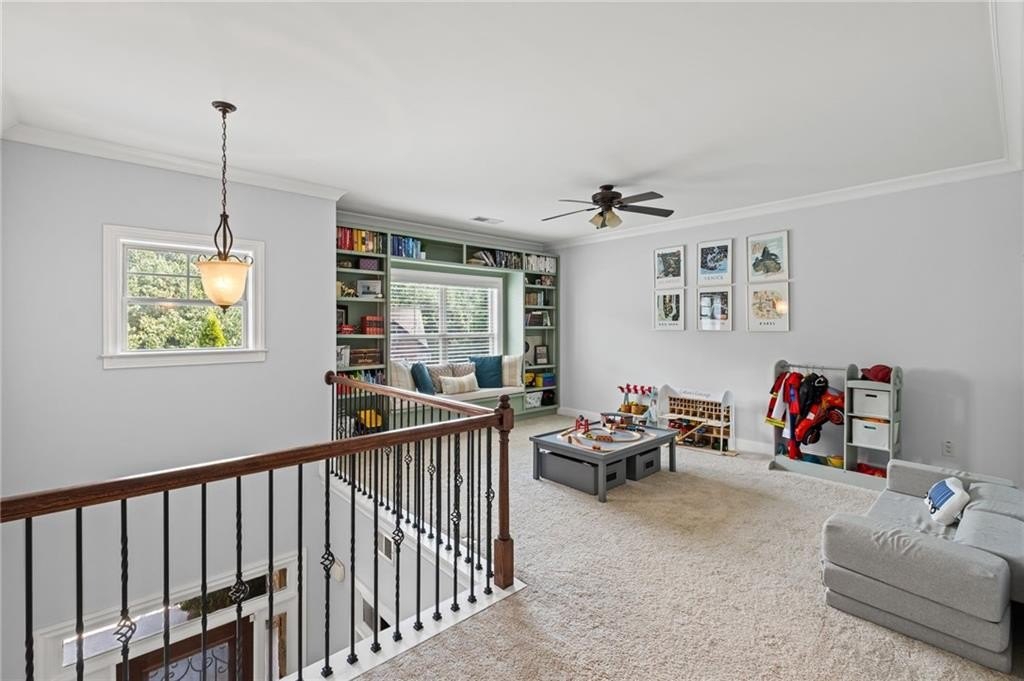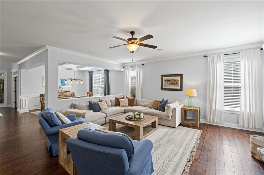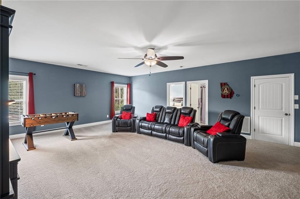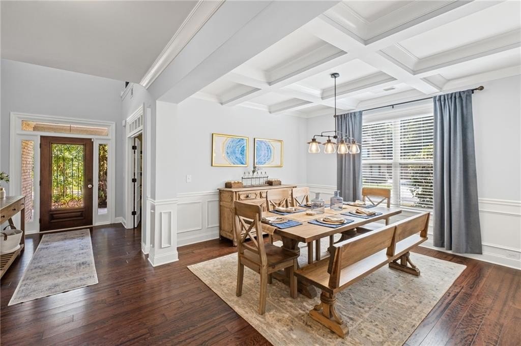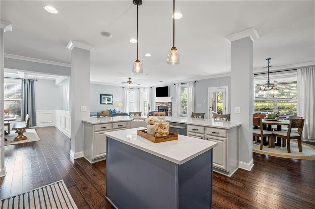 Welcome to this beautifully updated and impeccably maintained 6-bedroom, 5-bathroom home in Castille, an exclusive gated community of just 37 executive homes. Situated in a prime Alpharetta location with the benefit of top-rated Forsyth County schools and lower taxes, this home blends luxury, comfort, and convenience. The main level boasts an inviting open floor plan designed for both everyday living and entertaining. Step through the covered rocking chair front porch into a grand two-story foyer. Highlights include an executive home office, a formal dining room with coffered ceilings, a fireside family room, breakfast area, and a cozy fireside keeping room. The gourmet kitchen is a chef’s dream, featuring double ovens, stone countertops, stainless steel appliances, custom tile backsplash, two large islands, and ample workspace. A bedroom with a full bath and a mudroom completes the main floor. Upstairs, you'll find a charming reading nook with a custom window seat and built-in bookshelves, a large laundry room with cabinets and sink, four generously sized bedrooms and three full baths. The luxurious primary suite offers a private sitting area, two walk-in closets (including a custom-designed one), and a spa-like bath with a soaking tub, oversized tiled shower, and double vanity. The finished third level includes a full bath, flexible living space, a 6th bedroom, and the option for a 7th—perfect for a guest suite, media room, or home gym. Outdoor living is just as impressive, with covered front and back porches, an expanded patio, a fire pit, and a large, level fenced backyard—ideal for play or relaxation. Enjoy close proximity to Polo Fields, Vickery Village, Downtown Alpharetta, and GA 400—all while coming home to peaceful, private surroundings. With a brand-new roof and true move-in readiness, this home is the total package.