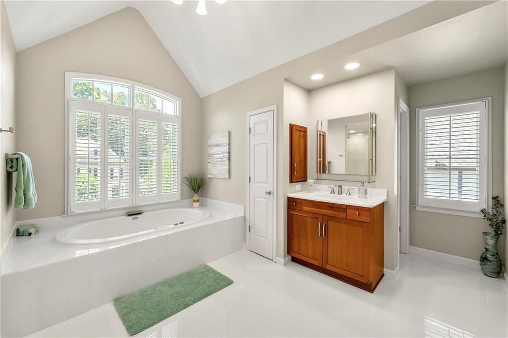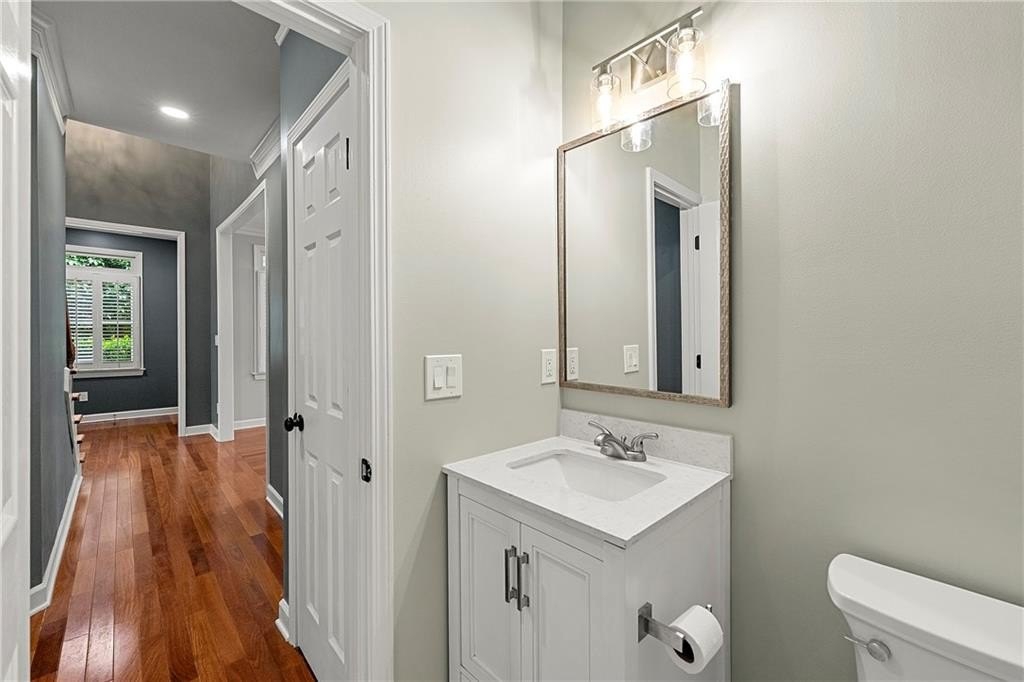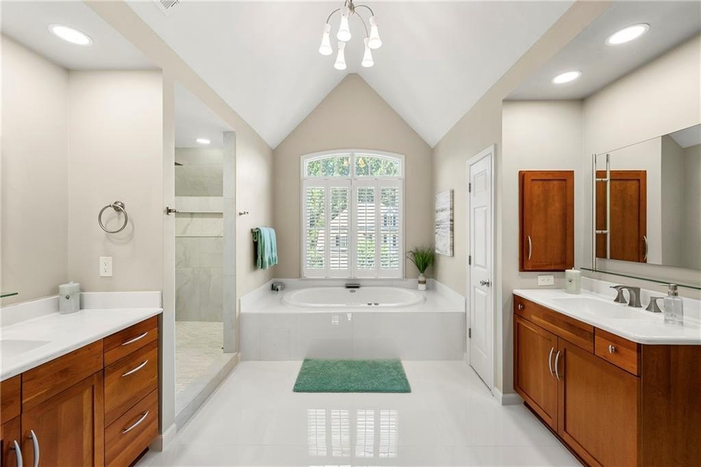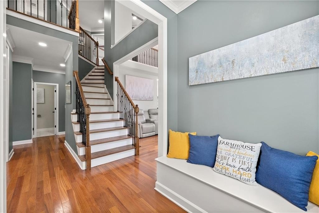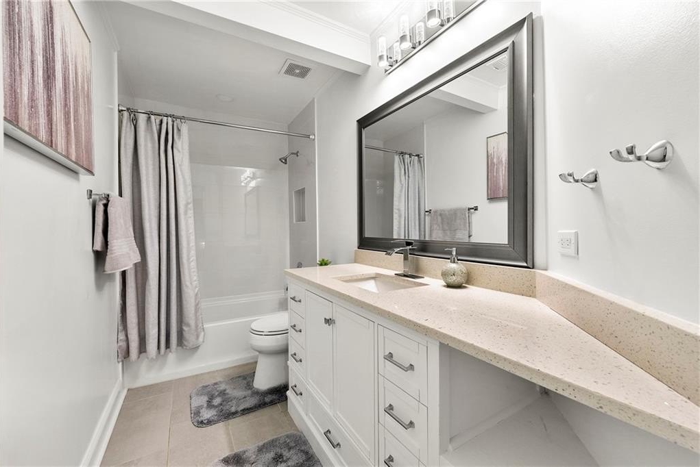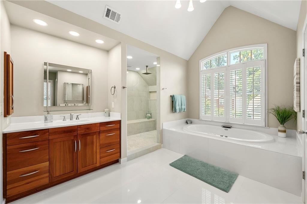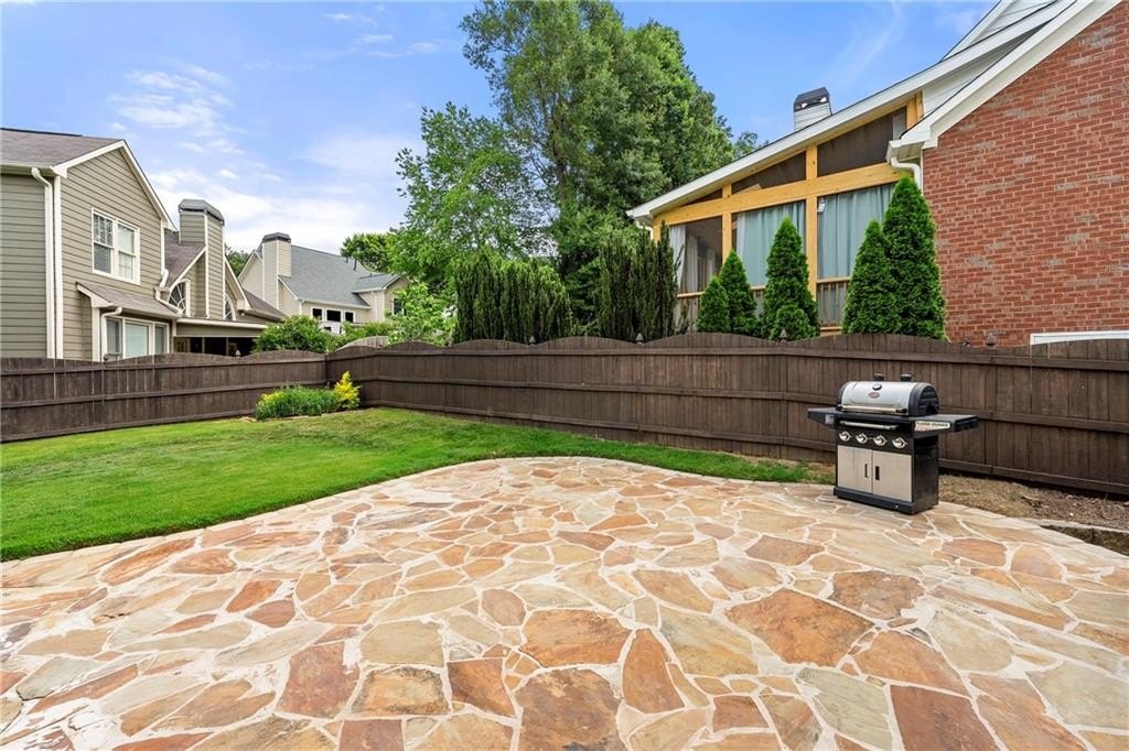 WELCOME HOME!! RENOVATED KITCHEN AND BATHROOMS! This beautiful two story home, built by John Weiland, boasts 4 bedrooms upstairs and a large Bonus room on the main level (with two closets) that can be used as an additional Master Bedroom or Den...whatever your heart desires! It has a fully renovated kitchen with new appliances and 3 renovated full bathrooms throughout the home. Fall in love with the oversized Owner Suite upstairs with a LARGE Luxury Shower, double vanity, separate jacuzzi tub, built in medicine cabinets, and a large walk in closet with custom shelves and drawers. It has newer carpet on the upper level and hardwood floors on the main level, plus wooden shutter blinds throughout the home!! Leading upstairs you have a new staircase with stained hardwood steps and rod iron railing that also spreads across the upper level, overlooking the two story family room with fireplace, foyer, and mudroom. The upstairs hall bathroom and downstairs bathroom have both been fully renovated. In addition to the large family room and bonus room, there is a separate Dining room and living room that can be used as an office space. Plus an open kitchen and bar with a breakfast area and bay windows!!!! Kitchen appliances are newer. There is also a new gas range with 5 burners, grill, and air fryer (not in the pictures). This home has recess lighting and fixtures throughout the home with updated electrical outlets and switches to give it that modern touch. It includes google thermostats, exterior security cameras, and a google security doorbell to make your living even more secure; including convenient access and control of all features from your phone while you're away from home! Interior and Exterior also recently painted. Entertain guests in your spacious fenced backyard with lush landscaping and flagstone patio... or sit, relax, and enjoy the birds chirping on your covered front porch. Walk to the neighborhood amenities, including pool, tennis courts, and playground. This neighborhood is located only minutes away from the heart of Smyrna, the Silver Comet Walking Trail, Cumberland Mall, The Battery and Braves Stadium, Downtown Smyrna, Restaurants, Shopping, Entertainment, local parks, community centers, library and more! This home has EVERYTHING to offer, the only thing it's missing is YOU. Don't miss out on making this gem yours! Schedule your private tour TODAY!!!