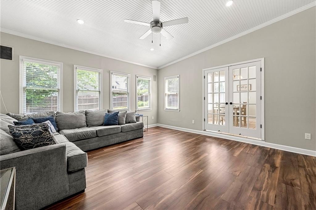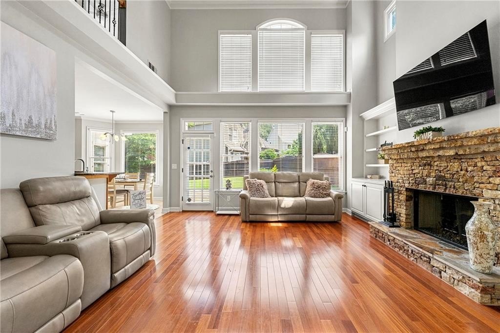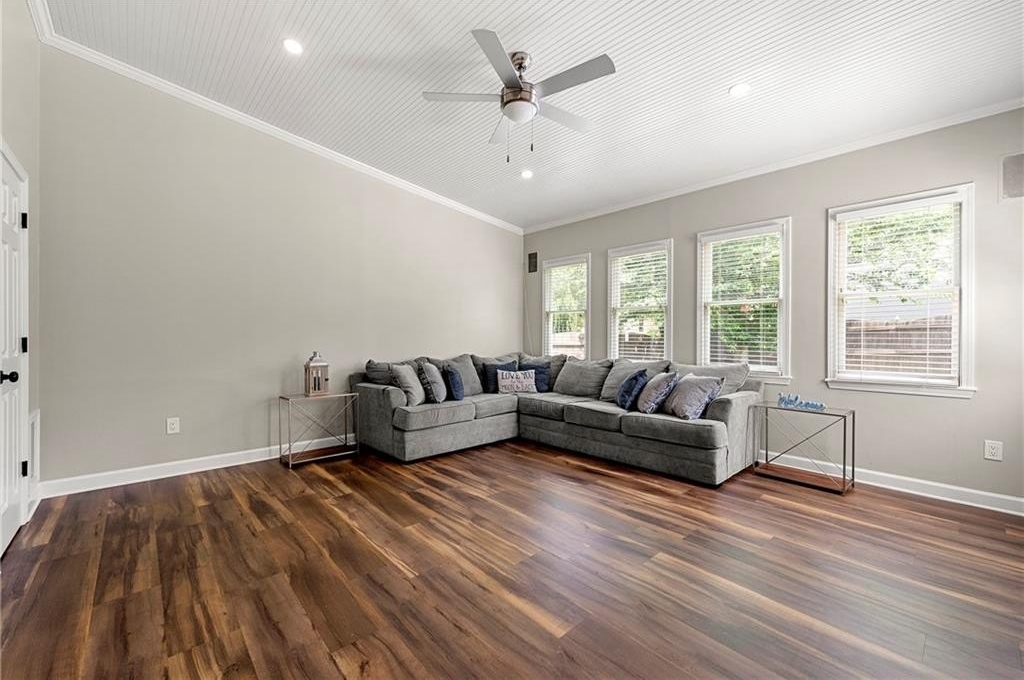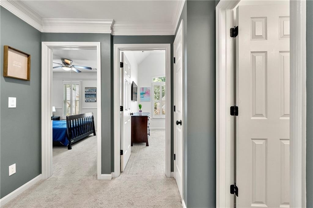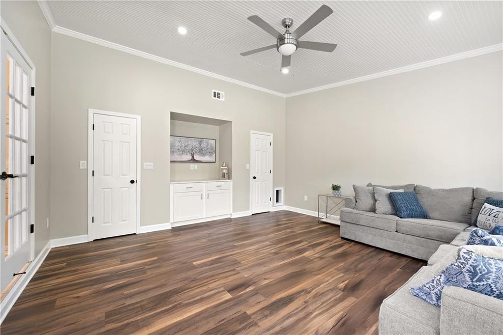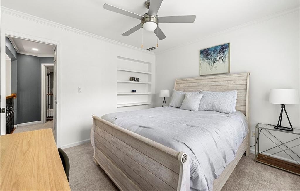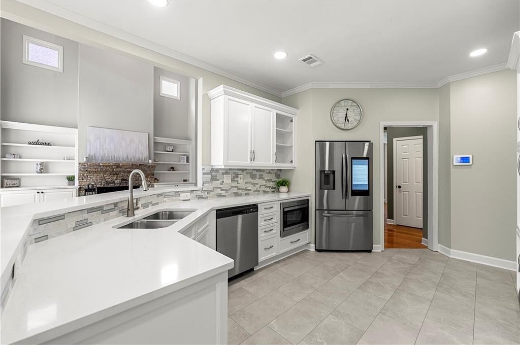 WELCOME HOME!! RENOVATED KITCHEN AND BATHROOMS! This beautiful two story home, built by John Weiland, boasts 4 bedrooms upstairs and a large Bonus room on the main level (with two closets) that can be used as an additional Master Bedroom or Den...whatever your heart desires! It has a fully renovated kitchen with new appliances and 3 renovated full bathrooms throughout the home. Fall in love with the oversized Owner Suite upstairs with a LARGE Luxury Shower, double vanity, separate jacuzzi tub, built in medicine cabinets, and a large walk in closet with custom shelves and drawers. It has newer carpet on the upper level and hardwood floors on the main level, plus wooden shutter blinds throughout the home!! Leading upstairs you have a new staircase with stained hardwood steps and rod iron railing that also spreads across the upper level, overlooking the two story family room with fireplace, foyer, and mudroom. The upstairs hall bathroom and downstairs bathroom have both been fully renovated. In addition to the large family room and bonus room, there is a separate Dining room and living room that can be used as an office space. Plus an open kitchen and bar with a breakfast area and bay windows!!!! Kitchen appliances are newer. There is also a new gas range with 5 burners, grill, and air fryer (not in the pictures). This home has recess lighting and fixtures throughout the home with updated electrical outlets and switches to give it that modern touch. It includes google thermostats, exterior security cameras, and a google security doorbell to make your living even more secure; including convenient access and control of all features from your phone while you're away from home! Interior and Exterior also recently painted. Entertain guests in your spacious fenced backyard with lush landscaping and flagstone patio... or sit, relax, and enjoy the birds chirping on your covered front porch. Walk to the neighborhood amenities, including pool, tennis courts, and playground. This neighborhood is located only minutes away from the heart of Smyrna, the Silver Comet Walking Trail, Cumberland Mall, The Battery and Braves Stadium, Downtown Smyrna, Restaurants, Shopping, Entertainment, local parks, community centers, library and more! This home has EVERYTHING to offer, the only thing it's missing is YOU. Don't miss out on making this gem yours! Schedule your private tour TODAY!!!