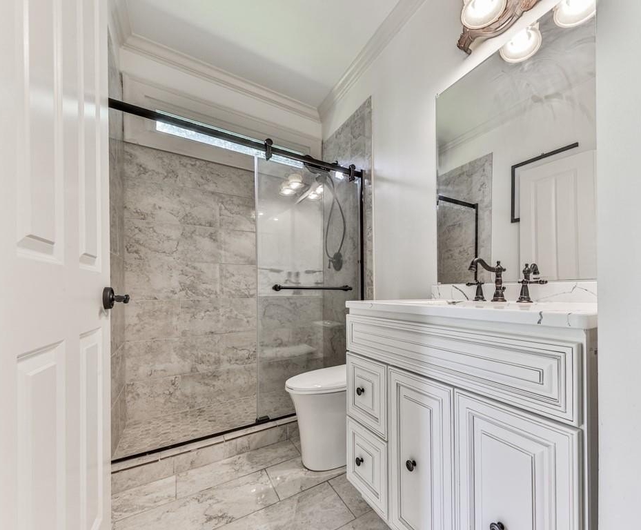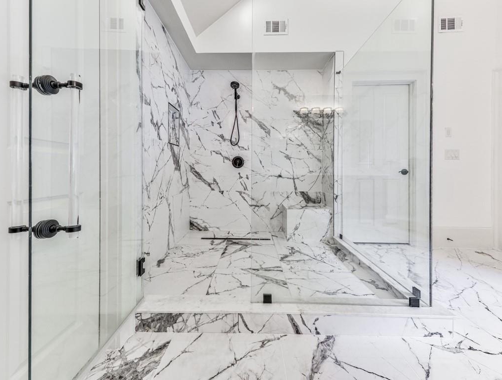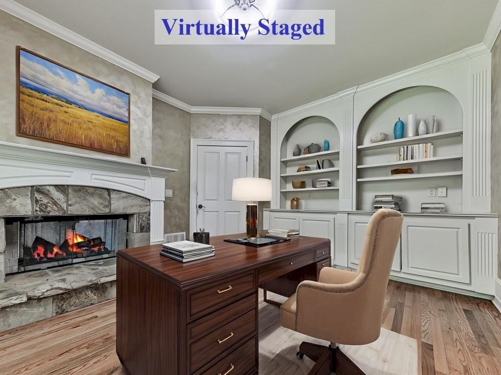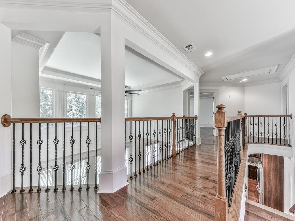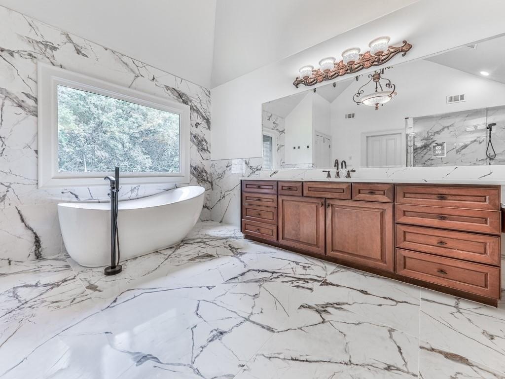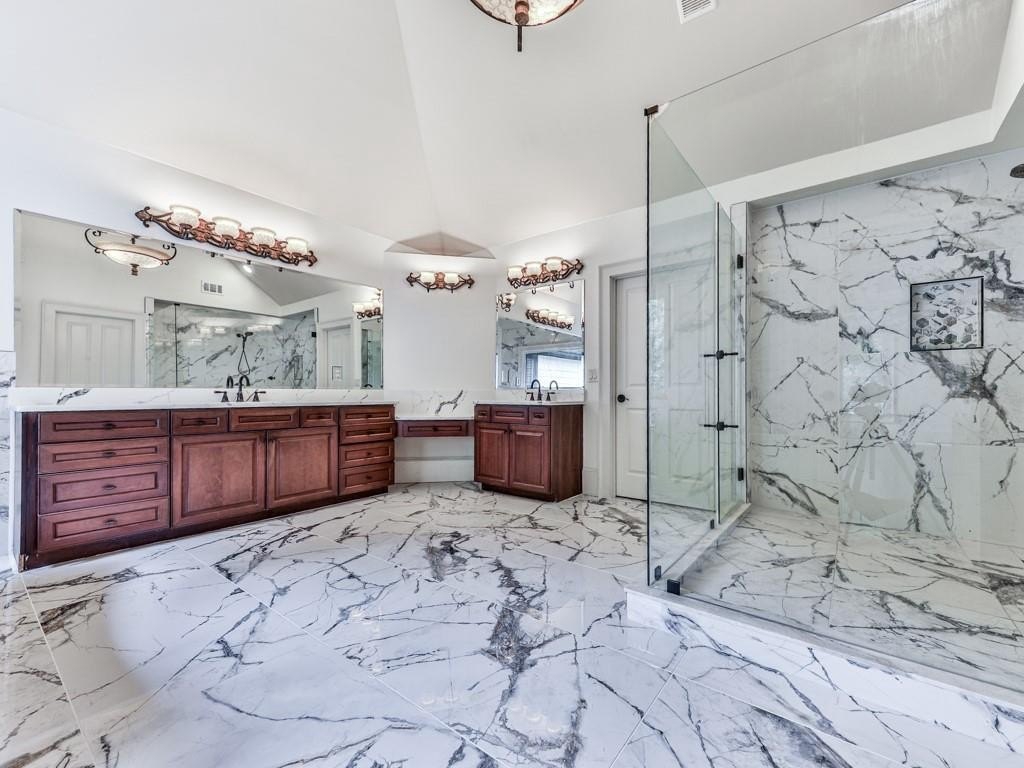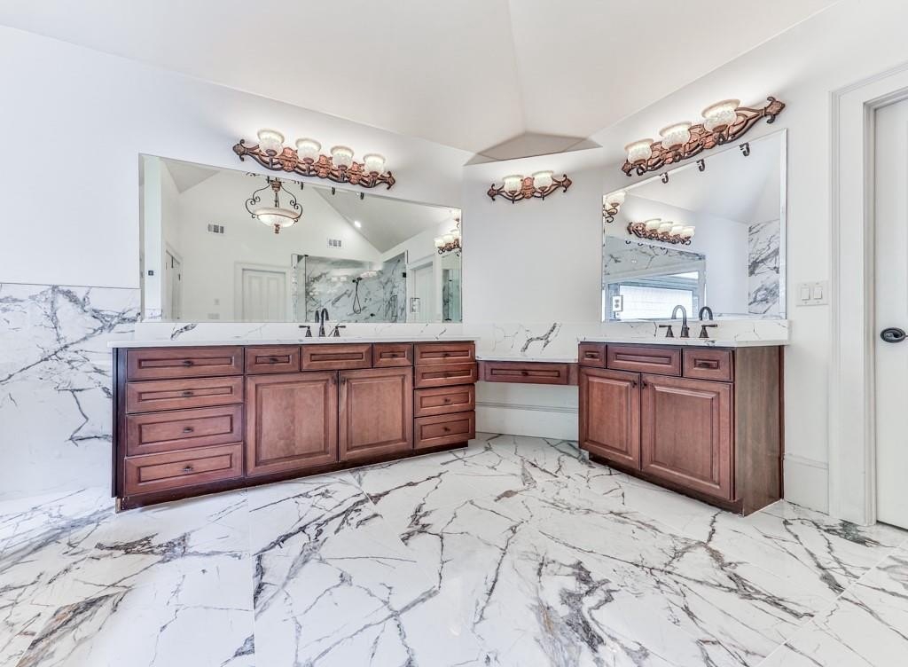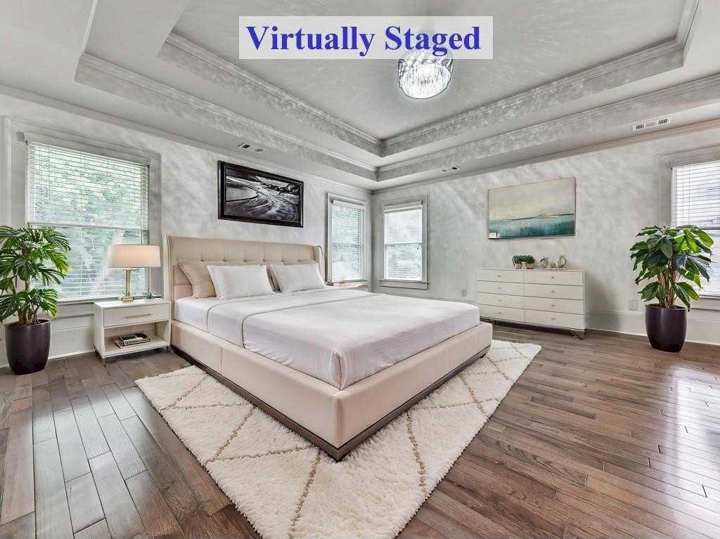 Moving upstairs we have the Spacious, Sunny Primary Bedroom which features a Double-Trey Ceiling with Double-Doors leading the the Main Bathroom. The Main Bathroom is truly a 'Work Of Art' with Marble Like Tiles covering the floor and some walls, an over-sized Main Vanity and 2nd Vanity, Huge Glass Enclosed Shower, Free Standing Soaking Tub, and ornamental lighting. And off the Main Bedroom is a GIGANTIC Walk-In Closet (approx. 17' x 20') with a California Style Shelving and it's own private area for a 2nd Laundry! WOW! WOW! WOW! Completing the Upper Level are the 3rd, 4th and 5th Bedrooms, plus another 2-Full Bathrooms, one of which is on-suite off one of those Bedrooms. This Home Packs Punches Galore!