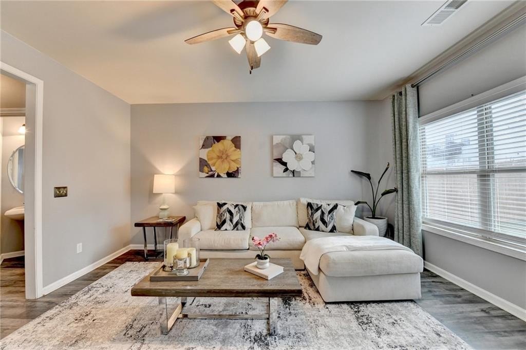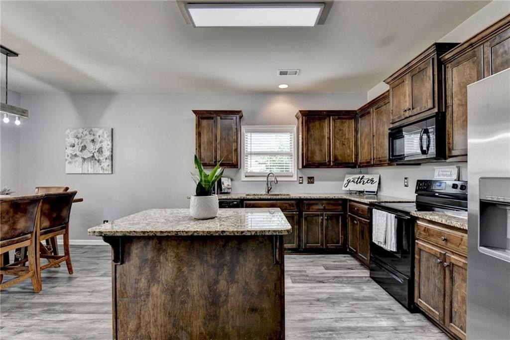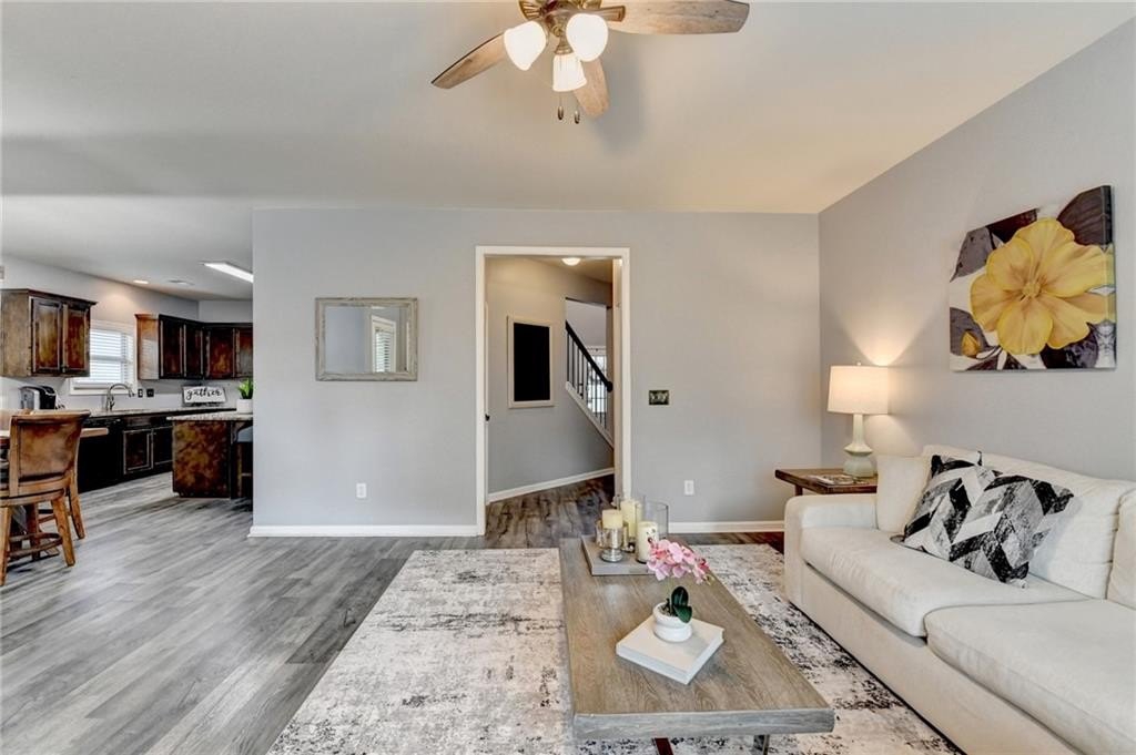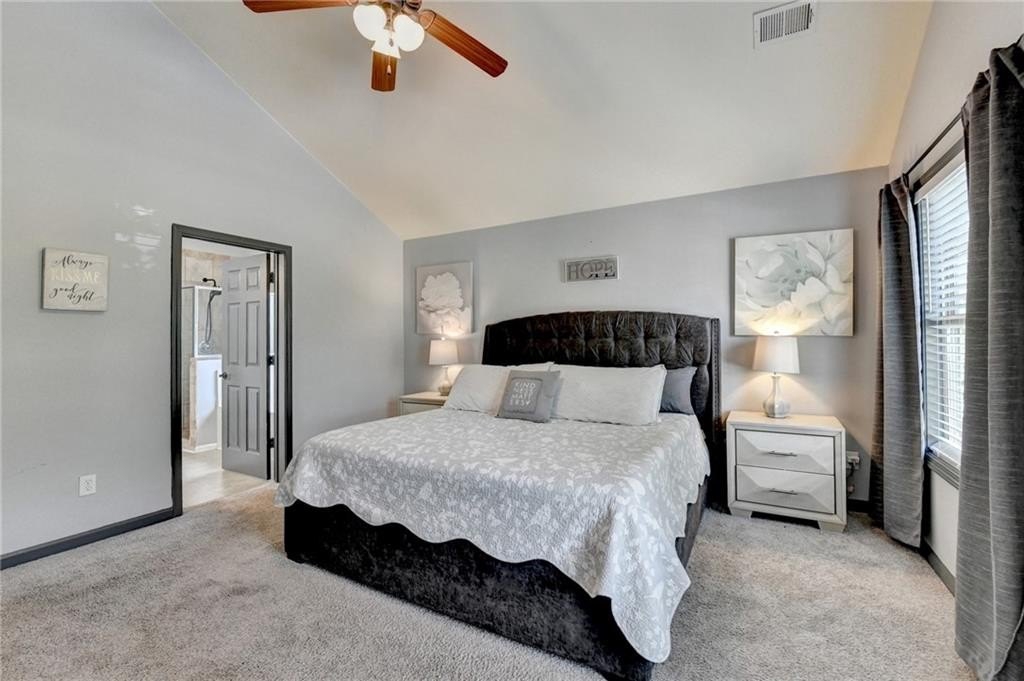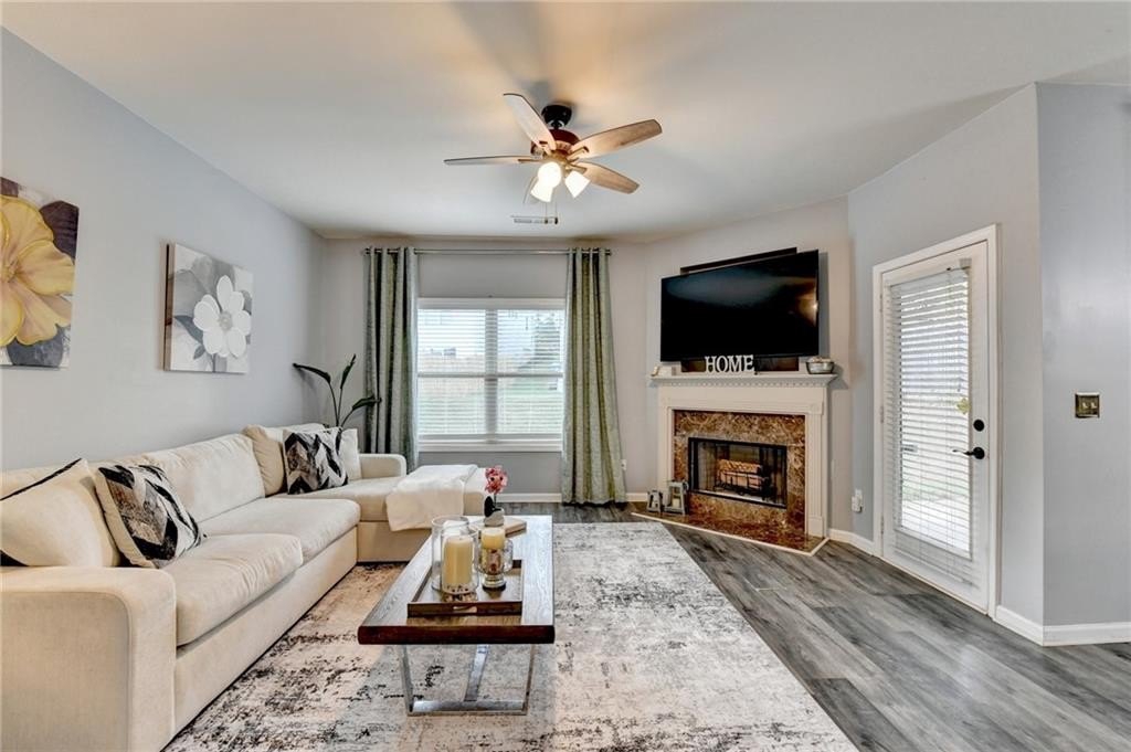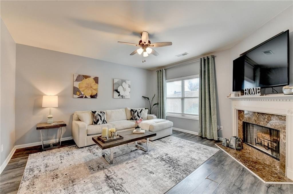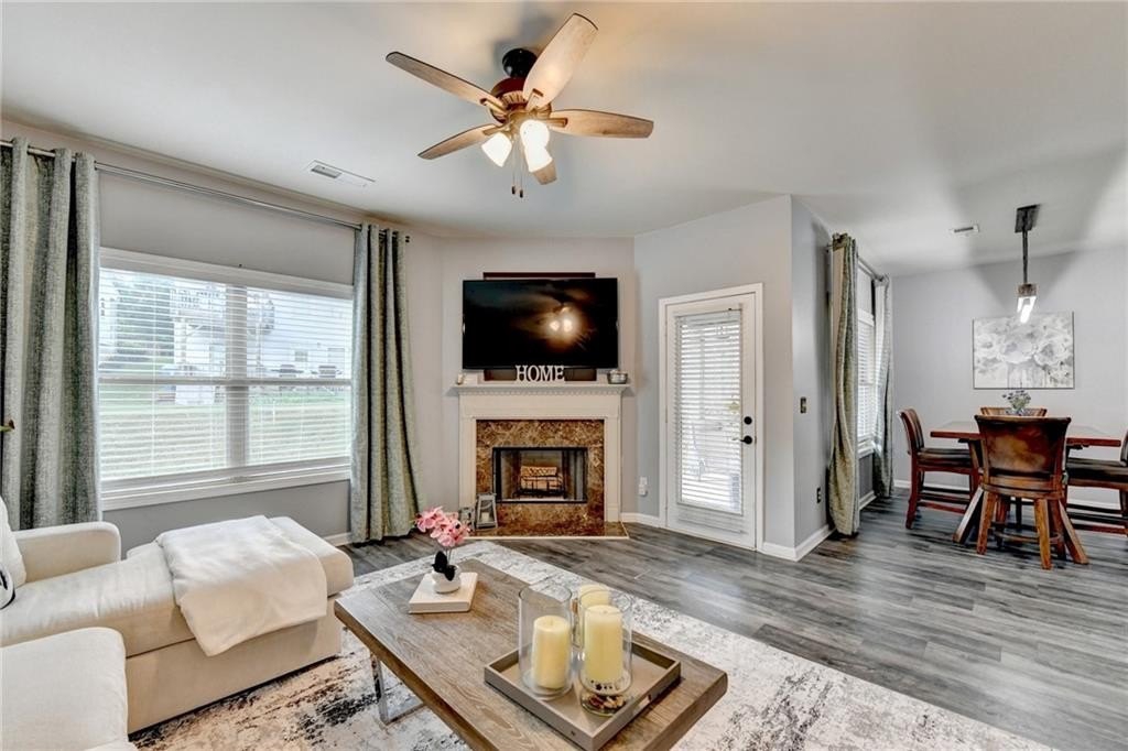 Charming 3-Bedroom 2.5 bath Home. Features a Two-Story Foyer, a Spacious Living Room with a Corner Wood Burning FIREPLACE, that Overlooks the Breakfast Area. The KITCHEN has GRANITE COUNTERTOPS, Lots of Cabinets for Storage, Black Appliances that Look Fabulous with the Cabinets and a BEAUTIFUL ISLAND. On the Upper Level is the Owner's Suite with a DOUBLE VANITY, SEPARATE SHOWER, GARDEN TUB and a Large CUSTOM WALK-IN CLOSET. The Two Secondary Rooms are Spacious. Extra Room with the Handy LOFT that can be used as an OFFICE SPACE or GAMING AREA. The Laundry Room is Conveniently Located on the Second Floor. Enjoy Family Entertainment on your Covered Patio. Backyard Big Enough for Family Entertainment and Kids Activities or a Garden. LOCATION, LOCATION, LOCATION! Home is Within Walking Distance to Community Resort Style Amenities including a Large Pool, Lighted Tennis Court, Playground and Clubhouse. Home is near Hwy 316, easy access to the mall of GA, Shopping center, and restaurants, this home blends comfort, convenience, and community appeal. Don't miss this exceptional opportunity!*** Professional photos to come ***