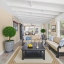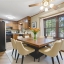 The kitchen offers solid wood cabinetry, black appliances, herringbone flooring, and a sunlit eat-in area with ceiling fans. Adjacent to the family room is a beautiful sunroom with abundant natural light, overlooking the backyard and pool area—ideal for entertaining or unwinding.