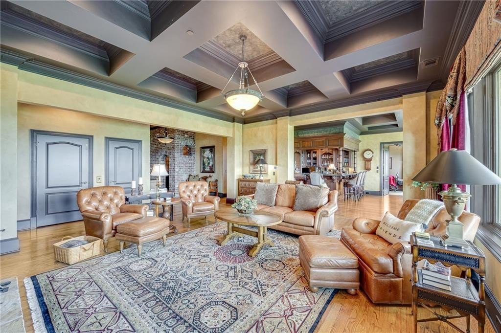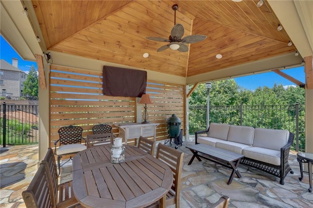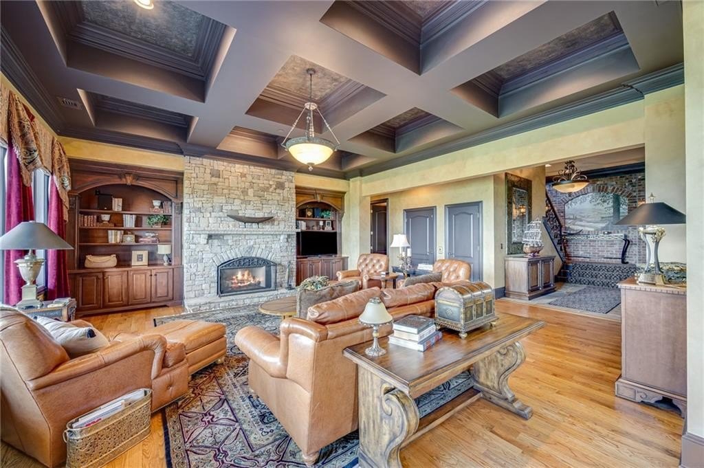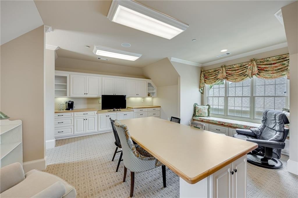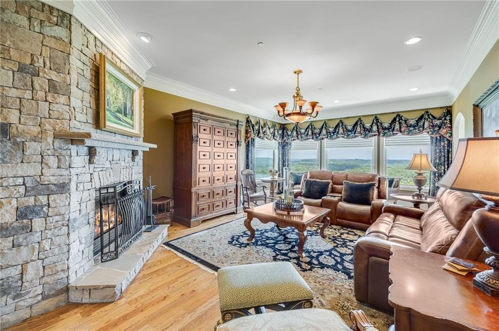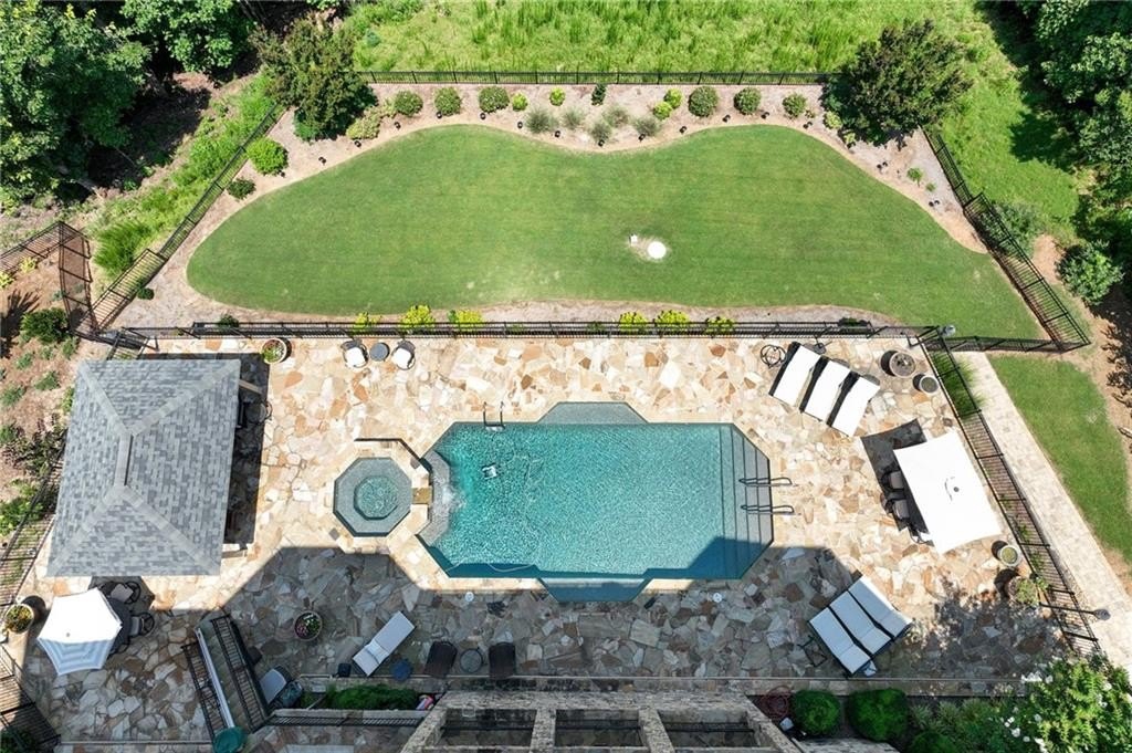 Harbour Point Yacht Club and Marina! A rare opportunity to own a truly exceptional Lake Lanier estate, offered fully furnished with elegant, high-end pieces and ideally positioned on one of the most desirable lots on the lake. Located within the prestigious, gated Harbour Point Yacht Club and Marina community, this custom-built home showcases sweeping sunset views over Lake Lanier and the Blue Ridge Mountains from three expansive verandas. Designed with both luxury and lifestyle in mind, this four-level estate features an elevator, two home offices, and a heated pool and spa. A deeded boat slip is included, offering seamless access to lakefront living. The main level welcomes you with a grand two-story foyer and living room, formal study, and refined dining room. A brand-new custom chef's kitchen is outfitted with a 60" Wolf range with double ovens, Sub-Zero refrigerator, Miele coffee station, and an oversized walk-in pantry. The cozy keeping room features a stone fireplace, and the spacious primary suite includes a spa-like bath and newly designed California Closets. The terrace level is an entertainer's dream, complete with a wine cellar and tasting room, full kitchen and bar, gathering room with fireplace, 10-seat home theater, steam shower, sauna, and private guest suite. The lower poolside level adds even more space for entertaining with a second full kitchen, additional ensuite, gathering room, game room, and fitness room-all opening to the pool and landscaped, fenced backyard. Additional features include a three-car garage plus a dedicated Harley garage, a newly resurfaced pool with cabana, and numerous recent upgrades including a Crestron Smart Home system, updated irrigation, fire sprinkler and security systems, and tankless hot water.
