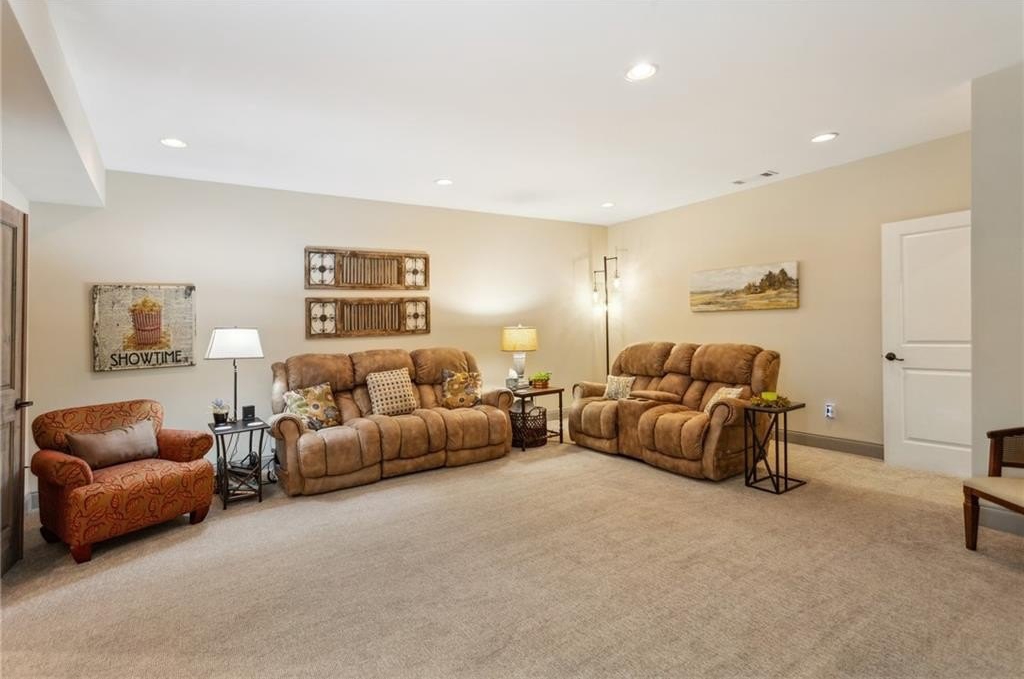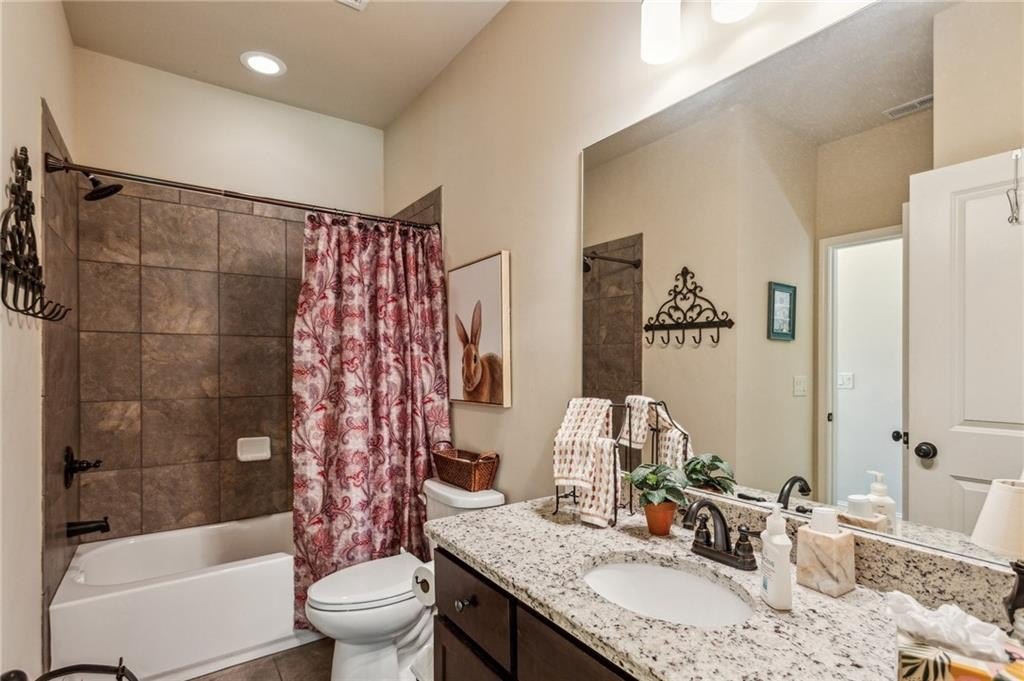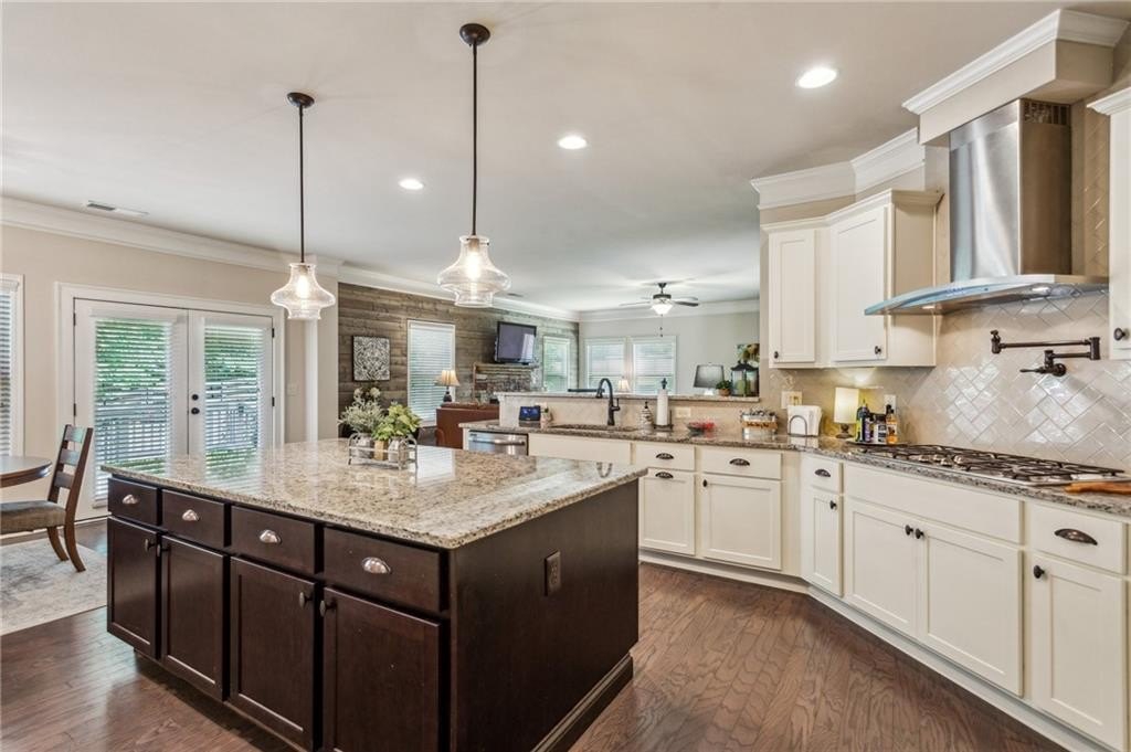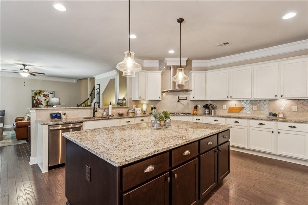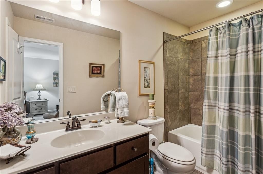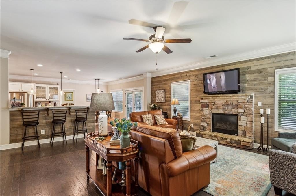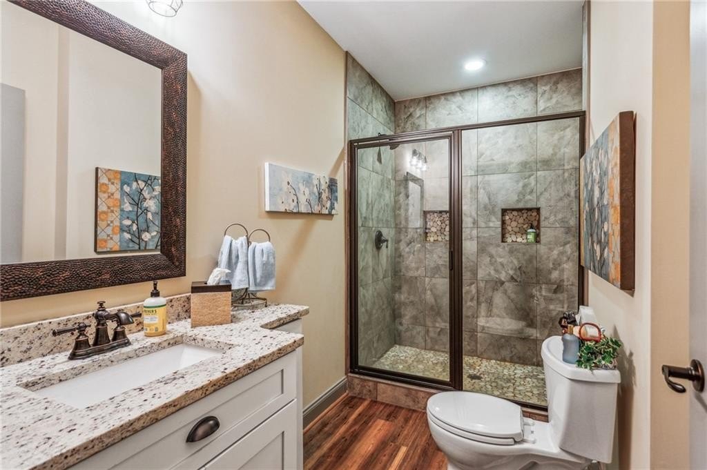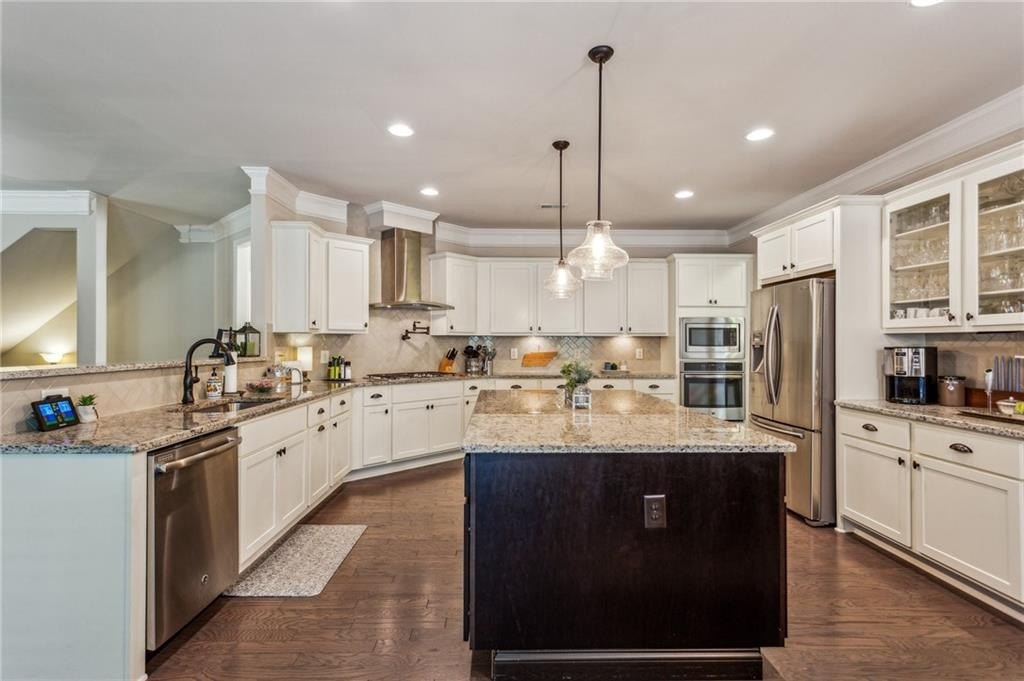 Welcome to this Upgraded and Impeccably Maintained home nestled behind the gate and tucked back in a quiet cul-de-sac, offering the perfect blend of privacy, elegance, comfort, and functionality. The finish quality here on all three levels will be hard to beat! Step inside to discover an open-concept layout filled with natural light. At the center of it all is a chef’s kitchen designed to inspire. Crisp white shaker cabinets accented with oil-rubbed bronze hardware pair beautifully with warm granite counters and a striking dark-stained island - a perfect gathering place for morning coffee or evening wine with friends. Stainless steel appliances, 5-burner gas cooktop, stainless vent hood and French-door refrigerator make entertaining a joy. A herringbone tile backsplash and pot-filler faucet add both elegance and function, while glass pendant lights cast a warm glow over the workspaces. Hardwood floors tie it all together, leading seamlessly into the open family room which boasts a cozy stone fireplace and wood accent wall, creating a warm and inviting atmosphere. There is also a Main Level Guest Room, separate Dining Room AND Study. Upstairs, the owner’s suite feels like its own private haven. A place to unwind in the sitting area or soak in the spa-inspired bathroom after a long day. Also features separate shower, dual vanities and ample closet space. Not to worry, there’s plenty of room for everyone else to retreat and recharge. The secondary bedrooms are equally spacious and offer plenty of flexibility. The finished basement is an inviting extension of the home as main-floor quality was maintained throughout. With its spacious layout, rustic barn doors, and warm tones, it’s perfect for movie nights, game tournaments, or even hosting holiday dinners in style. Outside, enjoy a private, fenced backyard that backs to trees OR ease down to the covered patio off the lower level that is perfect for watching football in the fall with a view of the cozy fire pit area. This home truly has it all—inside and out!
