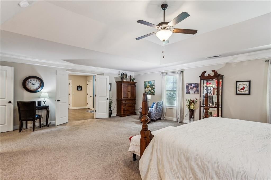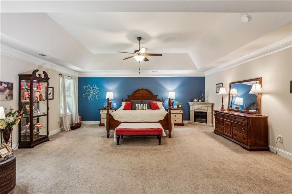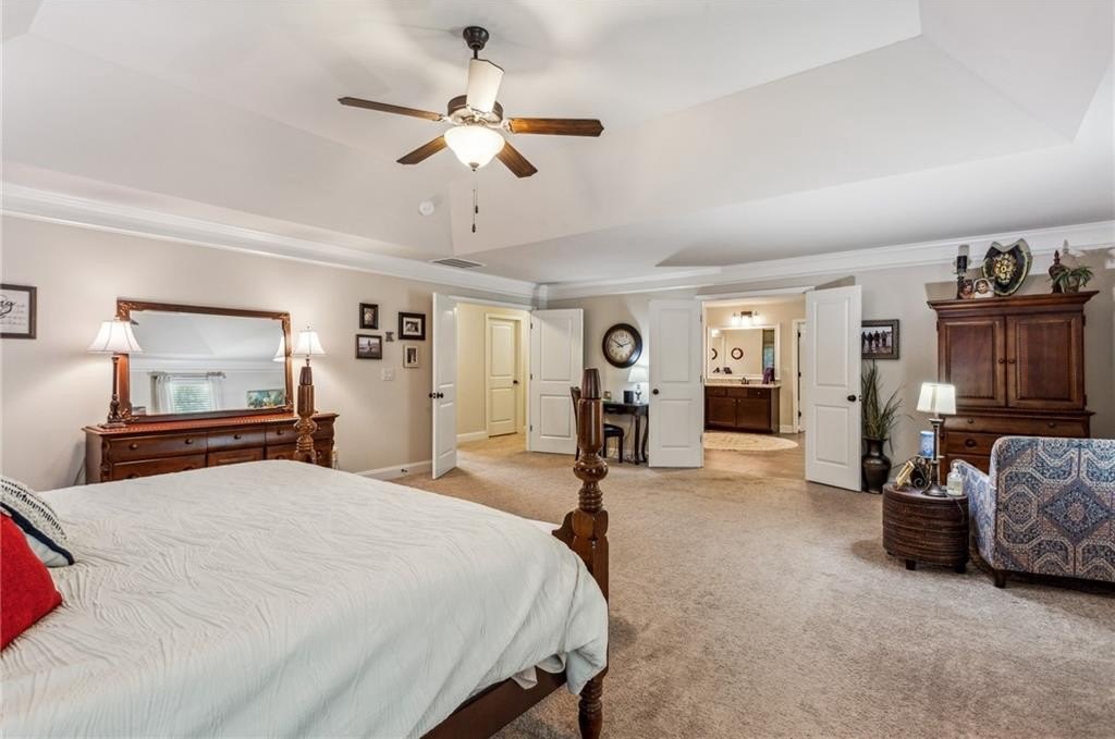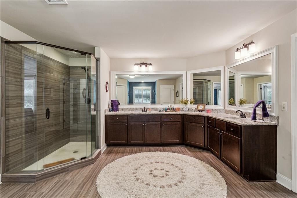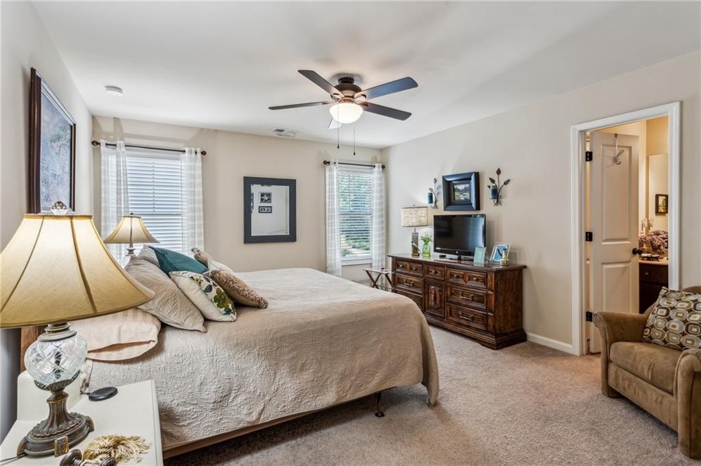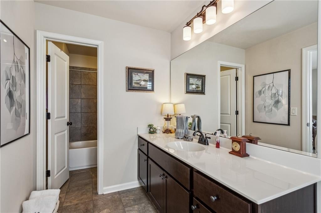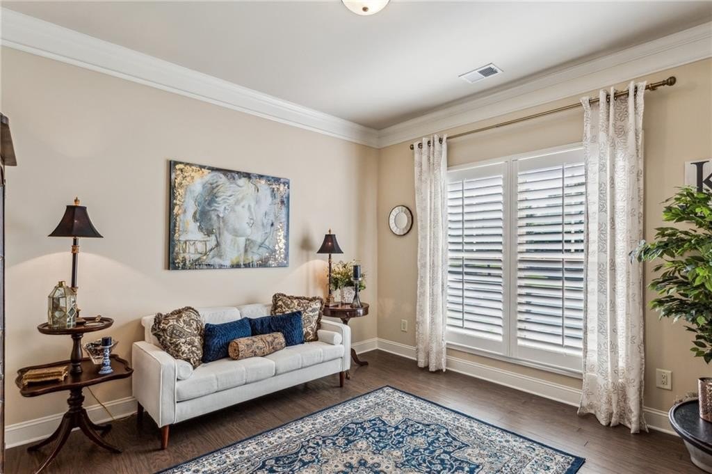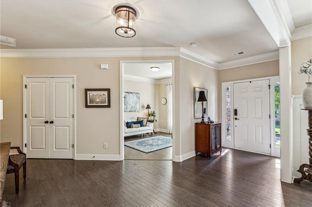 Welcome to this Upgraded and Impeccably Maintained home nestled behind the gate and tucked back in a quiet cul-de-sac, offering the perfect blend of privacy, elegance, comfort, and functionality. The finish quality here on all three levels will be hard to beat! Step inside to discover an open-concept layout filled with natural light. At the center of it all is a chef’s kitchen designed to inspire. Crisp white shaker cabinets accented with oil-rubbed bronze hardware pair beautifully with warm granite counters and a striking dark-stained island - a perfect gathering place for morning coffee or evening wine with friends. Stainless steel appliances, 5-burner gas cooktop, stainless vent hood and French-door refrigerator make entertaining a joy. A herringbone tile backsplash and pot-filler faucet add both elegance and function, while glass pendant lights cast a warm glow over the workspaces. Hardwood floors tie it all together, leading seamlessly into the open family room which boasts a cozy stone fireplace and wood accent wall, creating a warm and inviting atmosphere. There is also a Main Level Guest Room, separate Dining Room AND Study. Upstairs, the owner’s suite feels like its own private haven. A place to unwind in the sitting area or soak in the spa-inspired bathroom after a long day. Also features separate shower, dual vanities and ample closet space. Not to worry, there’s plenty of room for everyone else to retreat and recharge. The secondary bedrooms are equally spacious and offer plenty of flexibility. The finished basement is an inviting extension of the home as main-floor quality was maintained throughout. With its spacious layout, rustic barn doors, and warm tones, it’s perfect for movie nights, game tournaments, or even hosting holiday dinners in style. Outside, enjoy a private, fenced backyard that backs to trees OR ease down to the covered patio off the lower level that is perfect for watching football in the fall with a view of the cozy fire pit area. This home truly has it all—inside and out!