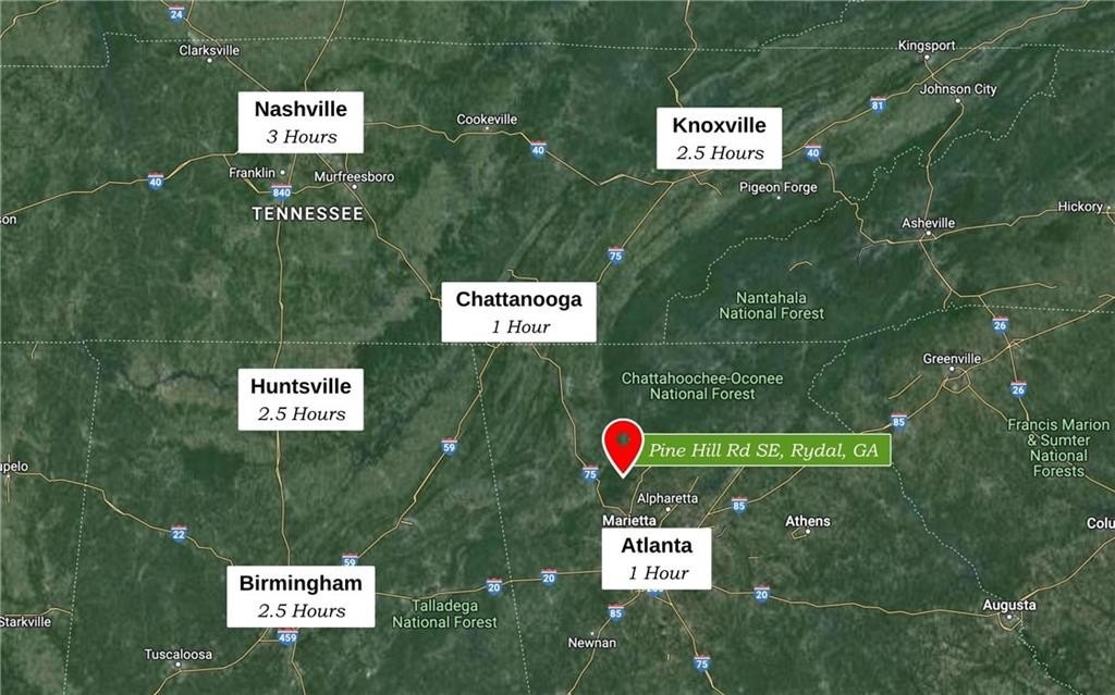 116.93 +/- ACRES of beautiful, wooded land in middle Georgia! Rare opportunity to own a large tract in a charming location, conveniently situated between Atlanta and Chattanooga. Surrounded by attractive farmsteads and countryside cabins, this property features approximately 275 feet of ROAD FRONTAGE on Pine Hill Rd SE. Adorned with mature woodlands, level to rolling topography, and frontage along Cedar CREEK and Big Branch Creek. This 11 parcel property has ELECTRICITY available and A-1 Agricultural ZONING. Enjoy HOBBIES like hunting (deer, turkey, small game), fishing, or relaxing to the peaceful ambiance of creekside living. Convenient to local schools, churches, and dining. Whether you're looking to build your dream homestead, private estate, stunning subdivision, or simply enjoy nature, this property offers beautiful potential. LOCATION: 12 minutes from Hwy 411, 13 minutes from I-75, and within easy reach of Adairsville, Calhoun, Cartersville, Dalton, and Rome. Nearby attractions include The Rock Gardens, Fields Ferry Golf Club, and Cooper Creek Farm—all while being 1 hour from both Chattanooga and Atlanta. Rural charm, privacy, and convenience await... Schedule a private showing today! (Any and all property lines on photos are simulated and are approximate. Buyer is responsible to do their due diligence to verify that all information is correct, accurate and for obtaining any and all restrictions for the property deemed important to Buyer.)