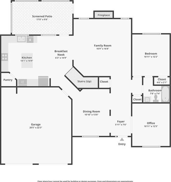 Beautifully maintained home with great curb appeal, nestled in a quiet cul-de-sac in the desired Del Mar Club Community. Step into a 2-story foyer with crown molding throughout and arched entryways leading to elegant living spaces. A designated office with privacy for remote work, while the formal dining room features coffered ceilings for added sophistication. The open-concept kitchen flows seamlessly into the family room and includes granite countertops, a kitchen island with seating, walk-in pantry, and space for a breakfast table. Enjoy direct access to the screened patio, perfect for indoor-outdoor living. The family room offers a brick fireplace and coffered ceilings, bringing warmth and charm to the heart of the home.