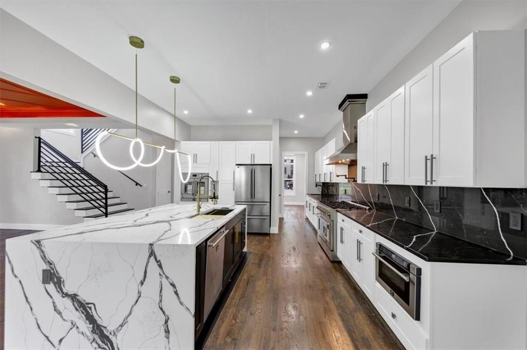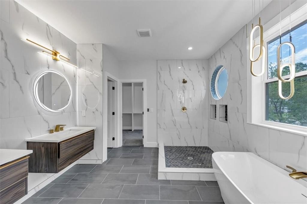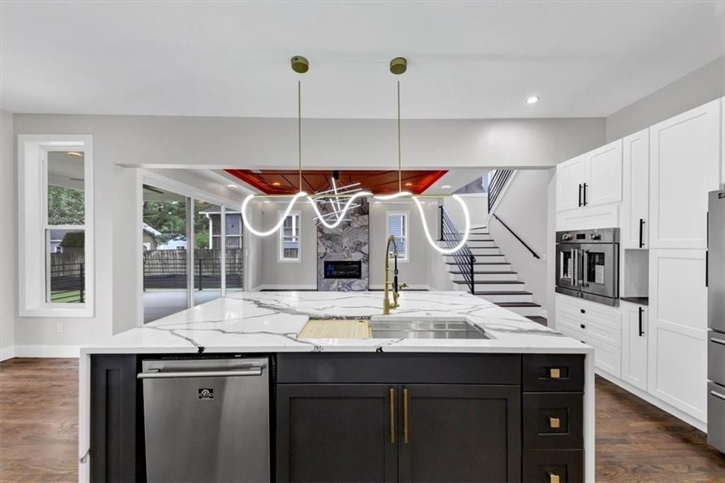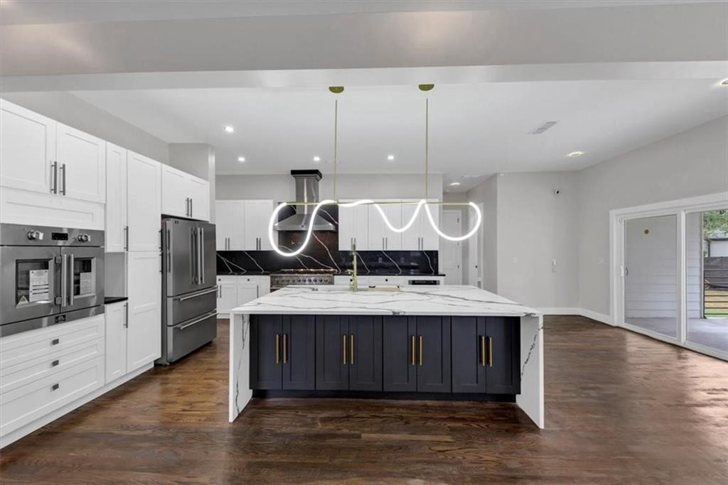 Step into exceptional design and peak luxury with this custom new construction modern farmhouse by Khari Custom Homes featuring Smart Home upgrades in one of Atlanta’s most sought-after locations. Offering 5 bedrooms, 4.5 bathrooms, and two levels of spacious living, this home is designed for both comfort and high-end entertaining. This exquisite residence boasts three master suites, including one on the main level with a full bathroom and two additional master suites upstairs. The open floor plan is flooded with natural light and welcomes you with a grand two-story foyer, separate formal living/office, and elegant dining room. 10 ft. ceilings on the main level with 8 ft. doors. The chef’s dream kitchen is a showstopper, complete with smart appliances, kitchen island, stone countertops, a deep sink, LED under-cabinet lighting, and striking black & gold accents, walk in pantry. The kitchen flows seamlessly into the family room with a cozy fireplace and a keeping room overlooking a covered patio and large private backyard—ideal for entertaining. The upper level features four spacious ensuite bedrooms, three full bathrooms, and a large media/bonus room that can be used as the 6 bedroom, perfect for a home theater, office, or additional indoor recreation. The luxurious owner’s suite offers a private retreat with a huge custom California-style closet, double vanities, a walk-in frameless shower, and an elegant soaking tub. Designed for modern convenience, this home includes laundry rooms on both levels and stunning walnut hardwood floors throughout. Situated on a large corner lot with no HOA, the exterior is just as impressive as the interior, offering masterfully crafted finishes, raised back porch with the patio and pergola. Security system. Located just minutes from the Atlanta BeltLine, Mercedes-Benz Stadium, Georgia Aquarium, Coca-Cola Museum, public library, golf course and top downtown entertainment & dining, this home is at the center of it all. Easy access to I-20, Marta, and less than 20 minutes from Hartsfield-Jackson International Airport and Stone Mountain park. Experience the perfect blend of sophistication, elegance, and functionality. This is a rare opportunity to own a one-of-a-kind luxury home in the heart of Atlanta.