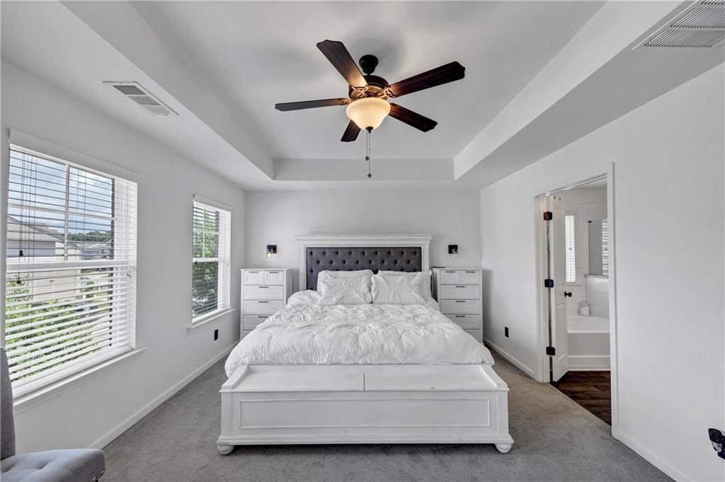 Upstairs, the primary suite serves as a true sanctuary, completed with an elegant tray ceiling and a generous walk-in closet. A master bathroom include double vanity, soaking tub, and a separate shower. The two additional bedrooms are situated away from the primary bedroom. A laundry room is thoughtfully located on the second floor. The property includes an unfinished walk-out basement, presenting endless possibilities for customization. A standout feature of this house is its private backyard.