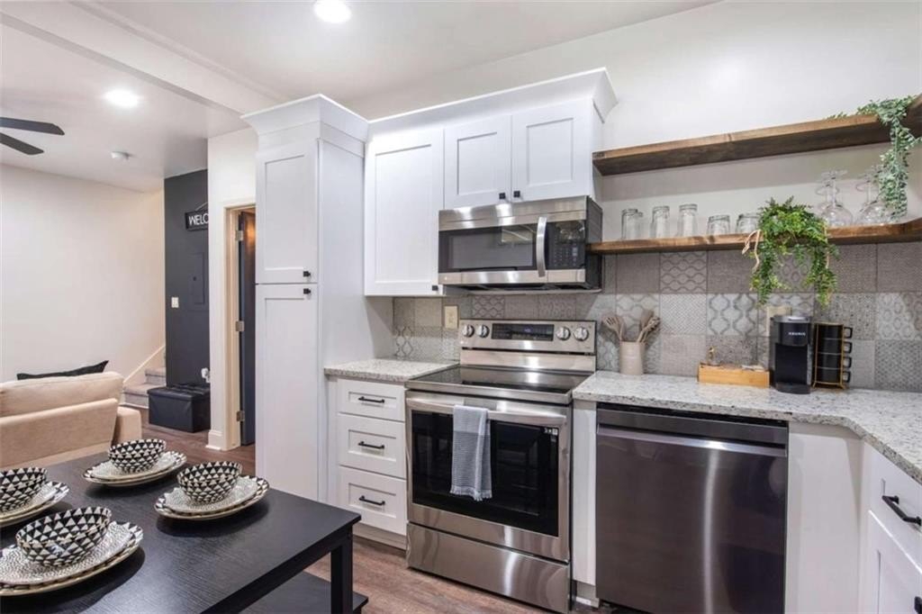 Two renovated homes for the price of one!!! Exceptional rare investment opportunity in this one of a kind home with a detached two-story guesthouse in the booming Upper Westside neighborhood of Grove Park in the heart of Atlanta. As you enter the main house you're greeted with the light-filled foyer that extends to the spacious hallway. On the left is the spacious living room that offers plenty of room for both relaxation and entertaining. At the heart of the room is a stunning fireplace designed to add a touch of elegance and warmth. The skylights allow natural lighting to flood in highlighting the room's features and creating a bright, welcoming atmosphere. It's the perfect spot for gatherings or quiet movie nights. Across from the living room you'll find a stunning eat-in, gourment kitchen featuring granite countertops and stainless steel appliances that offer both style and functionality. The beautiful island is perfect for meal prep or casual gatherings. This kitchen is designed to be the perfect hub for family and friends to come together. The primary bedroom is also on the main level and offers a luxurious retreat with a fireplace and spa-like bathroom while the additional bedrooms provides flexible options for guests, home offices, or hobbies. The partial basement is finished with full bathroom and oversized bedroom which can easily be a theater or recreational room. The climate-controlled sunroom is perfect for enjoying morning coffee or relaxing in the evenings. Step outside the sunroom and into the serene and luxurious guesthouse that features 3 bedrooms and 2 full bathrooms. The living room opens to the kitchen which features granite countertops and stainless steel appliances. The primary bedroom is on the main level while the other two bedrooms are upstairs where you'll find a private balcony perfect for watching the sunrise and sunset. Both houses have tons of upgrades including tiled showers, LVP flooring throughout, and much more! Minutes from downtown, Westside Park, and Beltline West Side. This property is perfect for renting, multigenerational living, or live in one and rent the other. The possibilities are endless! Both homes are currently generating excellent income on Airbnb.