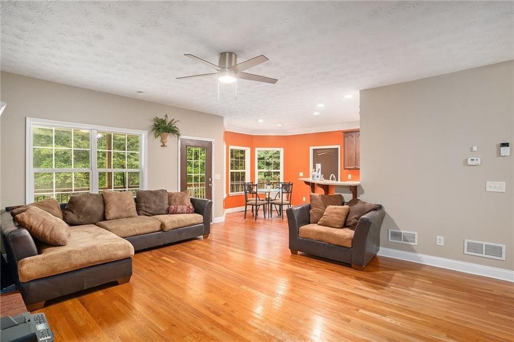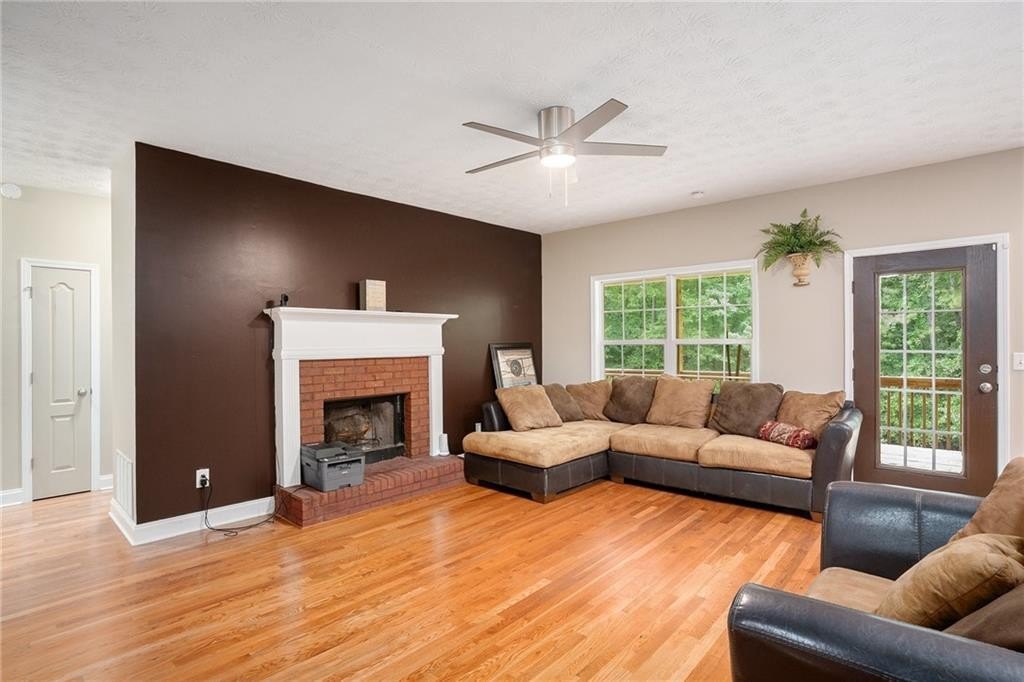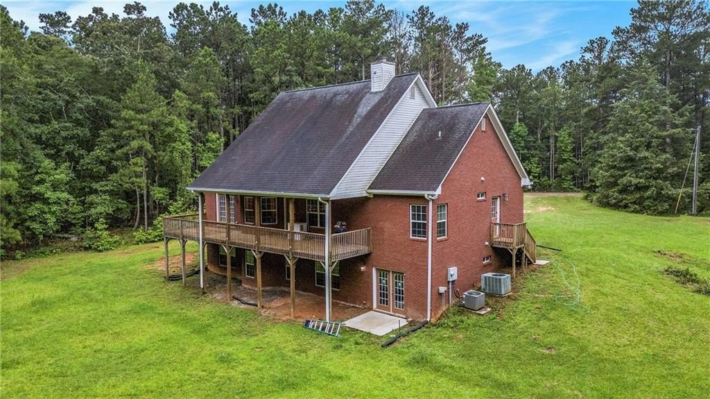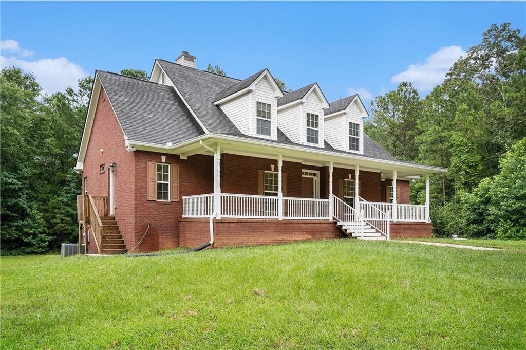 Welcome to this stunning 4-sided brick home offering living space and nestled on 3.98 private, lush acres. This beautifully maintained residence is packed with charm, functionality, and room to grow! Enjoy peaceful mornings or evening gatherings on the inviting rocking chair front porch or entertain with ease on the expansive back deck, featuring both covered and open areas that overlook a serene backyard. Inside, the home boasts 4 bedrooms, 2 full bathrooms, and a spacious loft perfect for family fun or a flex space. The main level showcases gleaming hardwood floors and a modern kitchen equipped with Corian countertops, stainless steel appliances (all included), a large pantry, a breakfast area, and a separate formal dining room. The cozy family room features a wood-burning fireplace and direct access to the covered back deck. Retreat to the oversized master suite with its own private deck access, a spa-like bath with dual vanities, soaking tub, separate shower, and generous walk-in closets. Two additional main-level bedrooms are spacious and share a full hall bath. A dedicated laundry room offers a washer, dryer, sink, and ample cabinetry. Upstairs, the massive loft, additional bedroom, and office area provide flexibility for a growing household or work-from-home needs. Need more space? The full unfinished basement is stubbed for a bathroom and offers endless possibilities, game room, home theater, extra bedrooms, or an in-law suite. A huge storage shed is also included to accommodate all your outdoor equipment and toys. The home is fully electric except for the propane-powered stove efficient with a tank fill costing approximately $250 and lasting 5 to 8 years. With NO HOA and tons of space for trucks, cars, and recreational vehicles, this property is perfect for those seeking comfort, privacy, and freedom. Located just minutes from schools, shopping, dining and expressways. This home truly has it all. Come and make this house your home. Schedule your showing today!