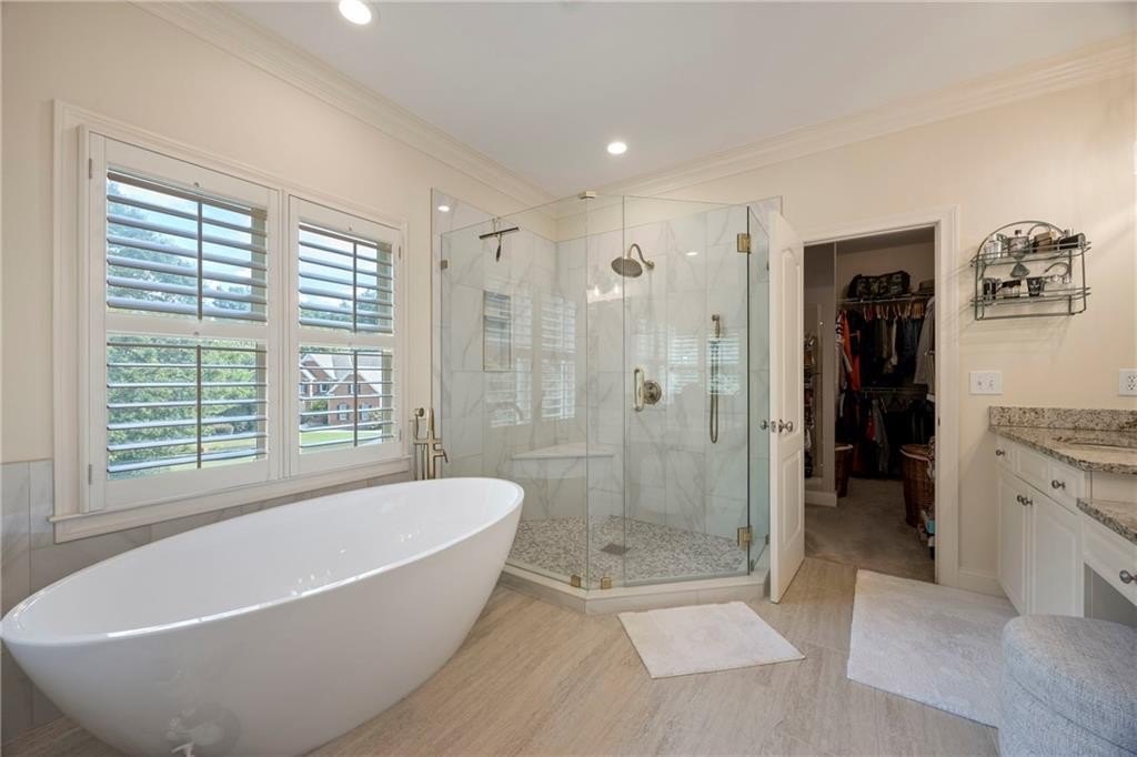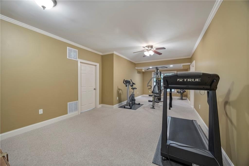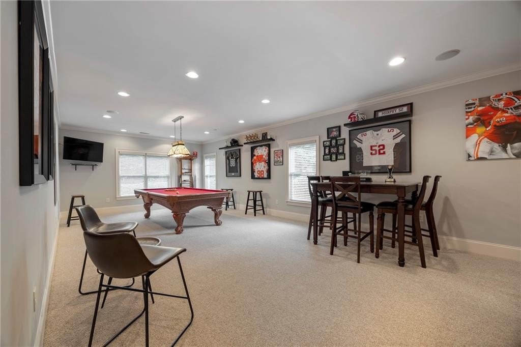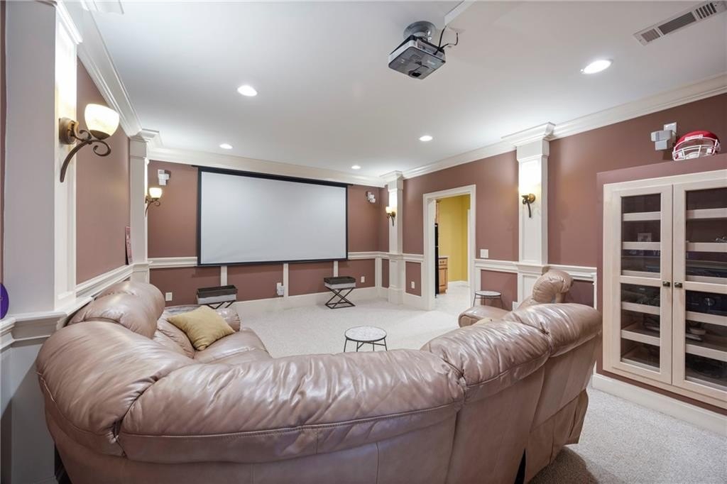 ***FULL FINISHED BASEMENT "THE MAN CAVE" This basement is an entertainer's dream. Media Room, Exercise Room, Sitting room with fireplace, Game room with BAR, Full KITCHEN, Bonus room, Full bath with shower tub combination, and Utility room. The basement features heavy crown moulding throughout. Coffered ceiling in the sitting area with a stone gas fireplace. Leads to the terrace level patio. The gaming room is large enough for any sized gaming table. Bar with sink, counter refrigerator and ice maker. Custom cabinets with granite countertops. Plenty storage for beverages and party favors. The media room is intimate with decadent trimming and surround sound system. The full kitchen is great for extra cooking space for the huge celebrations. More custom cabinets and storage galore!!! The bonus room has been used as a playroom and also as extra sleeping quarters for those extra guests. If you do not want to travel to the gym, there is plenty of space for workout equipment. The basement also has an oversized utility room to store all your lawn and utility work equipment.