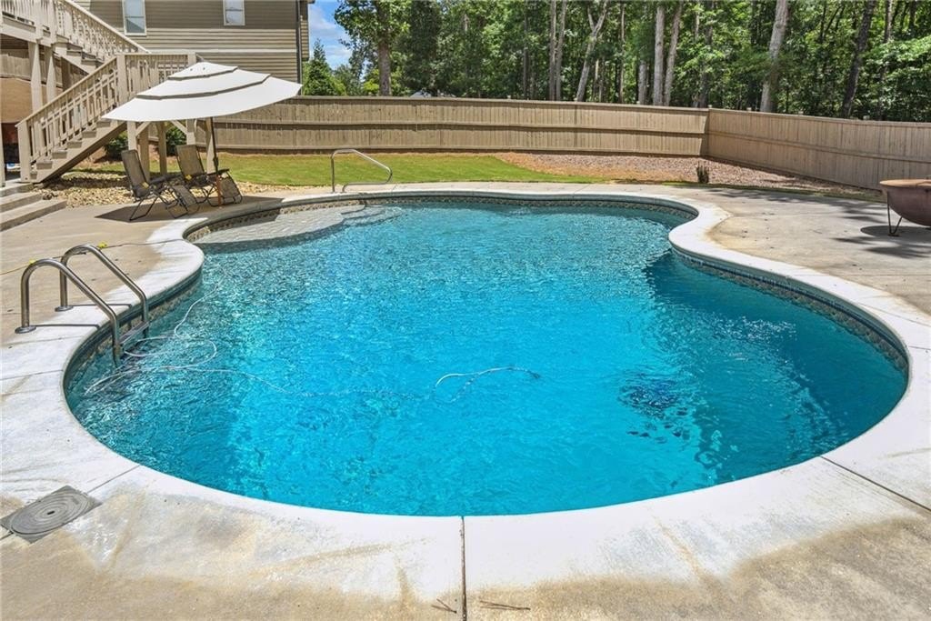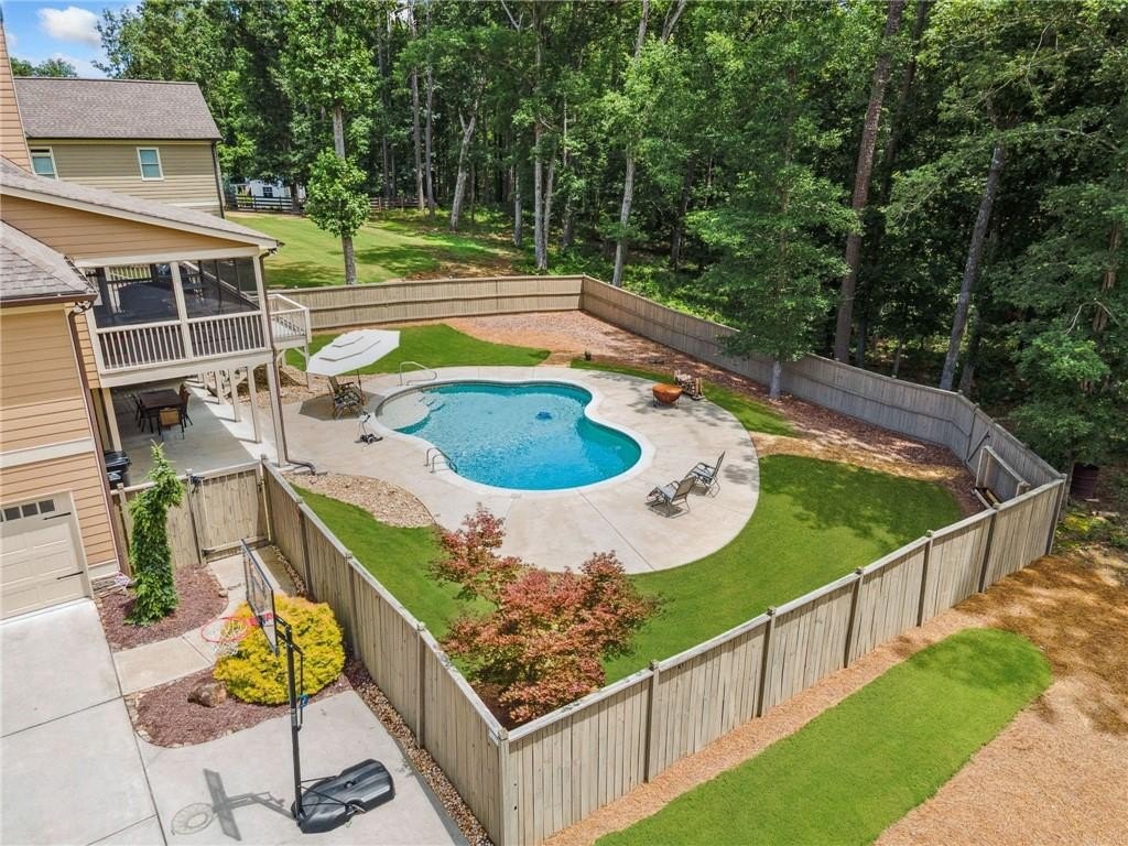 Check out this custom built ranch in Cherokee County! This home sits on a 1.16 acre lot and features a private, fenced back yard with a heated salt water pool (cover included for the months the pool is closed) and an open concept split bedroom floorplan with 3 bedrooms and two baths on the main level + a finished basement to include 2 bedrooms, a bathroom, a home gym and a rec room. The 3 car garage is extra deep and offers ample space for parking and storage! Throughout you will see many upgrades such as coffered ceilings in the family room, a stone fireplace, an eat-in kitchen with granite countertops and stainless-steel appliances, hardwood floors throughout the main level and basement, tile flooring in all bathrooms and the laundry room, a double trey ceiling in the master bedroom, a large walk-in closet with custom shelving, a large tile shower in the master bath with double shower heads and a bench, plantation shutters throughout, an alarm system, tongue and groove ceilings on the front and back porches, a large screened-in back porch and grilling deck over looking the pool, an irrigation system in the front and side yards and so much more. This home has been extremely well cared for a meticulously maintained. This location sits right between Canton and Cartersville, offering easy access to both I-575 and 75, as well as Lake Allatoona.