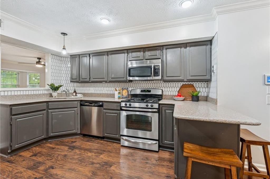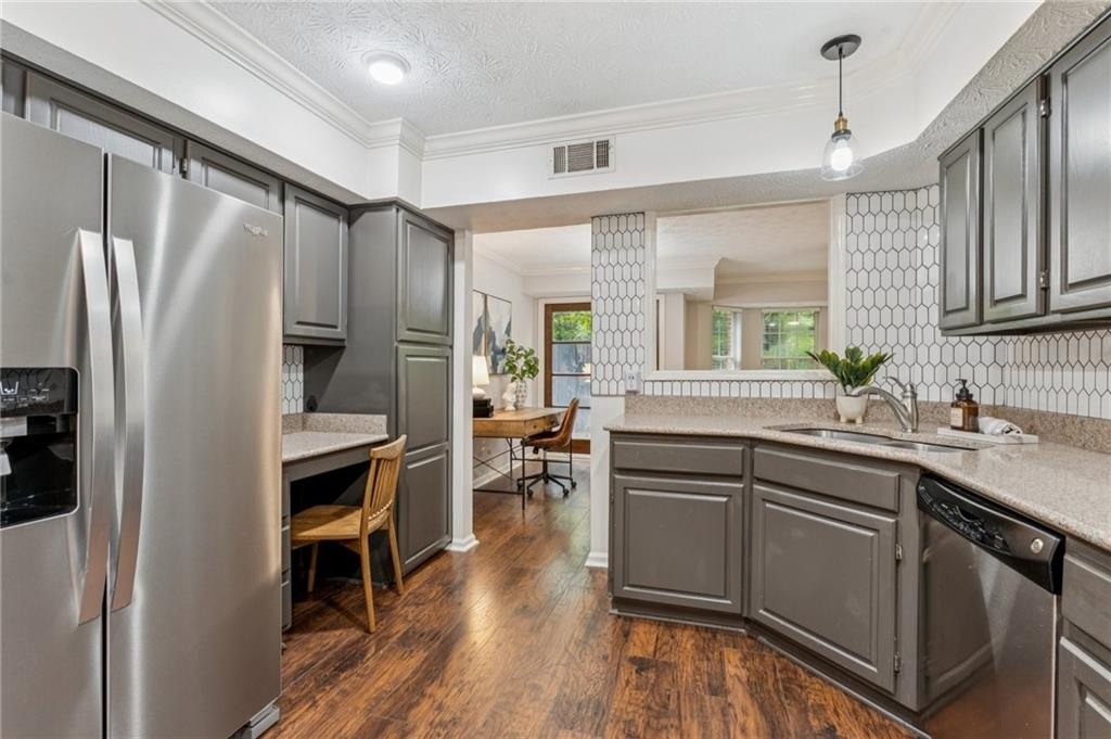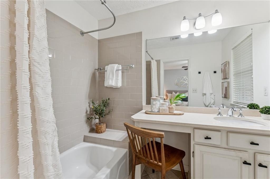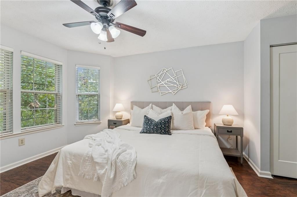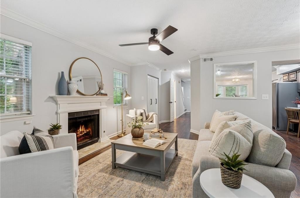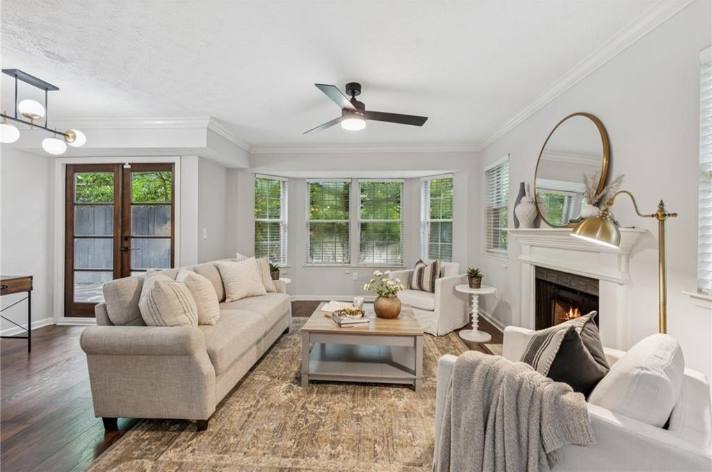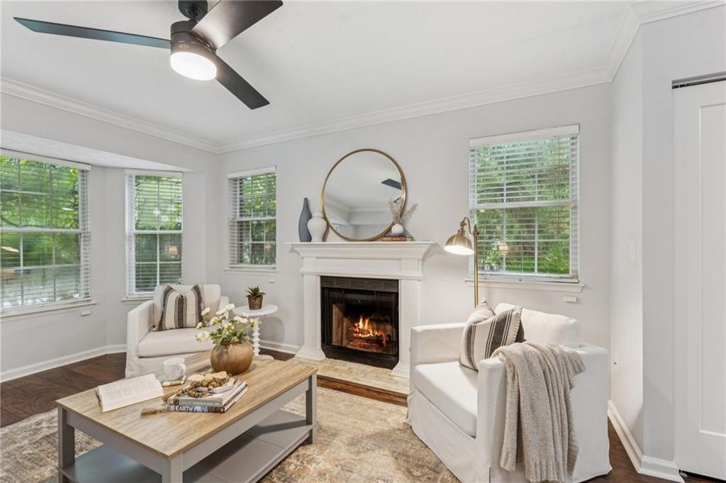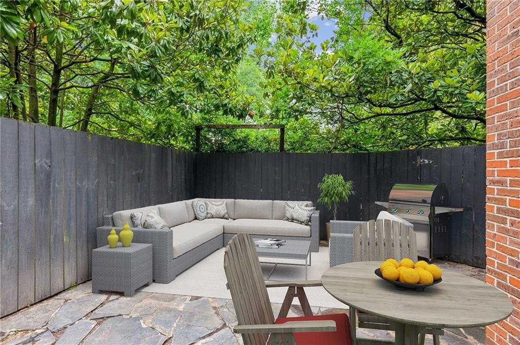 Rare 3BR/2.5BA end-unit townhome in highly sought-after Swanton Hill, ideally located on a quiet cul-de-sac just steps from Adair Park and the vibrant shops, dining, and entertainment of downtown Decatur. This beautifully updated, move-in-ready home features newer hardwood floors throughout, fresh interior paint, and modern lighting. The kitchen offers granite countertops, stainless steel appliances, tile backsplash, a cozy breakfast nook, and a charming window seat. The open-concept main level includes a spacious living and dining area with a fireplace and French doors that open to a private, enclosed patio - perfect for relaxing or entertaining. Upstairs, the oversized primary suite boasts dual closets and an en-suite bath. Two additional bedrooms share a fully renovated hall bathroom with new tile flooring, a double vanity with vessel sinks, and updated fixtures. Additional highlights include a one-car garage with extra storage potential, plus an extended driveway that accommodates two vehicles. Swanton Hill is a beautifully landscaped 8-acre community featuring a swimming pool, tennis courts, community garden, and direct access to Adair Park with a playground and dog park. Zoned for top-rated City of Decatur schools, this rare opportunity offers a low-maintenance lifestyle in an unbeatable location.