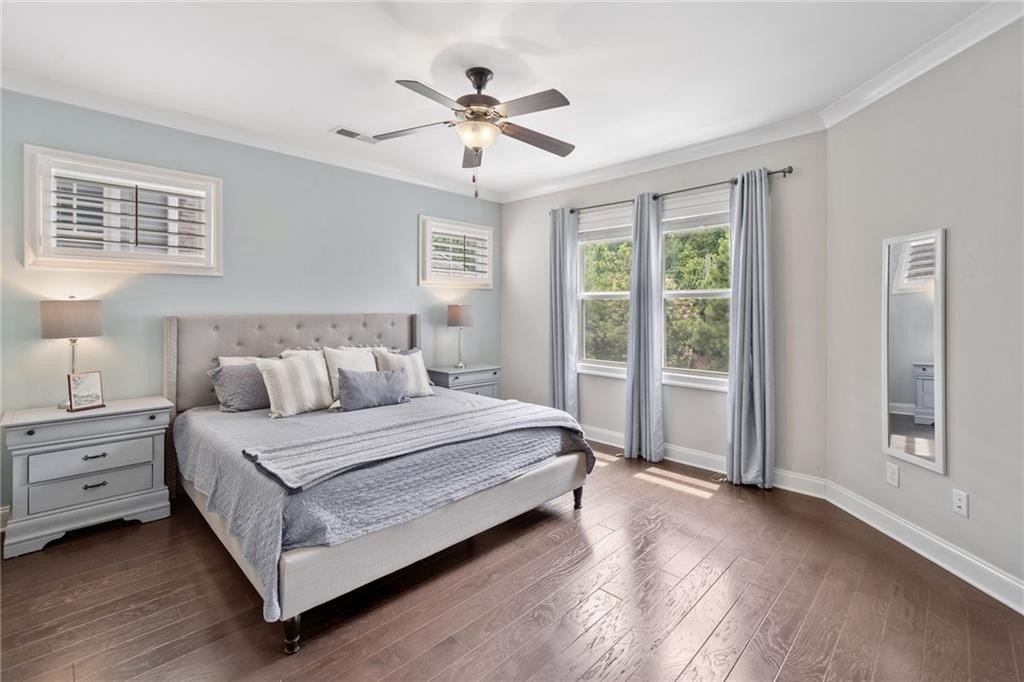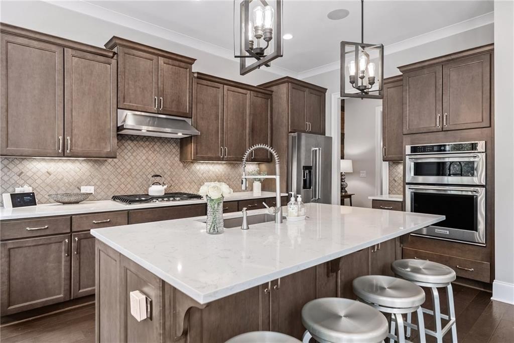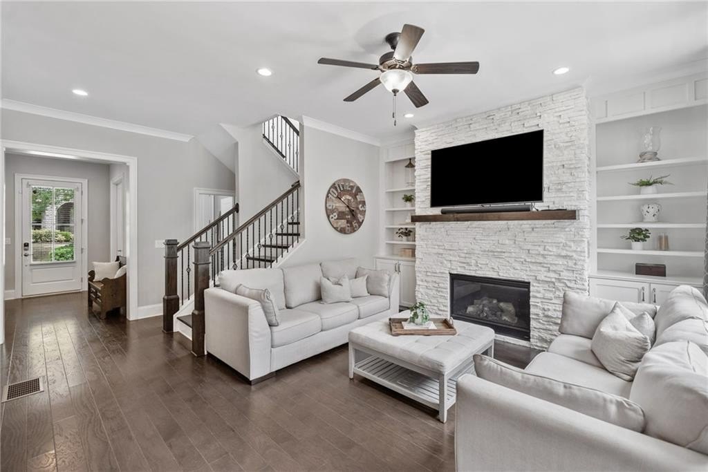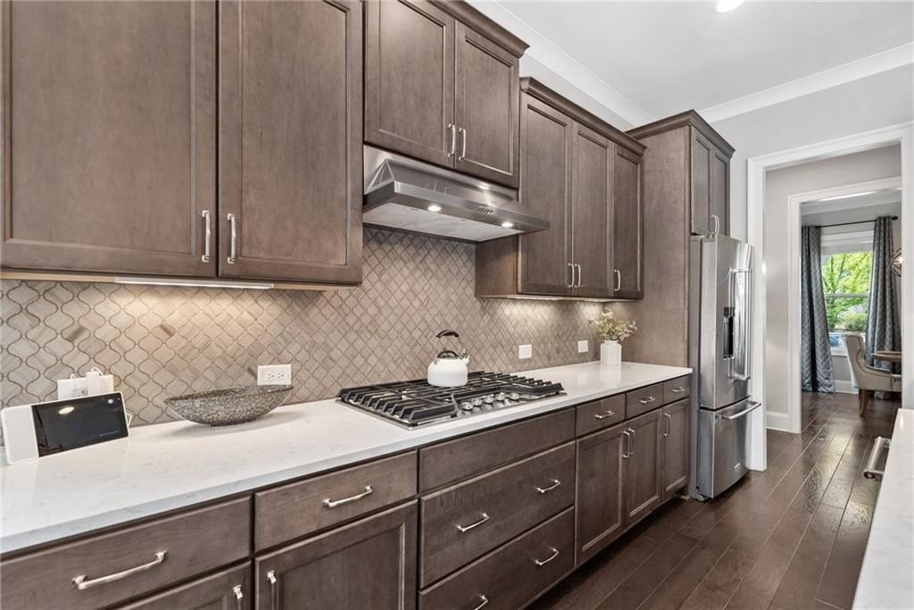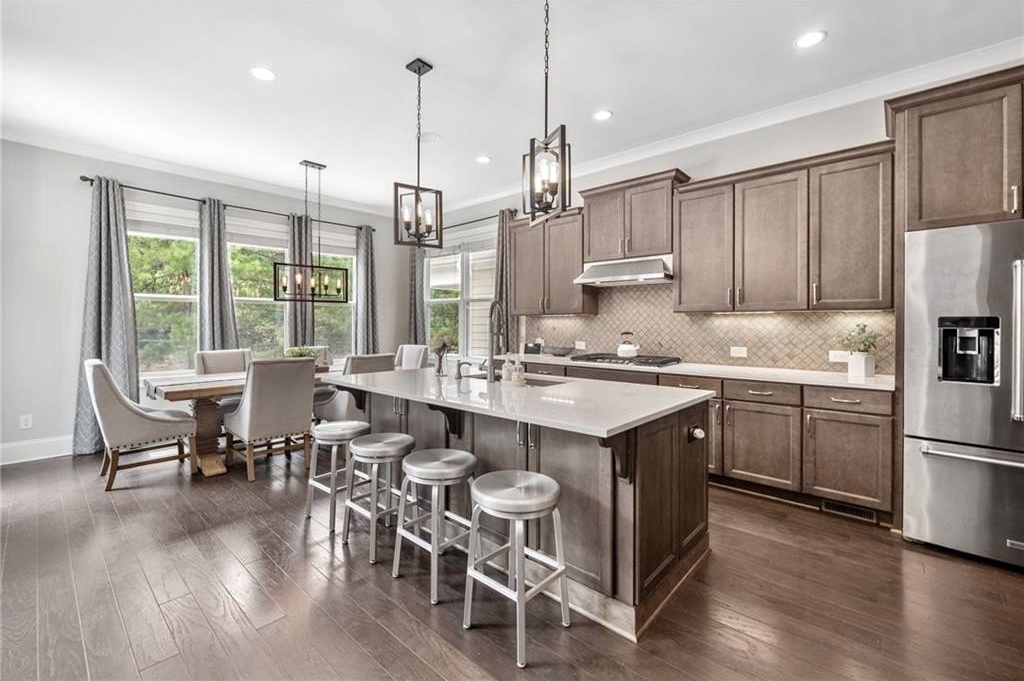 WELCOME HOME to this well-crafted, move-in ready 4 bd, 3.5 bath, 3-car garage custom home located in the sought-after East Roswell community of Alstead! This southern-style charmer features a welcoming front porch, open floor plan, stunning hardwoods throughout, loads of natural daylight, and more! The main living level includes a guest bedroom and full bath, formal dining room, open fireside family room, convenient read balcony for grilling or just relaxing, and a fabulous kitchen complete with quartz countertops, large island, stainless appliances, adjacent breakfast area, and convenient coffee bar! Upstairs, you’ll find two sizable guest bedrooms, guest bathroom, and the oversized primary bedroom with a spacious ensuite bath featuring dual vanities, soaking tub, walk-in shower, and large walk-in closet! The finished terrace level includes a media room, flex space, and bonus room— perfect for a home office! This fantastic close-knit community includes a beautiful pool, covered pavilion, amphitheater for entertaining, pocket parks, walking trail and lots of social events! Perfect location offers easy access to GA400, walking distance to restaurants, schools, East Roswell park and library! Hurry! This one won’t last!