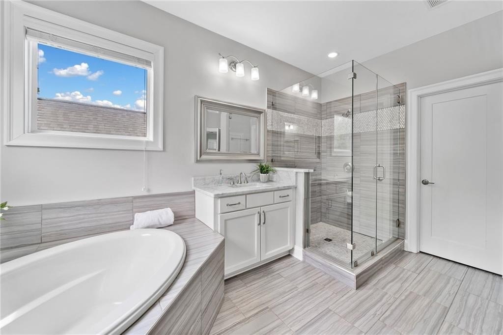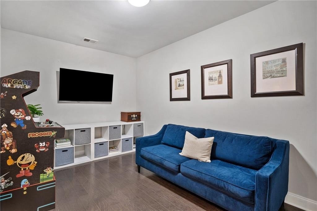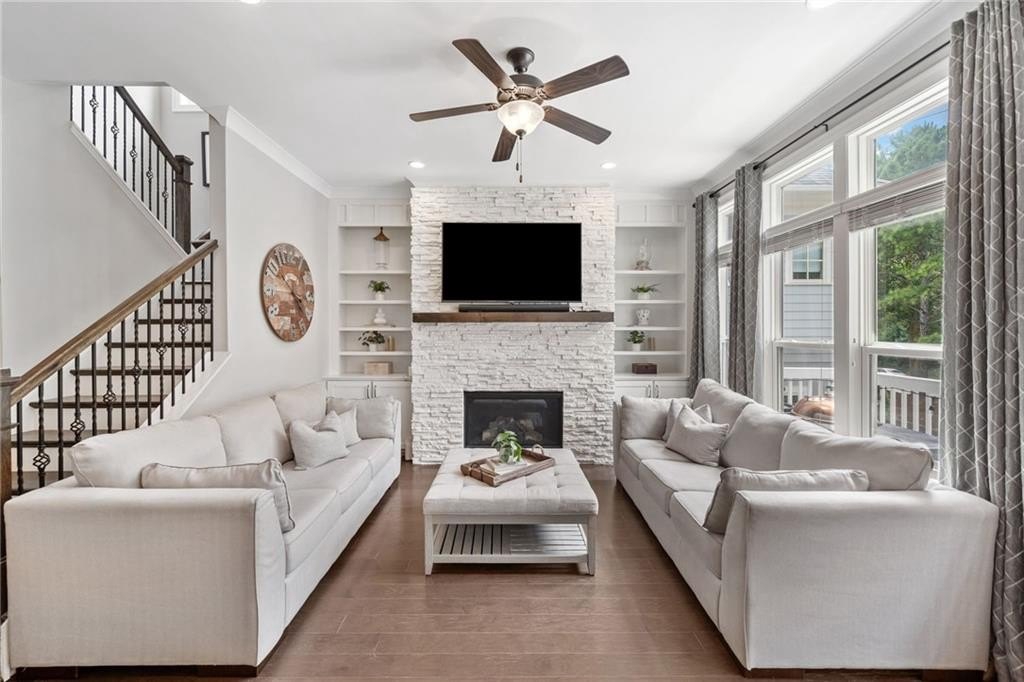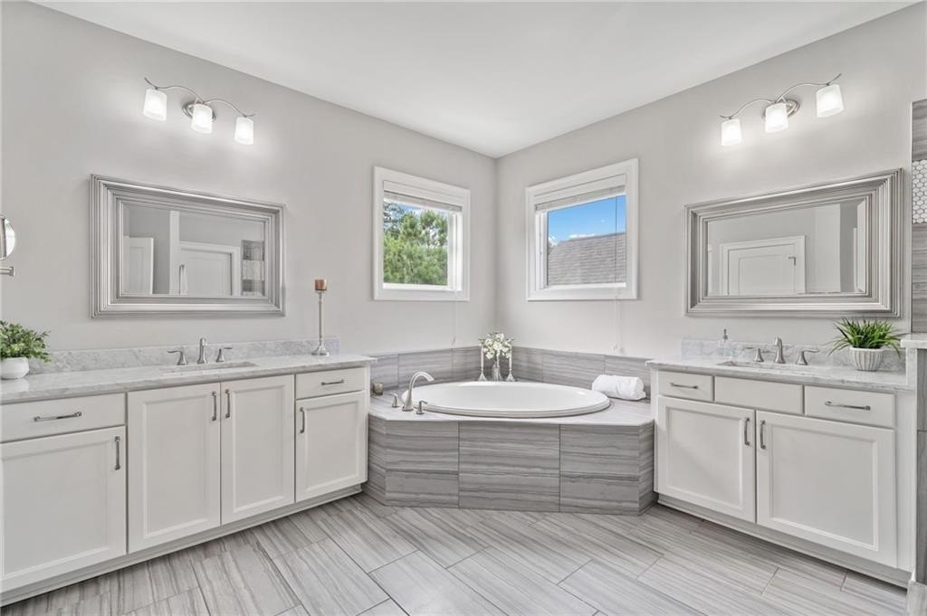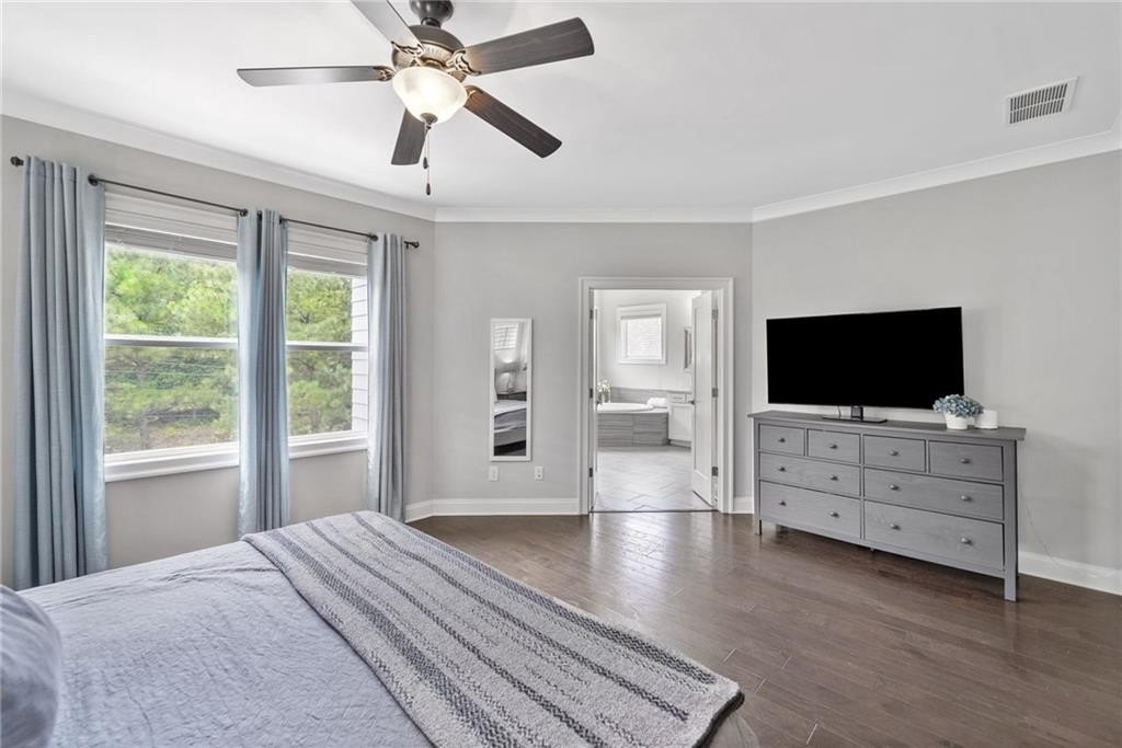 WELCOME HOME to this well-crafted, move-in ready 4 bd, 3.5 bath, 3-car garage custom home located in the sought-after East Roswell community of Alstead! This southern-style charmer features a welcoming front porch, open floor plan, stunning hardwoods throughout, loads of natural daylight, and more! The main living level includes a guest bedroom and full bath, formal dining room, open fireside family room, convenient read balcony for grilling or just relaxing, and a fabulous kitchen complete with quartz countertops, large island, stainless appliances, adjacent breakfast area, and convenient coffee bar! Upstairs, you’ll find two sizable guest bedrooms, guest bathroom, and the oversized primary bedroom with a spacious ensuite bath featuring dual vanities, soaking tub, walk-in shower, and large walk-in closet! The finished terrace level includes a media room, flex space, and bonus room— perfect for a home office! This fantastic close-knit community includes a beautiful pool, covered pavilion, amphitheater for entertaining, pocket parks, walking trail and lots of social events! Perfect location offers easy access to GA400, walking distance to restaurants, schools, East Roswell park and library! Hurry! This one won’t last!