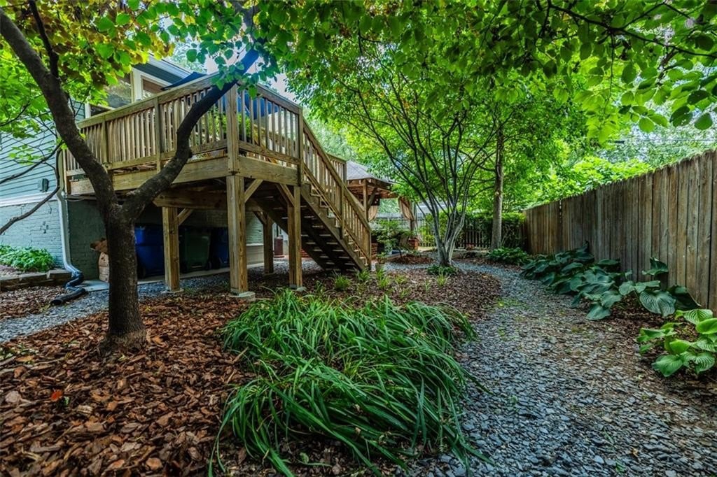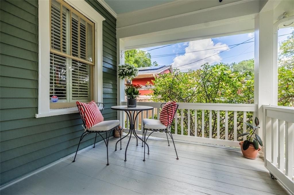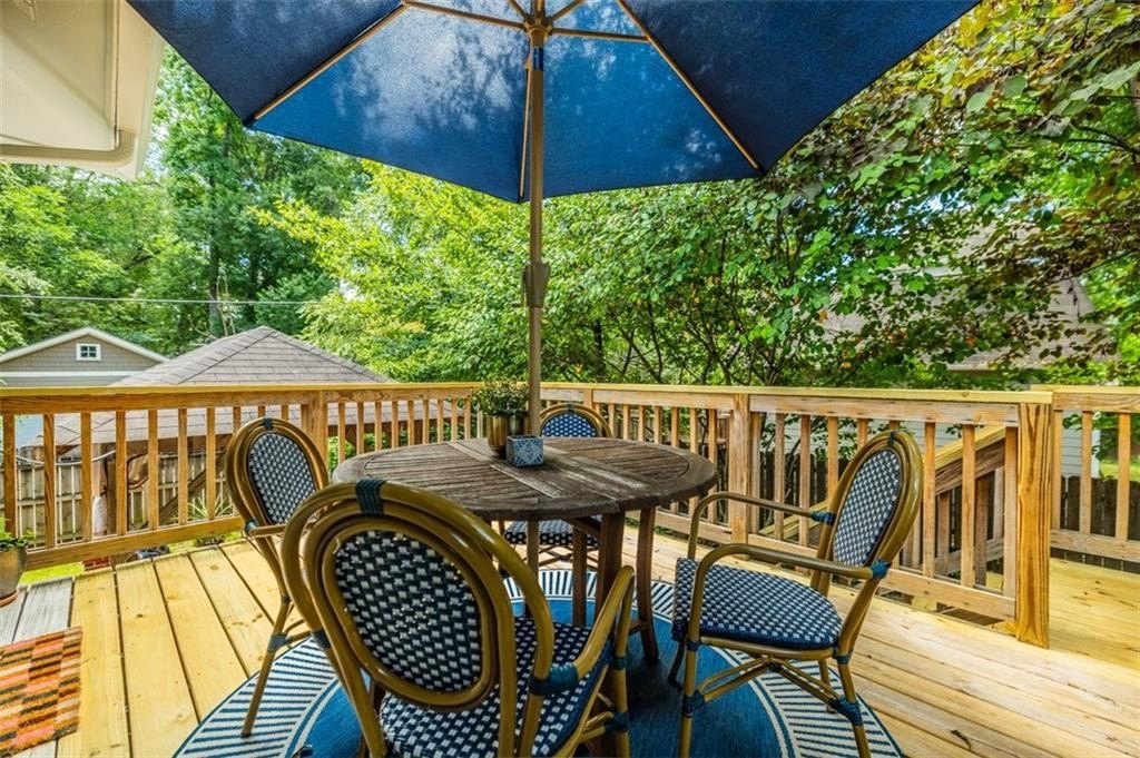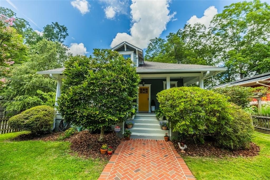 Beautifully updated craftsman bungalow on corner lot in wonderful Kirkwood location. Classic features include covered rocking chair front porch, original heart pine floors, and traditional craftsman trim & moldings. Large dine-in kitchen features granite counters, white cabinets, new fixtures & new high-end appliances. Recent total renovation of master bathroom and updated 2nd bath with new vanity and reglazed clawfoot tub with shower conversion. Two true bedrooms plus possible 3rd bedroom/office/dining room. Covered patio and newly updated deck amid lovely, mature landscaping enhance outdoor living and entertaining. Walkable to downtown Kirkwood, Oakhurst Village, Bessie Branham & Oakhurst Parks, East Lake MARTA station, and local restaurants.
