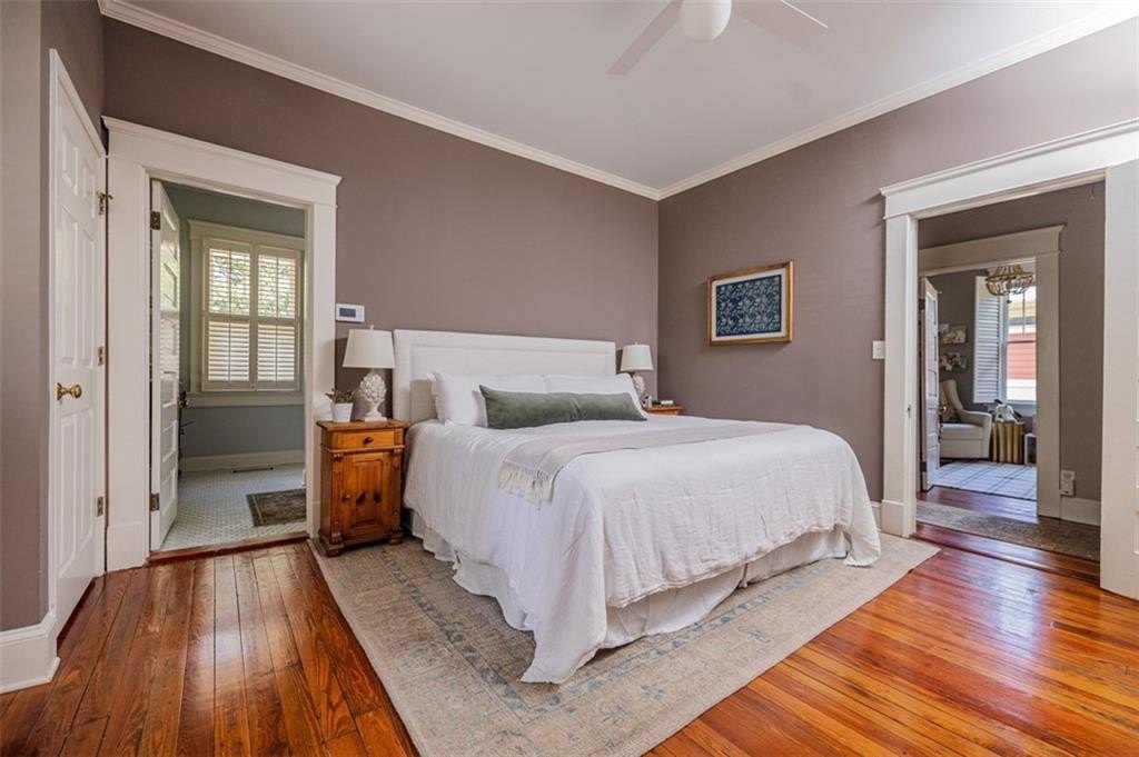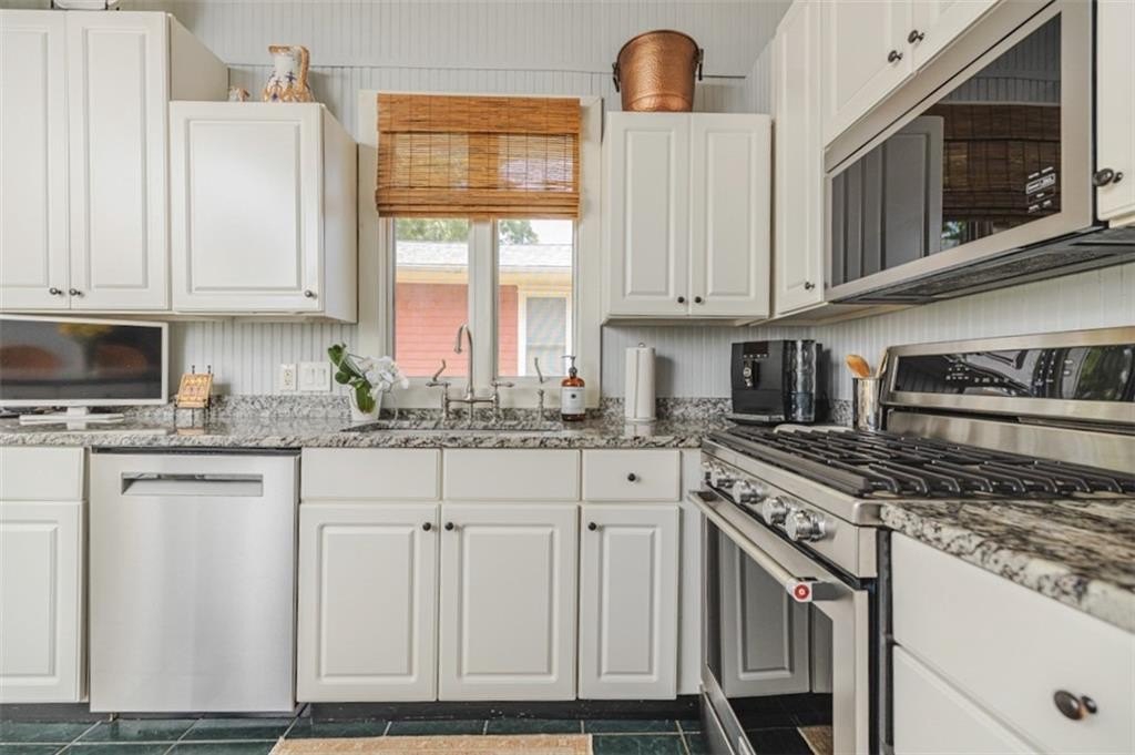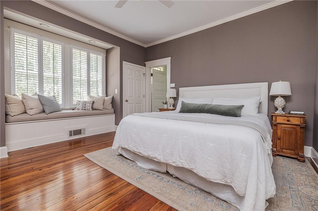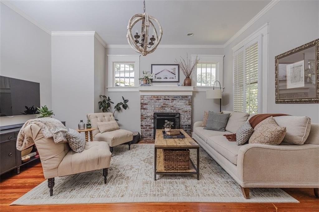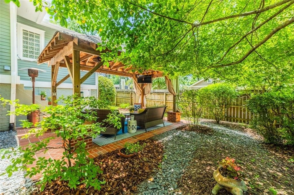 Beautifully updated craftsman bungalow on corner lot in wonderful Kirkwood location. Classic features include covered rocking chair front porch, original heart pine floors, and traditional craftsman trim & moldings. Large dine-in kitchen features granite counters, white cabinets, new fixtures & new high-end appliances. Recent total renovation of master bathroom and updated 2nd bath with new vanity and reglazed clawfoot tub with shower conversion. Two true bedrooms plus possible 3rd bedroom/office/dining room. Covered patio and newly updated deck amid lovely, mature landscaping enhance outdoor living and entertaining. Walkable to downtown Kirkwood, Oakhurst Village, Bessie Branham & Oakhurst Parks, East Lake MARTA station, and local restaurants.