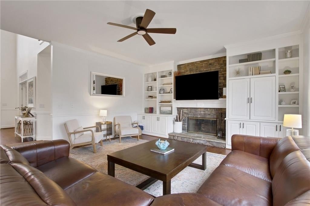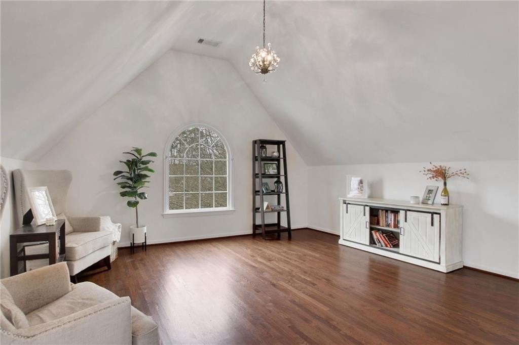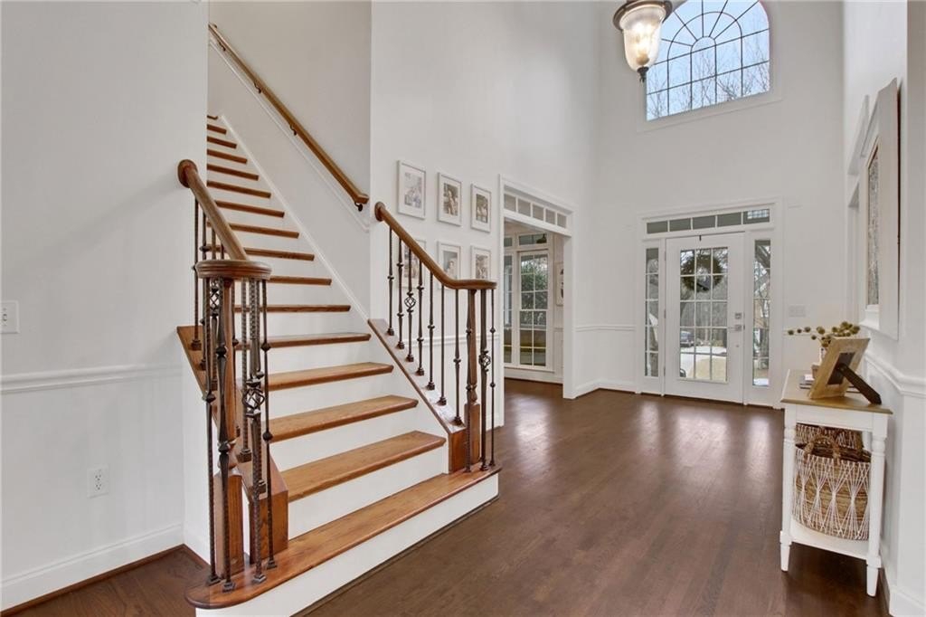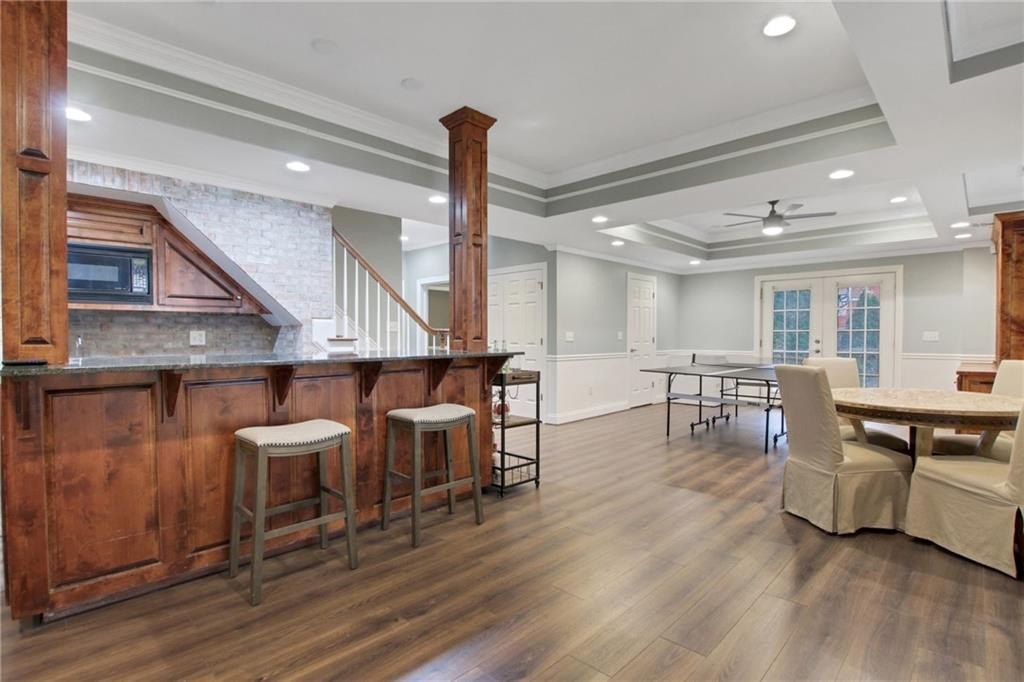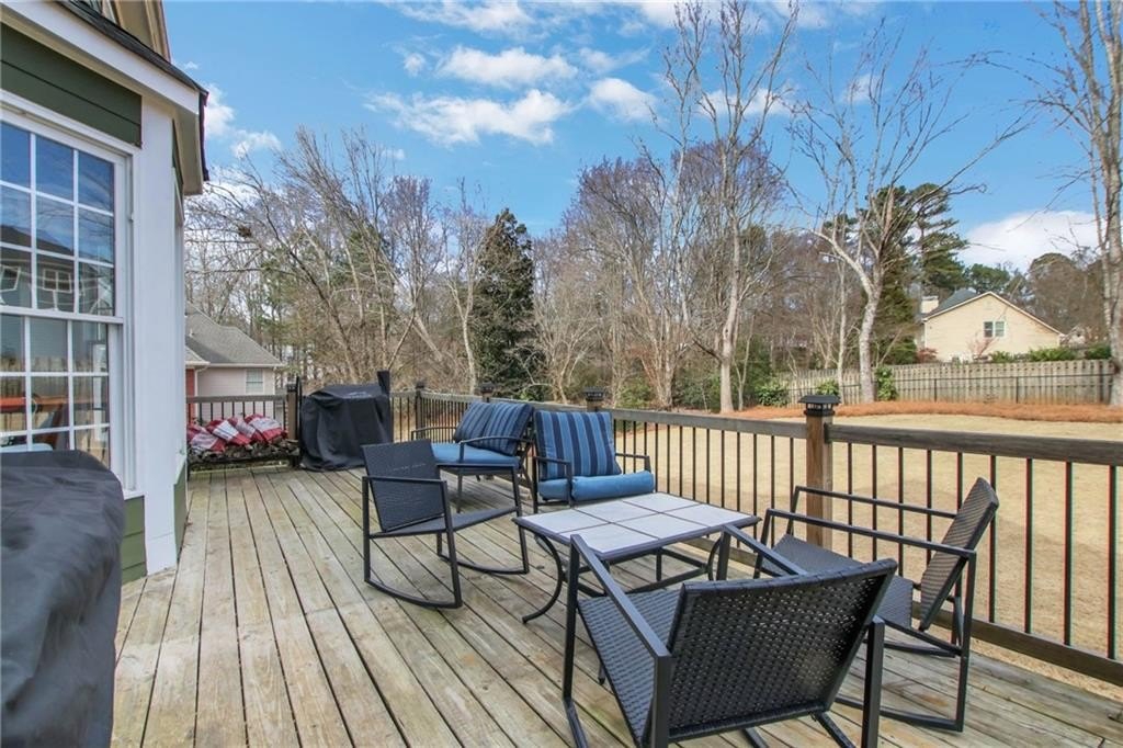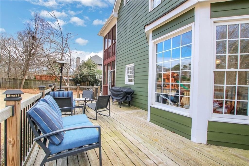 Welcome to this stunning Modern Farmhouse, perfectly positioned on a quiet cul-de-sac in the sought-after Woodland Park swim/tennis community. From the moment you arrive, the extended front porch invites you in - ideal for relaxing with a morning coffee or hanging that dream porch swing. Inside, you'll love the bright, open floor plan, expanded two feet across the back of the home for a spacious kitchen and family room area. The updated kitchen features crisp white cabinetry, gorgeous new quartz countertops, and flows seamlessly into the family room with beautiful wood floors throughout the main level. A private home office with French doors and a formal dining room offer the flexibility today's buyers want. Upstairs, the owner's suite includes a versatile sitting room - perfect for a home office, fitness space, or quiet retreat - along with three generously sized secondary bedrooms, each with its own bath. The finished terrace level is built for entertaining, complete with a custom bar, media and game areas, a guest bedroom, and a full bath. Outdoor living is a highlight with two screened porches, a huge extended deck, and a large, fenced backyard. A three-car side entry garage adds convenience. Located just one mile from GA 400 and The Collection, with easy access to Halcyon and Downtown Alpharetta, this home also sits within one of Forsyth County's top-rated school districts. Updated, spacious, and in a prime location - this home has it all.