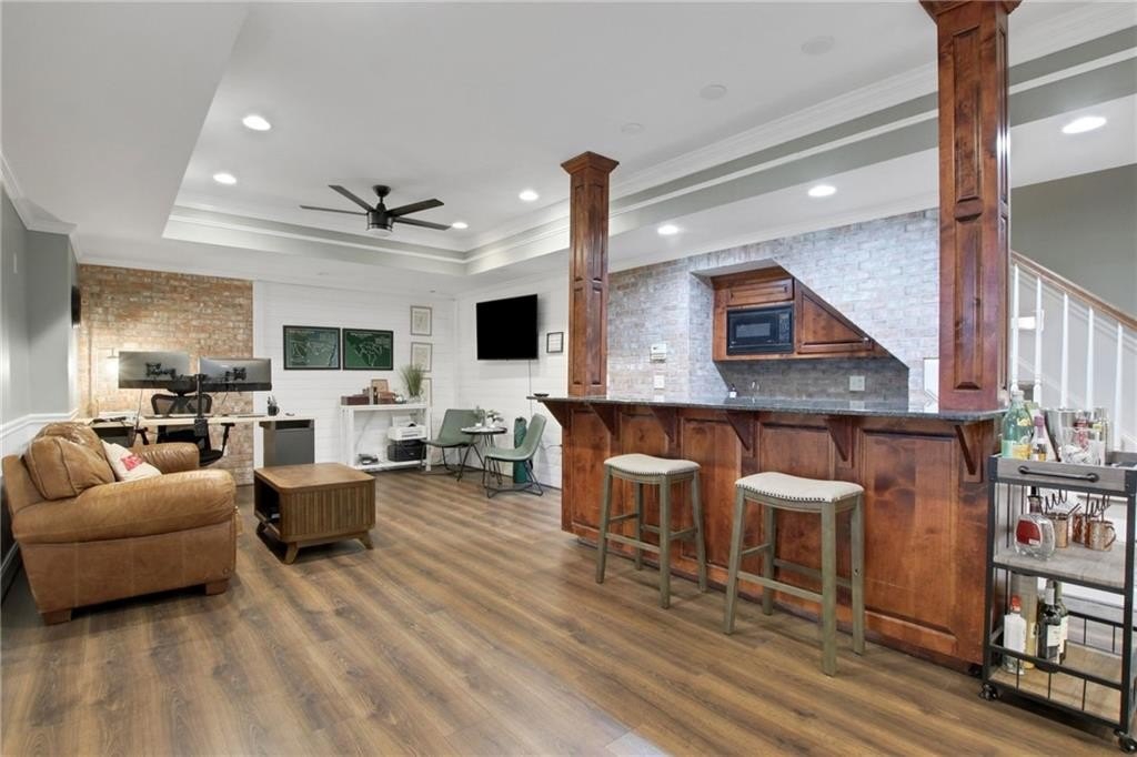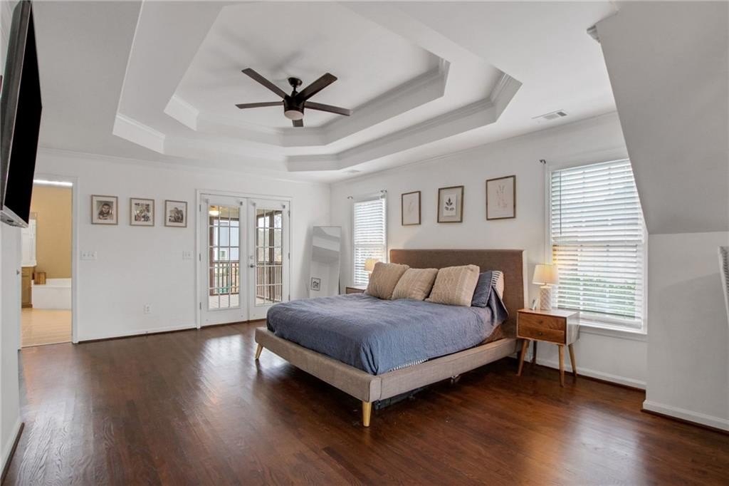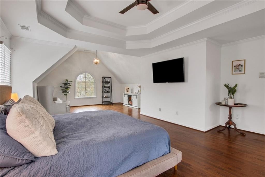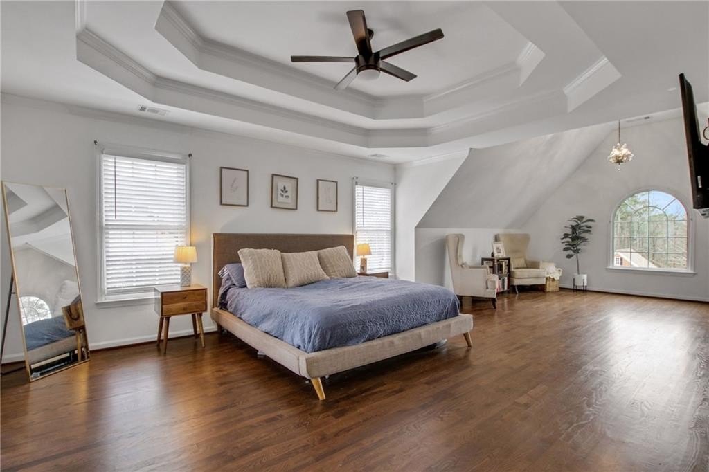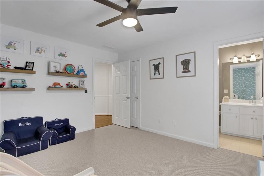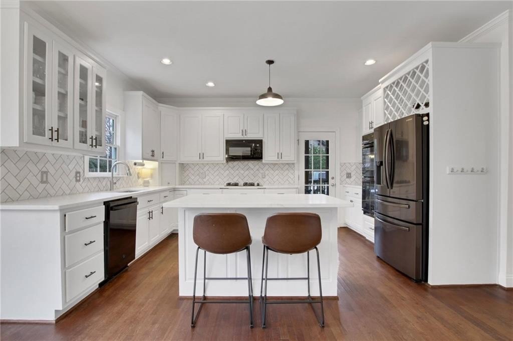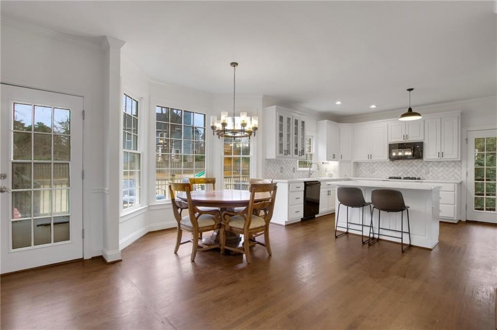 Welcome to this stunning Modern Farmhouse, perfectly positioned on a quiet cul-de-sac in the sought-after Woodland Park swim/tennis community. From the moment you arrive, the extended front porch invites you in - ideal for relaxing with a morning coffee or hanging that dream porch swing. Inside, you'll love the bright, open floor plan, expanded two feet across the back of the home for a spacious kitchen and family room area. The updated kitchen features crisp white cabinetry, gorgeous new quartz countertops, and flows seamlessly into the family room with beautiful wood floors throughout the main level. A private home office with French doors and a formal dining room offer the flexibility today's buyers want. Upstairs, the owner's suite includes a versatile sitting room - perfect for a home office, fitness space, or quiet retreat - along with three generously sized secondary bedrooms, each with its own bath. The finished terrace level is built for entertaining, complete with a custom bar, media and game areas, a guest bedroom, and a full bath. Outdoor living is a highlight with two screened porches, a huge extended deck, and a large, fenced backyard. A three-car side entry garage adds convenience. Located just one mile from GA 400 and The Collection, with easy access to Halcyon and Downtown Alpharetta, this home also sits within one of Forsyth County's top-rated school districts. Updated, spacious, and in a prime location - this home has it all.