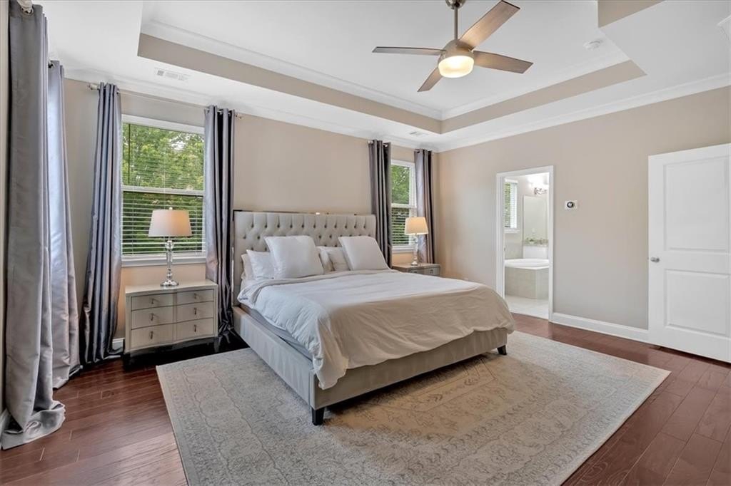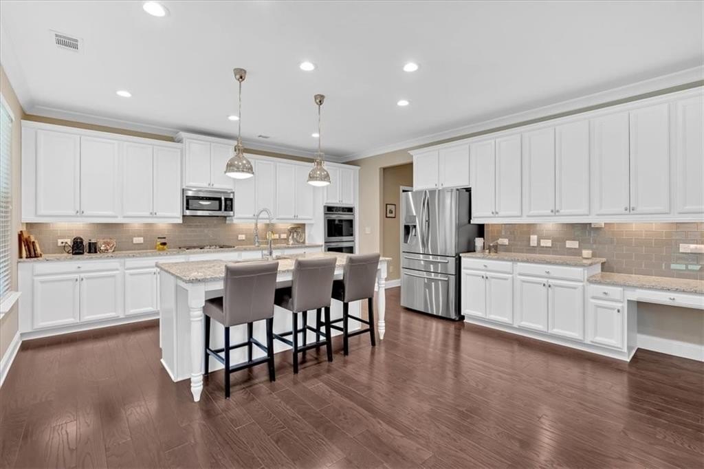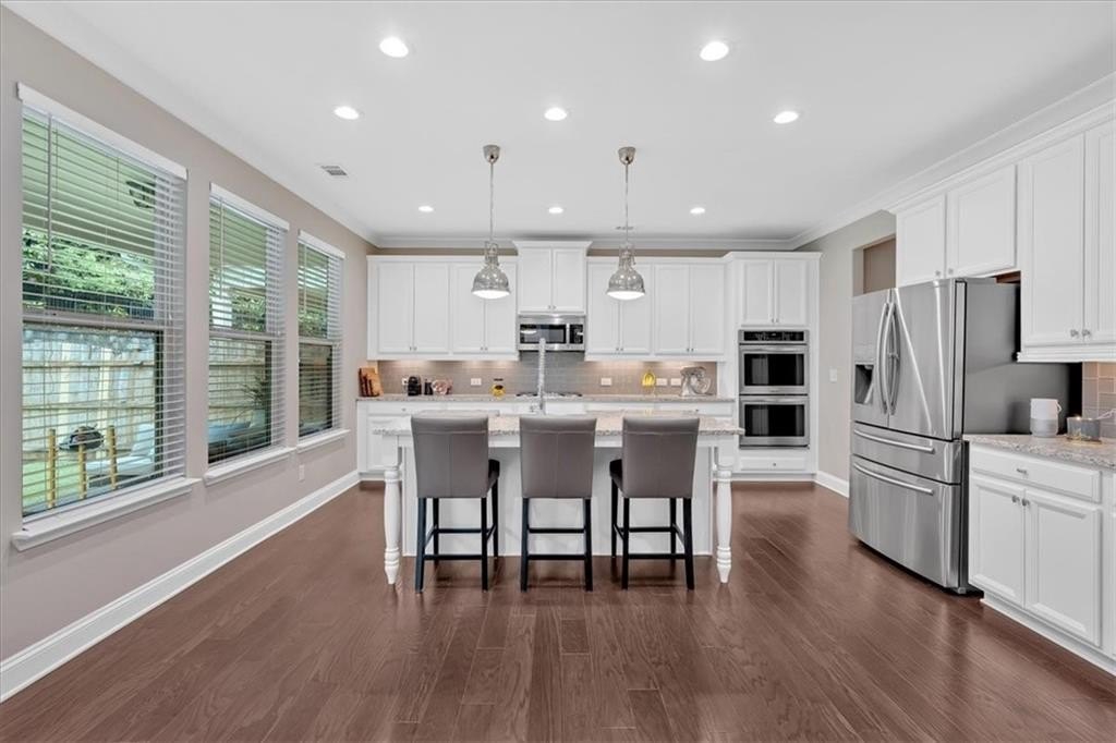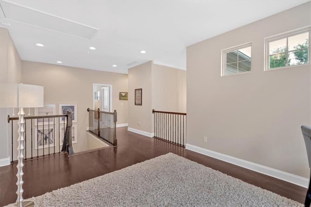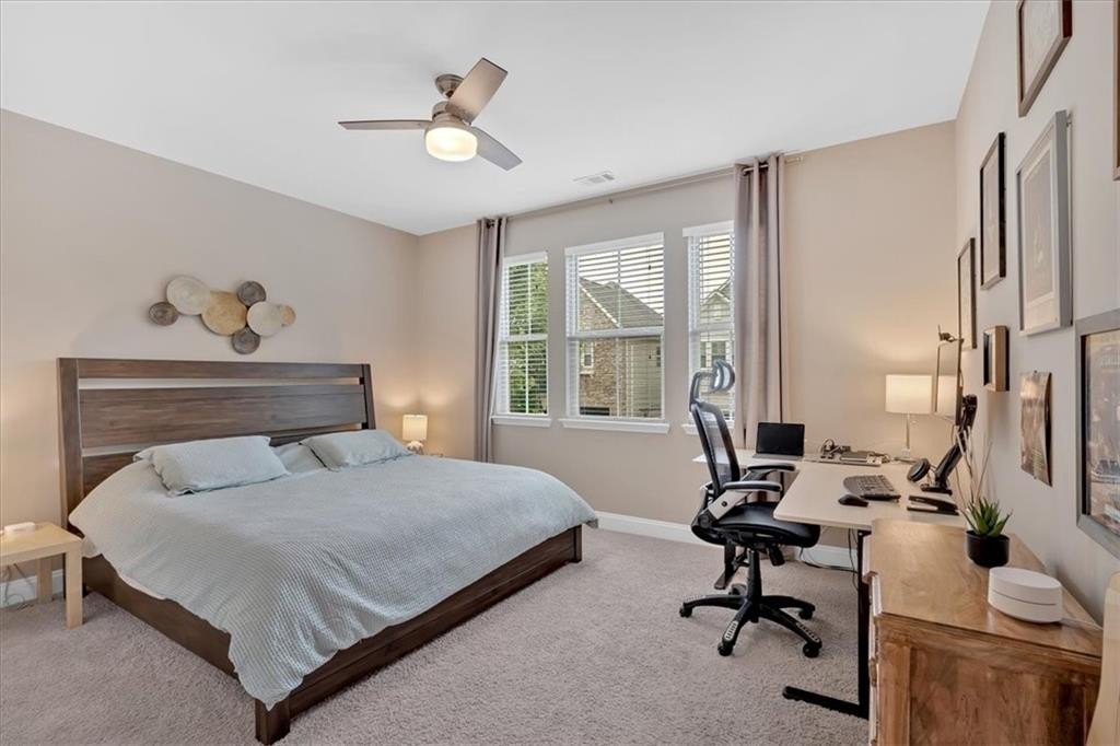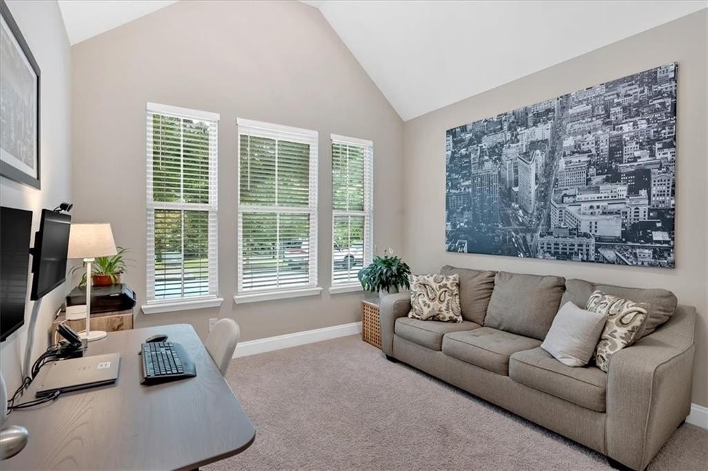 MOVE-IN READY… Freshly painted with new carpet! Located just a short walk to Roswell Town Square, local coffee shops, and excellent restaurants, you are sure to love this exceptional home in the heart of Roswell. As you enter this open floor plan, you will find a family room with a gas fireplace and custom-built bookshelves that flow seamlessly into a spacious kitchen featuring 42” cabinets, a stainless-steel gas cooktop, double ovens, a charming farmhouse sink, and a large island perfect for entertaining. A walk-in pantry adds extra convenience. There’s a full bedroom and bathroom on the main level, ideal for guests, a home office, or a playroom. Upstairs, you'll love the primary suite, which offers a well-appointed space featuring hardwood floors, a spa-like bathroom, and an oversized walk-in closet with built-in shelves and ample storage. There's also a loft area that provides additional space for a game room, lounge, or creative area, along with two more bedrooms featuring brand-new carpet and a shared hall bath. In the garage, you'll find an EV charger and plenty of room for storage. Good news—the HOA covers lawn care and irrigation for the entire community. You’re sure to love this friendly, social community where neighbors know each other's names and friendships come easily. Call today to schedule an easy appointment!