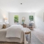 The kitchen, with its abundance of cabinetry, sprawling counters, and a cheerful writing desk, is where love notes, recipes, and Saturday morning pancakes will live on for years to come. Just beyond, the cozy family room, with its inviting fireplace, built-in bookshelves, and beamed ceilings, calls you to gather close and stay a while.