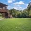 levels: one perfect for grilling, the other set up with a hot tub and built-in bench. The backyard