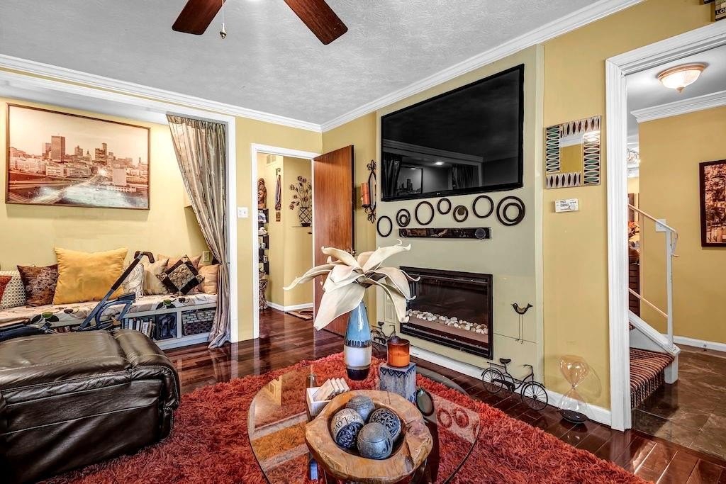 versatility. Inside, hardwood floors run through the main living areas, with generous room sizes