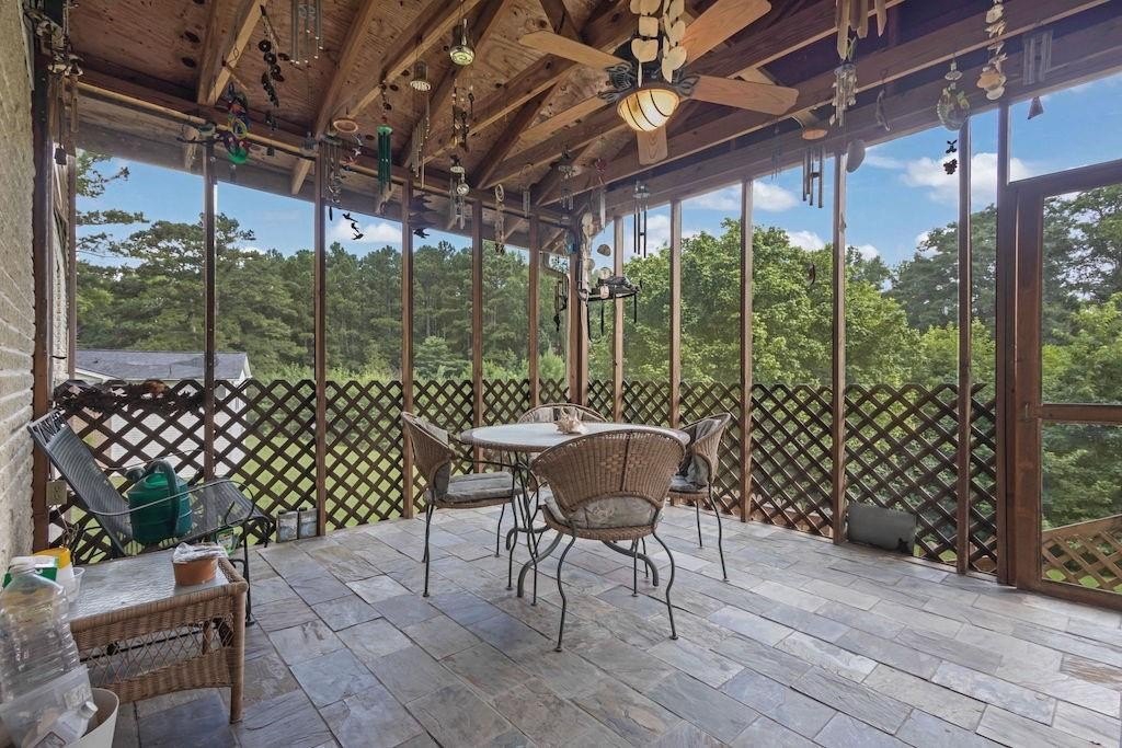 workshop, or future expansion. Out back, a screened deck with electrical leads to two tiered