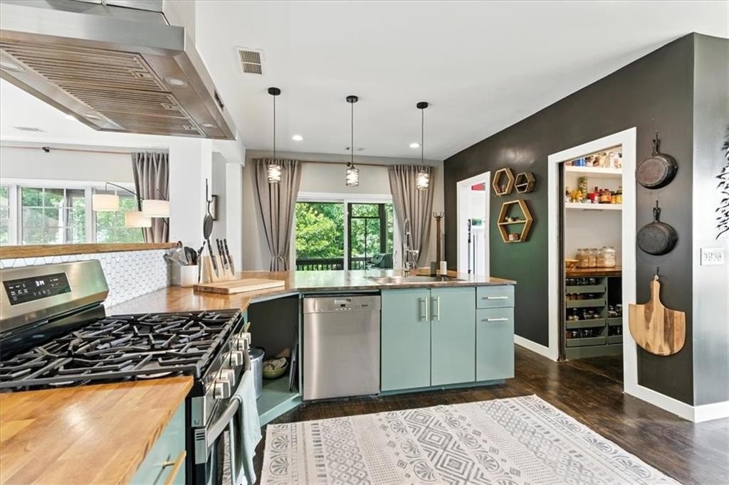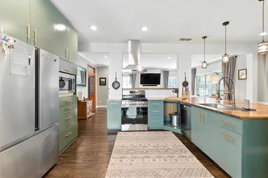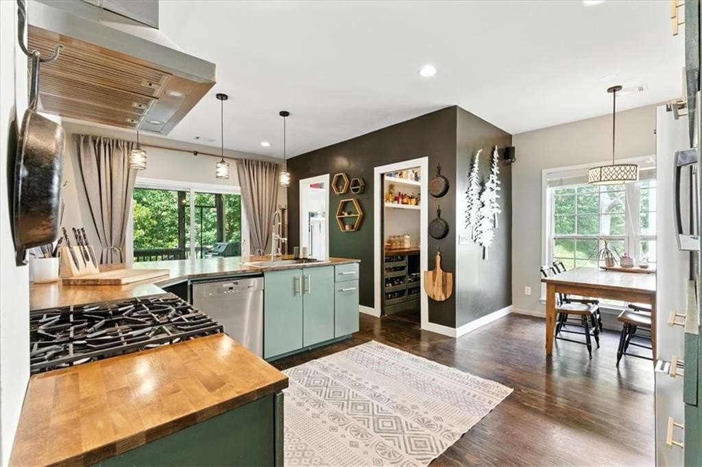 This home is truly one of a kind, offering the perfect blend of charm, comfort, and functionality. Step inside to discover a thoughtfully remodeled floor plan featuring an open-concept kitchen with a large island, birch butcher block countertops with a waterproof finish, stainless steel appliances, and a seamless flow into the spacious living and dining areas—perfect for entertaining. A walk-in butler’s pantry provides additional storage and prep space, making hosting a breeze.