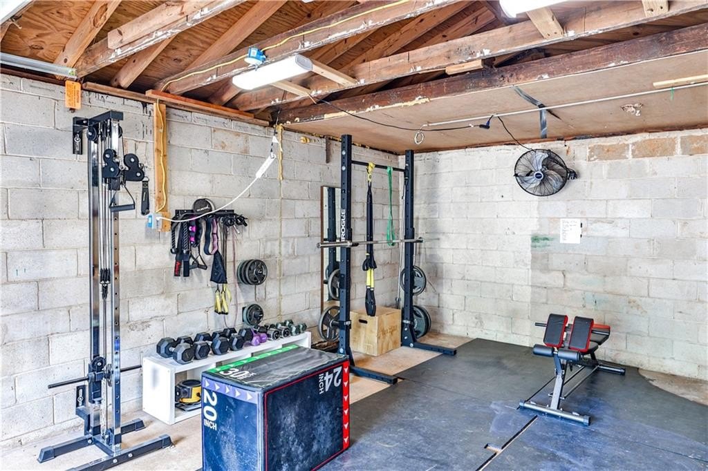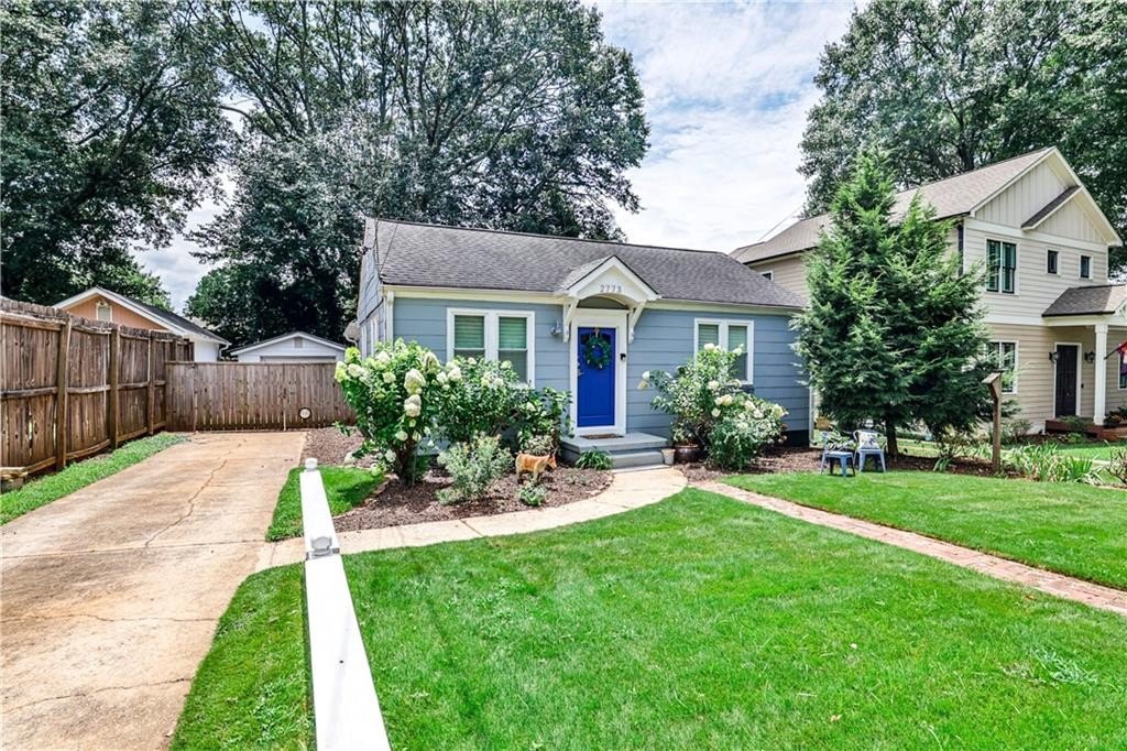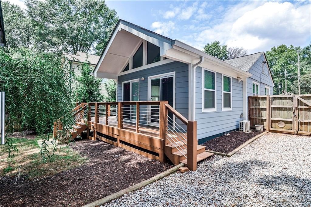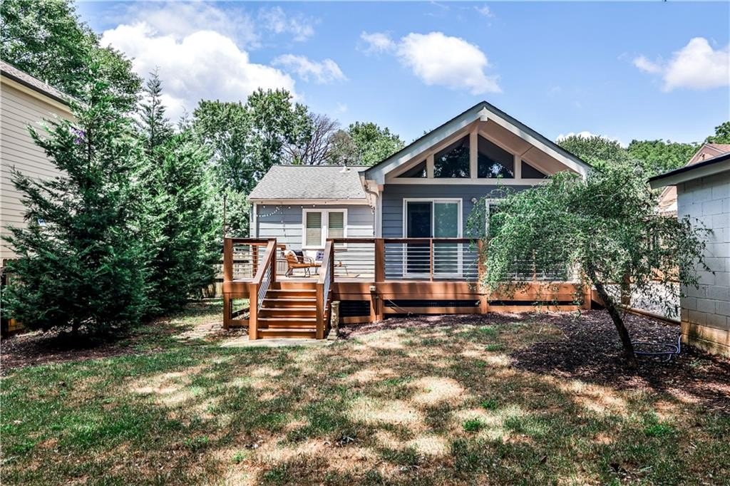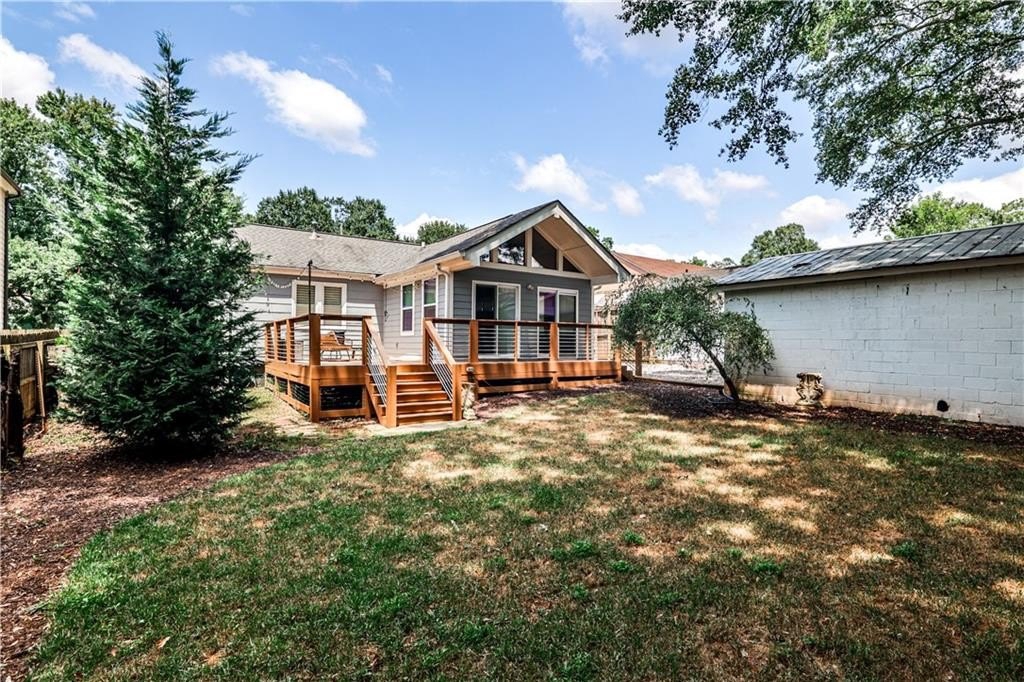 dishwasher. Beautiful plantation shutters adorn each bedroom and the living room. And that’s not all; the surprisingly large, fully fenced, manicured backyard boasts a beautiful walk-out deck and a two-car garage structure that is perfect for a home gym, projects, storage or parking! City of Decatur living without the taxes! So close to