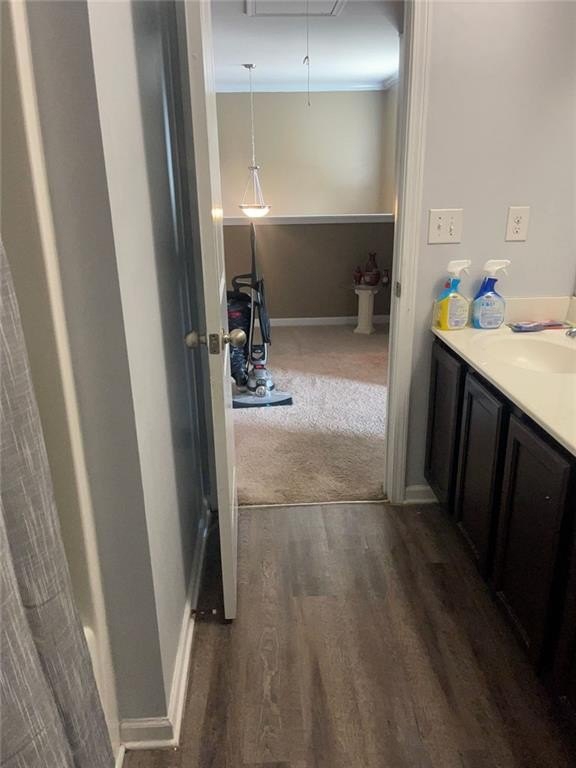 Upstairs includes a foyer overlooking the entry way. All four carpeted bedrooms provide comfort and space, including the owner's suite with a walk-in closet, dual vanities (his and hers), a garden tub, separate shower, and private toilet room.