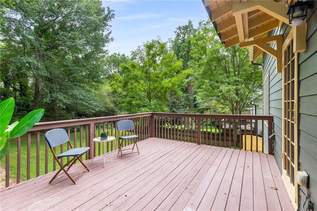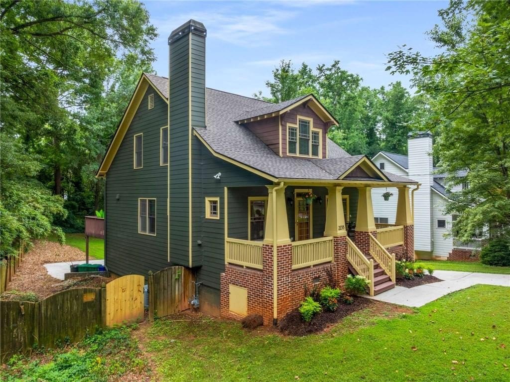Welcome to 2155 McAfee Rd, a Craftsman gem in East Lake Terrace offering the perfect blend of character, space, and smart updates—ideal for today’s dynamic lifestyle. Built in 2005 by local, award-winning builder, Gus Pounds, and lovingly cared for by its original (and only!) owner, this home boasts quality construction and has been meticulously maintained. Set on a large wooded lot, this 3-bedroom, 2-bath, home greets you with a welcoming, rocking-chair front porch and classic Craftsman tapered columns and architectural details that set it apart from the typical newer construction home. Inside, the light-filled main level features original hardwood floors, a cozy gas fireplace, and an open living/dining area that flows into a well-appointed kitchen with stainless steel appliances, newly refinished rich natural wood cabinetry, and ample counter space for cooking. Two main-level bedrooms offer versatility for kids, guests, work-from-home, or a game/craft room, and are serviced by a full bathroom. The impressive, spacious, upstairs primary suite is a true retreat, complete with an en-suite bath and two flexible sitting areas—perfect for a nursery, Peloton studio, or just a corner to hide from the world in a cozy chair with a good book. A rare 2-car, rear-entry, garage and spacious basement offer more storage than you’ll know what to do with and is stubbed for plumbing for future expansion. Out back, enjoy a fully fenced yard with flat, grassy, space for play and a large deck for grilling, dining al fresco, or just relaxing surrounded by a serene wooded backdrop. Or, better yet, add an ADU to create an in-law suite or rental income potential. Bonus points? The big-ticket items are already done: a BRAND-NEW roof (Spring 2025), two newer HVAC systems (2019 & 2020), and an energy-efficient tankless water heater. Just minutes from East Lake Golf Club, Buena Vista Lake, Publix, MARTA, and shops and dining in East Atlanta, Oakhurst, and downtown Decatur, this home delivers true Craftsman charm with rich architectural detail and thoughtful upgrades, setting it apart in a sea of sameness. Now, this beloved home is ready for its next chapter—and looking for its second owner. Don’t miss the opportunity to make 2155 McAfee your own!
