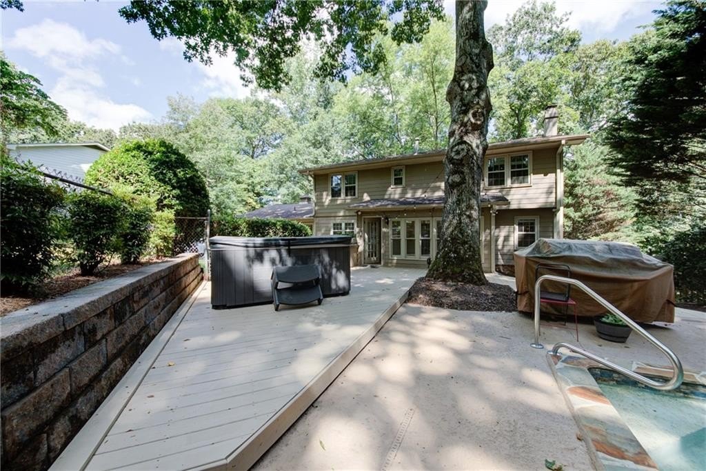 Welcome to 835 Lakeshore Drive, a spacious 4-bedroom, 2.5-bath home on over half an acre in the highly desirable Berkeley Lake community, one of the best places to live in Georgia. Offering a great value in an exclusive neighborhood, this charming home features an updated kitchen, multiple light-filled living areas, and a partially finished basement with a dedicated office, perfect for working from home, hobbies, or extra living space. Step outside to enjoy your own private backyard oasis complete with a pool, relaxing hot tub, and newly refinished deck, ideal for entertaining or unwinding at the end of the day.