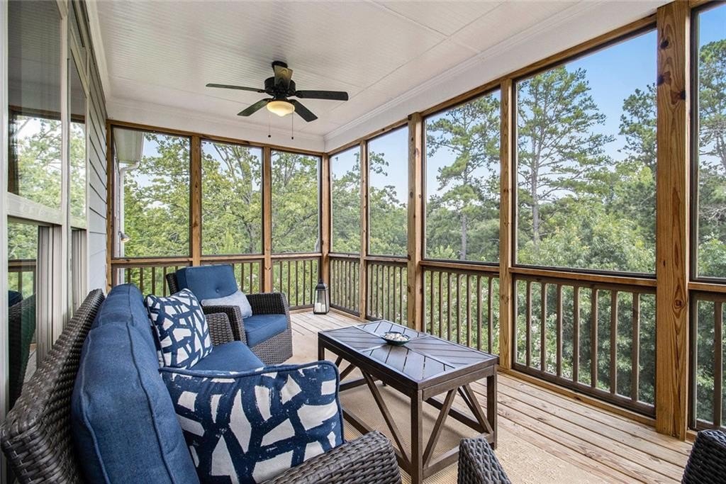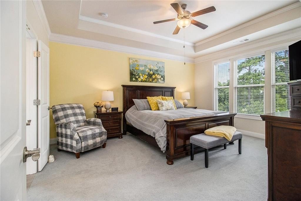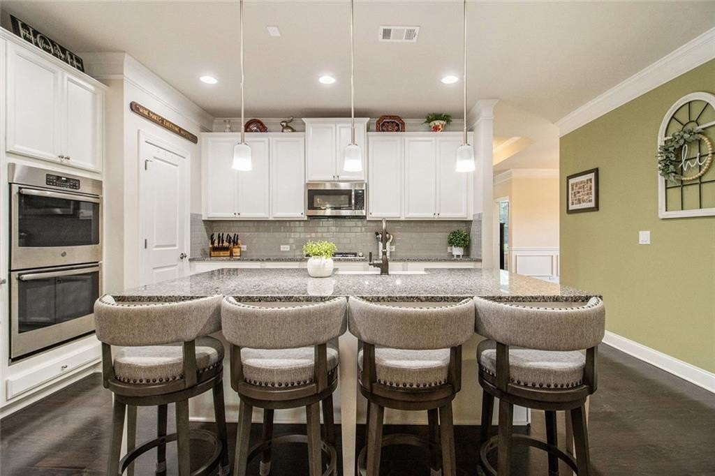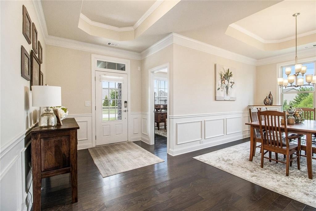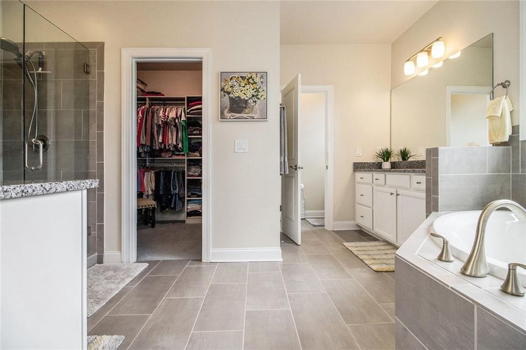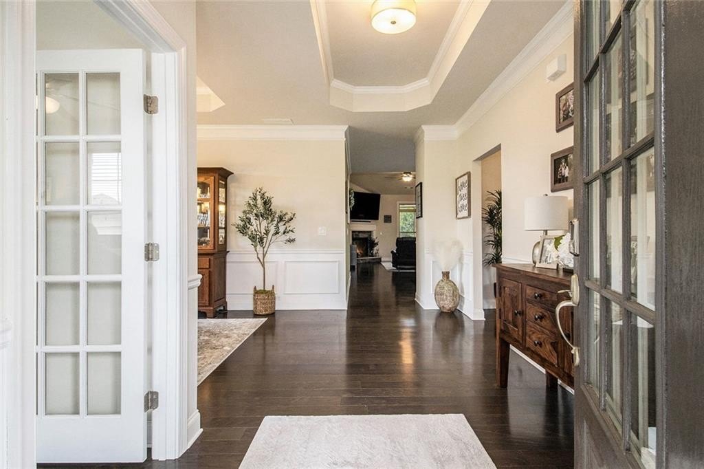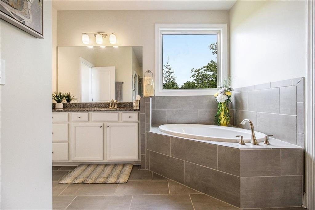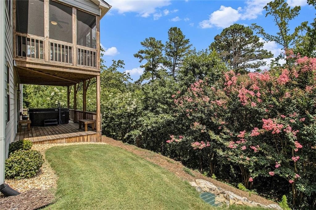 One level living on a full unfinished walk-out basement. This is a well appointed and well maintained home with many Owner upgrades. The home is sited on .41 acre lot that backs up to a wooded area to provide ample privacy. From the stacked stone accents on the front porch to the trey ceiling in the foyer, the quality and luxury you find upon entering the home continues throughout. The home features hardwood flooring in all the main areas and new carpet in the primary bedroom. The open kitchen features double ovens, a farmhouse sink, large kitchen island with pendent lighting, hidden trash receptacles, stainless steel appliances, granite countertops and recessed lighting. The separate dining room seats 12 and has plenty of room for your dinning hutch. It has huge windows with a private view and trey ceiling. All the bathrooms have tiled flooring, tiled baths and showers and and granite countertops. Besides double fans on the screened in porch and a fan in the Great Room, all bedrooms have ceiling fans. The large laundry room features a window, utility sink and cabinets. Outside you can choose to relax on the upstairs screened in porch or the open deck below accessible from the basement. Build out the space you want in the full walk-out daylight basement, stubbed for a full bathroom and still have plenty of storage left over.