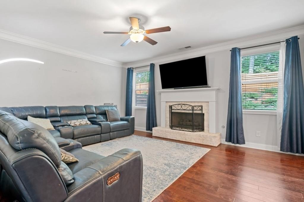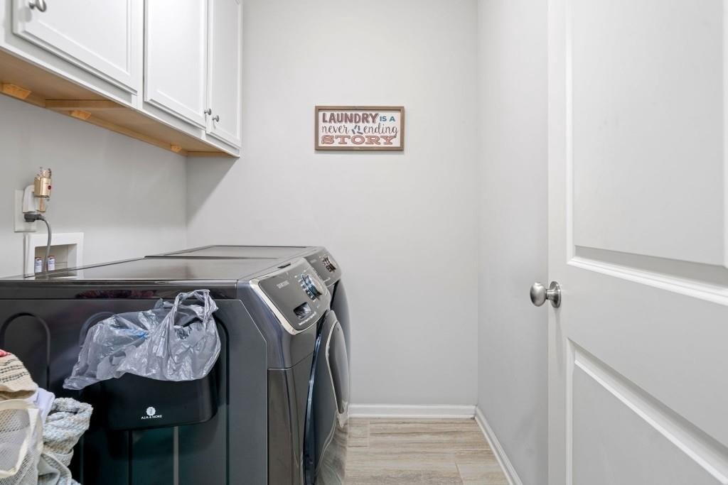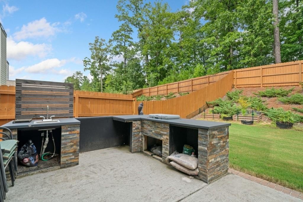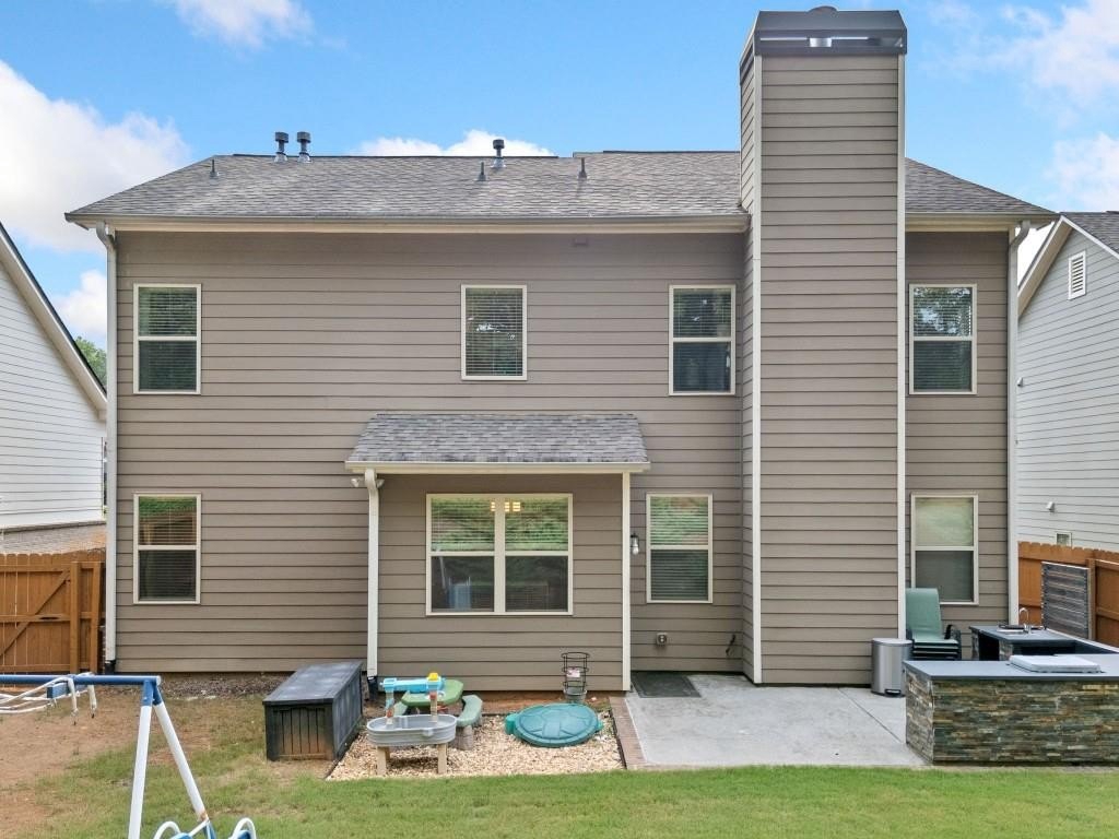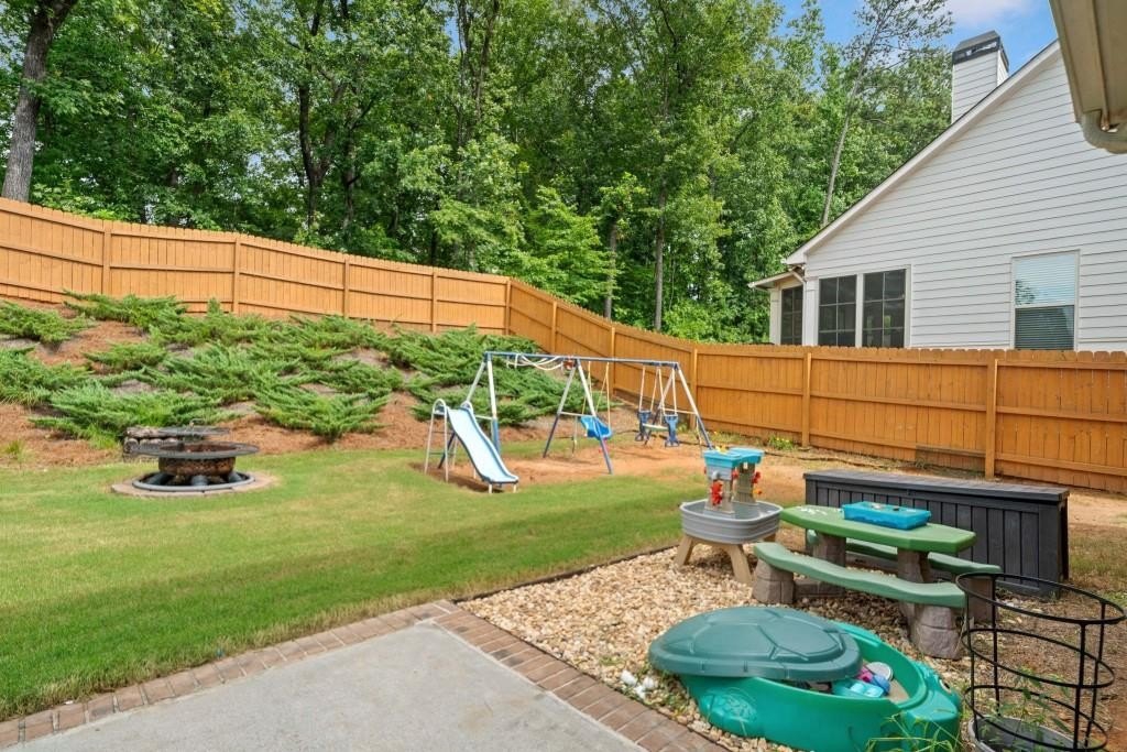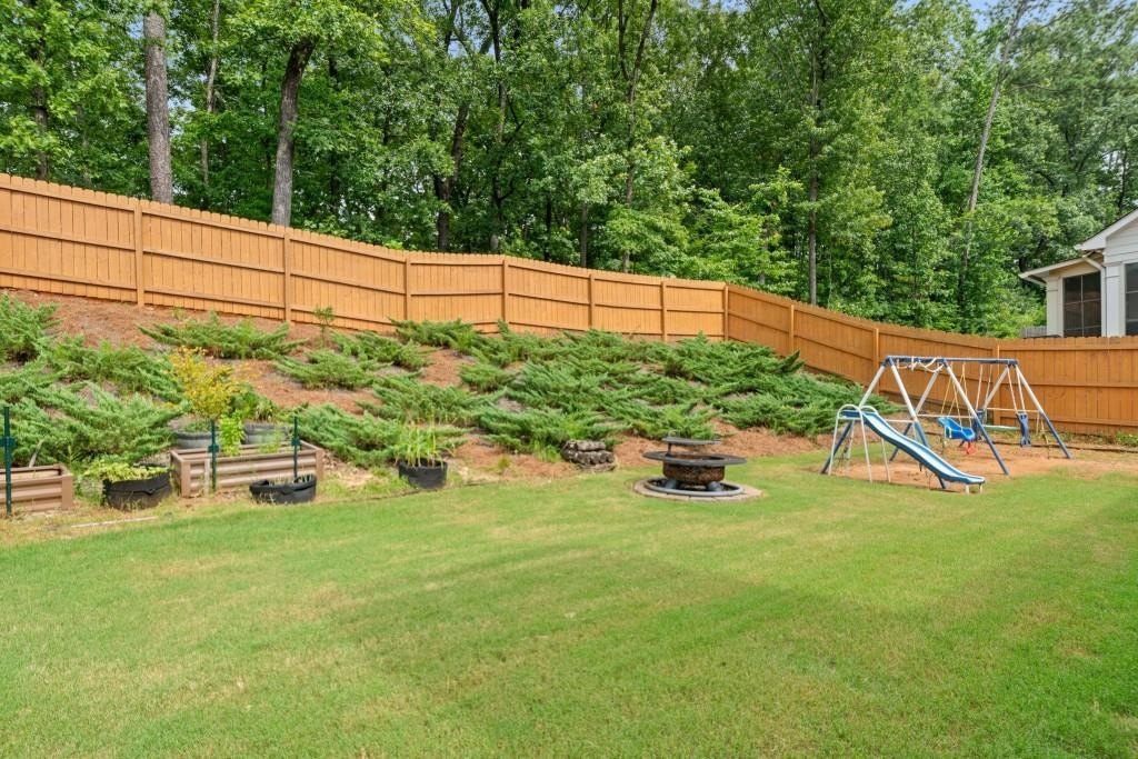 This beautiful 5-bedroom, 3-bath modern craftsman is ideally located between downtown Acworth and Kennesaw. Boasts plenty of charm, modern design, and a welcoming ambiance. The home features an open-concept living area with a cozy fireplace, a chef's kitchen with quartz countertops, a large island, and hardwood floors throughout the main living area. A versatile main-level bedroom and bath offer flexibility for a gym, office, or guest space. Upstairs offers a spacious primary suite with vaulted ceilings, walk-in closet, and a spa-like en-suite bath. Three additional bedrooms with walk-in closets share a well-appointed bath with his & hers sinks, and an upstairs laundry room completes the second floor. Enjoy the outdoor patio and private backyard complete with a stone-top BBQ pit that includes a sink and plenty of space for firewood storage, perfect for relaxation or entertaining. Enjoy the nearby walking trails and gazebo that connect directly to the neighborhood. Minutes from shopping, dining, parks, and top-rated schools, this home offers style, comfort, and tranquility!