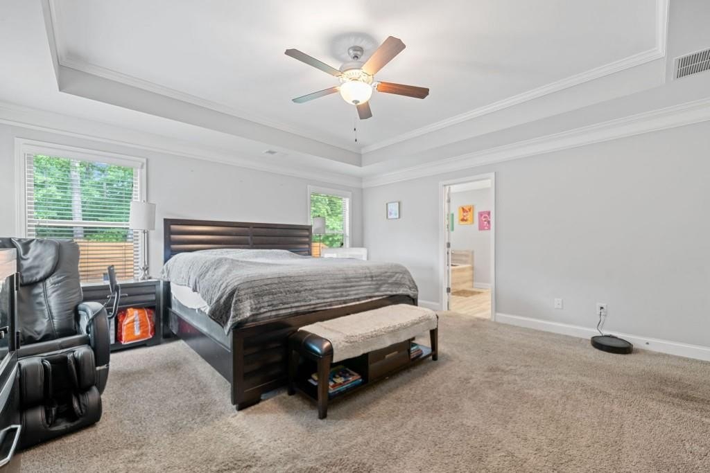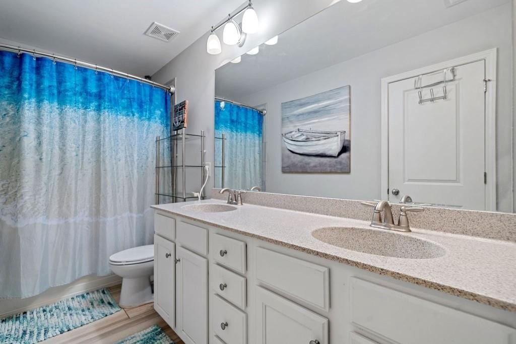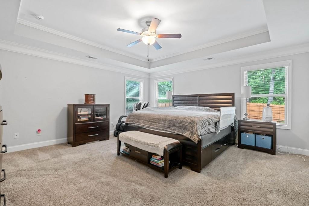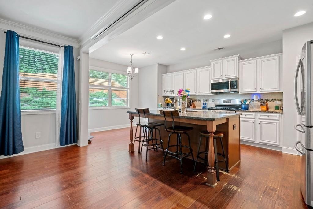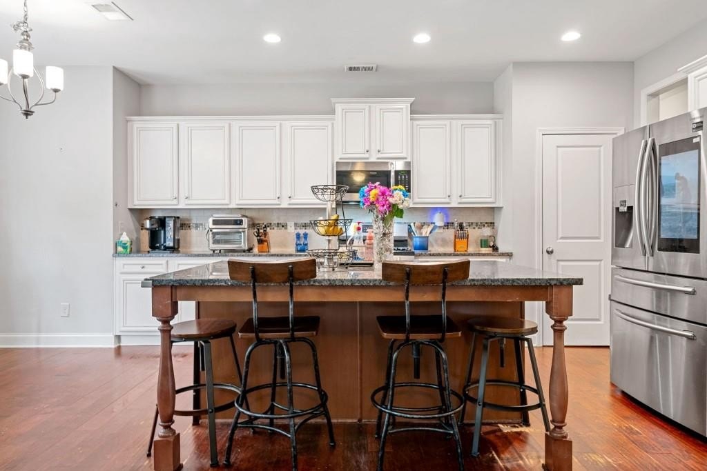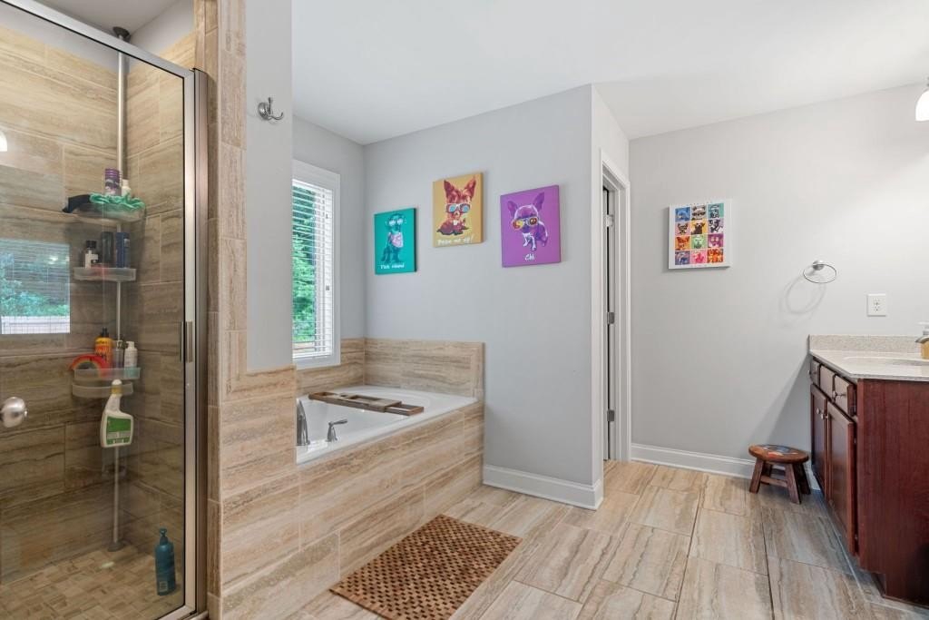 This beautiful 5-bedroom, 3-bath modern craftsman is ideally located between downtown Acworth and Kennesaw. Boasts plenty of charm, modern design, and a welcoming ambiance. The home features an open-concept living area with a cozy fireplace, a chef's kitchen with quartz countertops, a large island, and hardwood floors throughout the main living area. A versatile main-level bedroom and bath offer flexibility for a gym, office, or guest space. Upstairs offers a spacious primary suite with vaulted ceilings, walk-in closet, and a spa-like en-suite bath. Three additional bedrooms with walk-in closets share a well-appointed bath with his & hers sinks, and an upstairs laundry room completes the second floor. Enjoy the outdoor patio and private backyard complete with a stone-top BBQ pit that includes a sink and plenty of space for firewood storage, perfect for relaxation or entertaining. Enjoy the nearby walking trails and gazebo that connect directly to the neighborhood. Minutes from shopping, dining, parks, and top-rated schools, this home offers style, comfort, and tranquility!